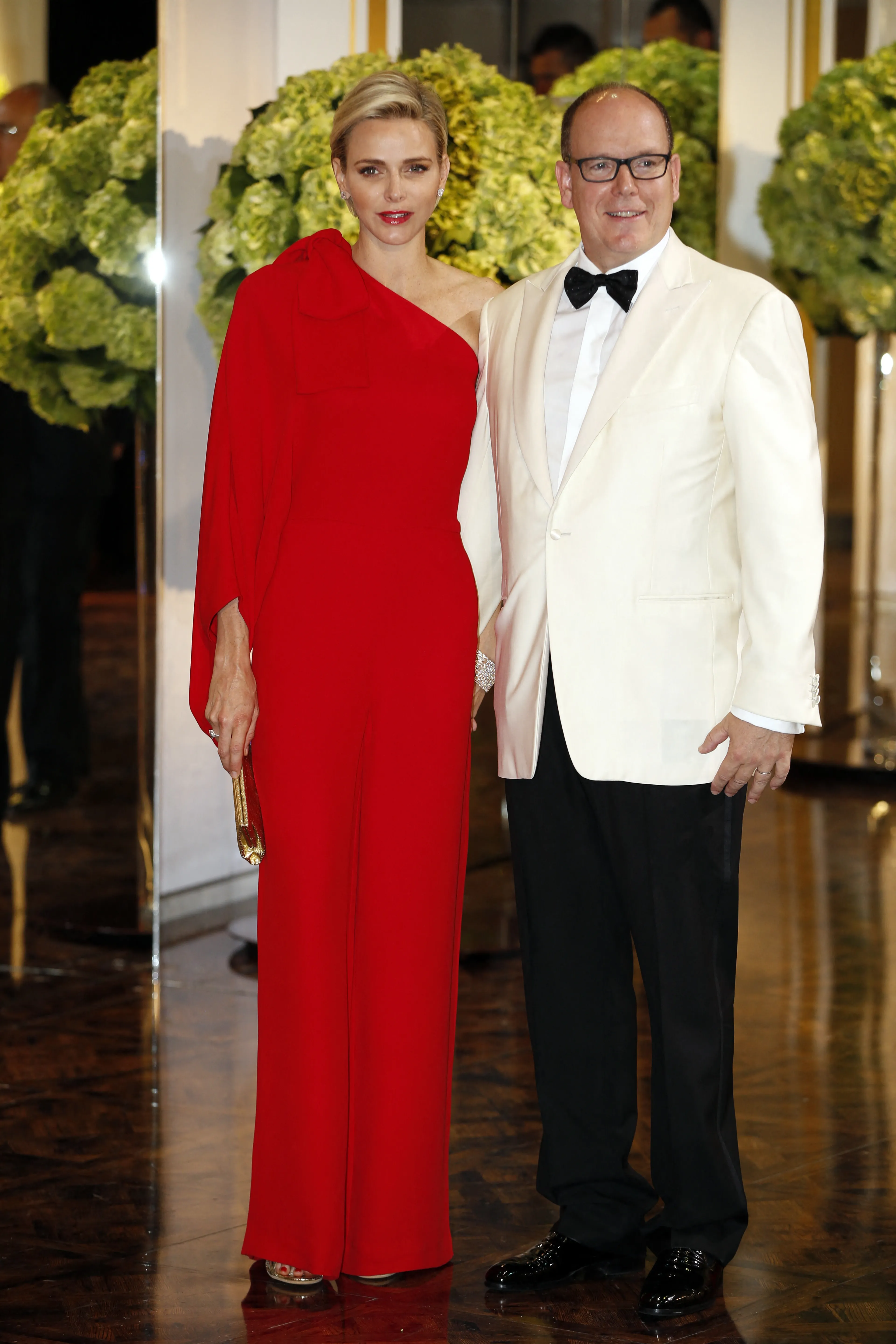 Op het 67ste Rode Kruis-gala kiest Charlène voor een – hoe kan het ook anders – rode outfit. De one shoulder jumpsuit van het Italiaanse modehuis Valentino heeft een strik op de schouder. Ook koningin Máxima heeft het item in haar kledingkast hangen maar draagt de strik om haar nek als een sjaal.