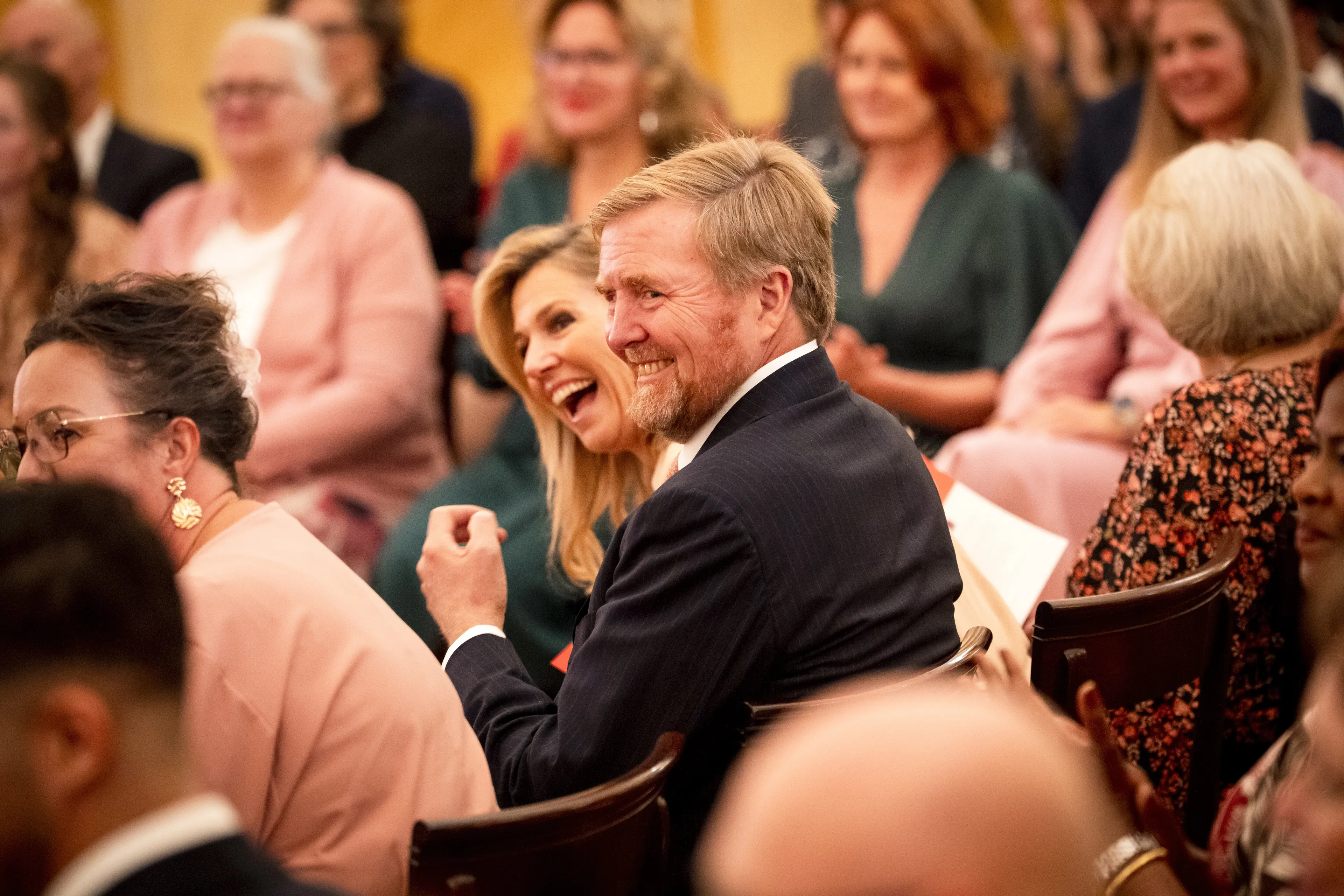 Het is een jaarlijks evenement: de uitreiking van de Appeltjes van Oranje op Paleis Noordeinde. De koningin mag ze uitreiken, maar er zitten vaak meer royals in de zaal. Net als vorig jaar waren koning Willem-Alexander en prinses Beatrix donderdagmiddag van de partij. De koning kwam meteen goed van pas, want hij gaf zijn verkouden echtgenote een papieren zakdoekje tijdens haar toespraak. Ze vertelde de zaal dat ze verkouden was, en daar had de koning dus wel wat voor.