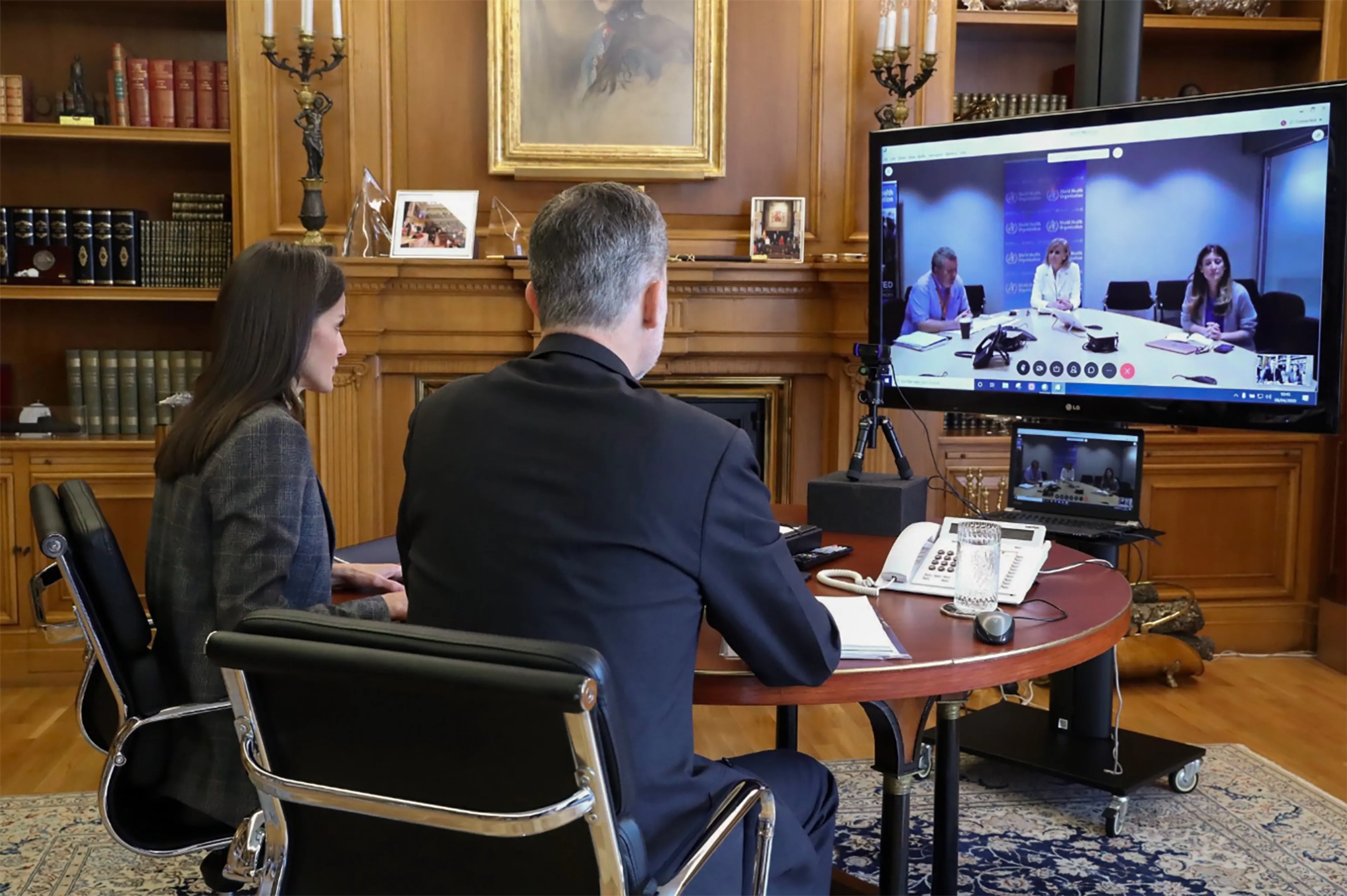 Elke dag installeerden Felipe en Letizia zich voor videoscherm of computer voor een belronde met ziekenhuizen, ministers en maatschappelijke organisaties of bedrijven om op de hoogte te blijven van de laatste ontwikkelingen. Daar waren ook gesprekken bij met de broederschappen die in steden als Sevilla en Malaga normaal gesproken in de week voor Pasen de traditionele processies organiseren.