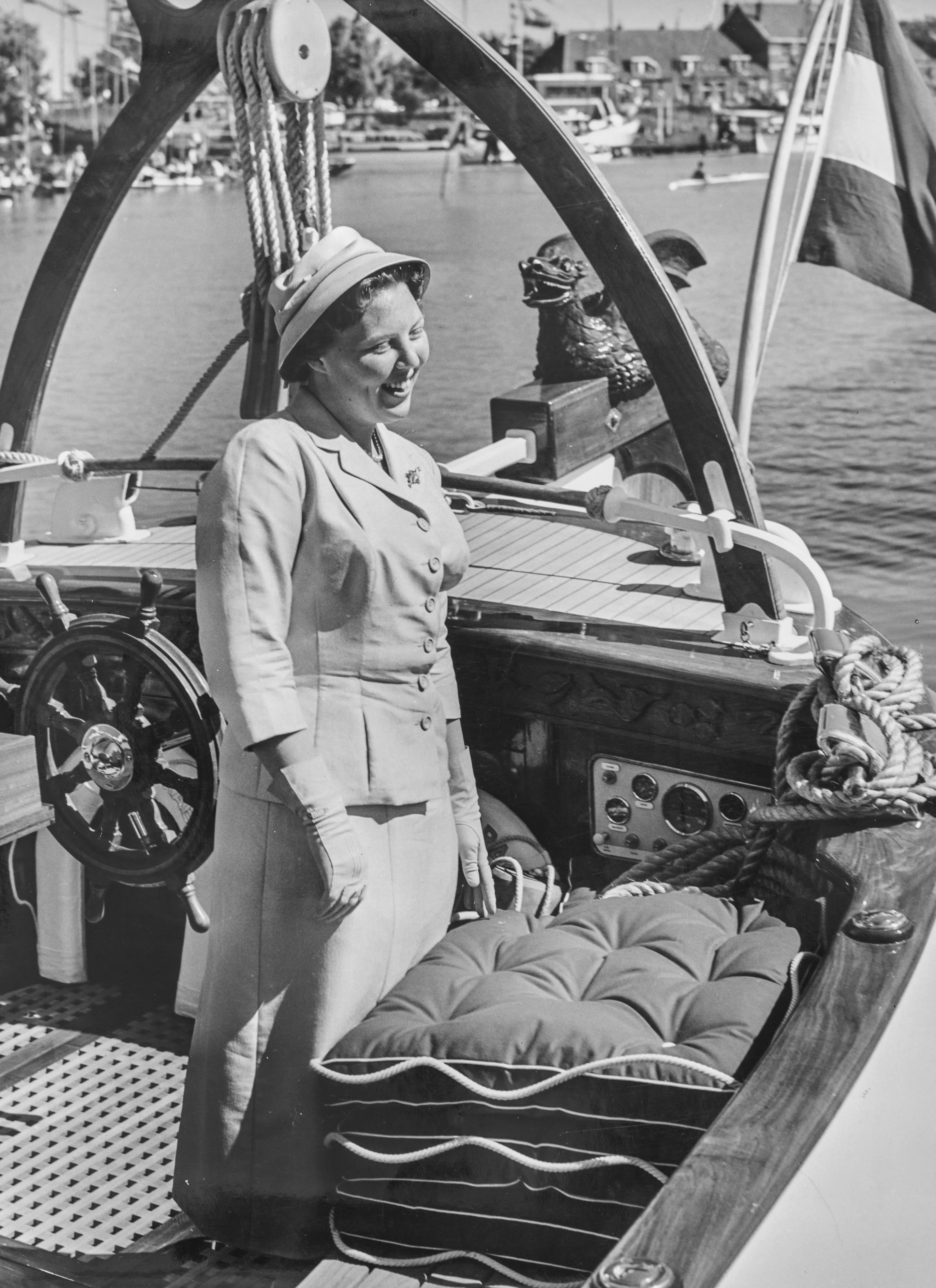 Prinses Beatrix maakt vaartochtje met gerestaureerde Groene Draeck