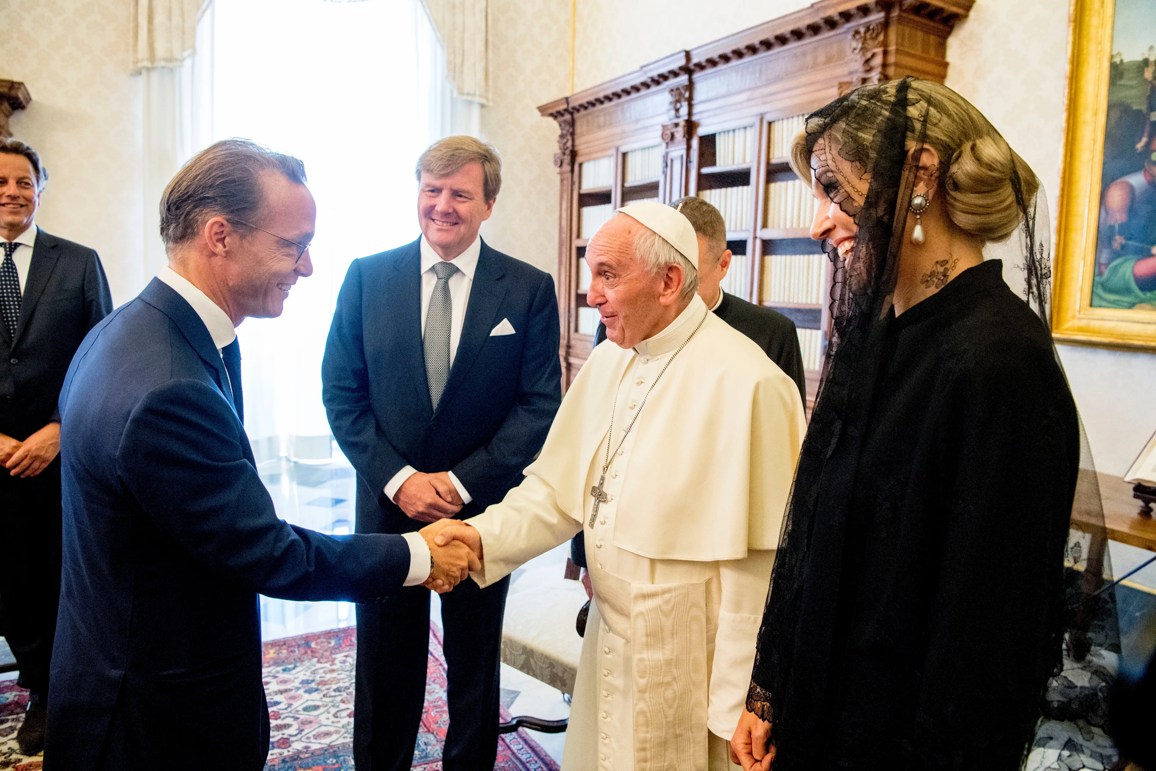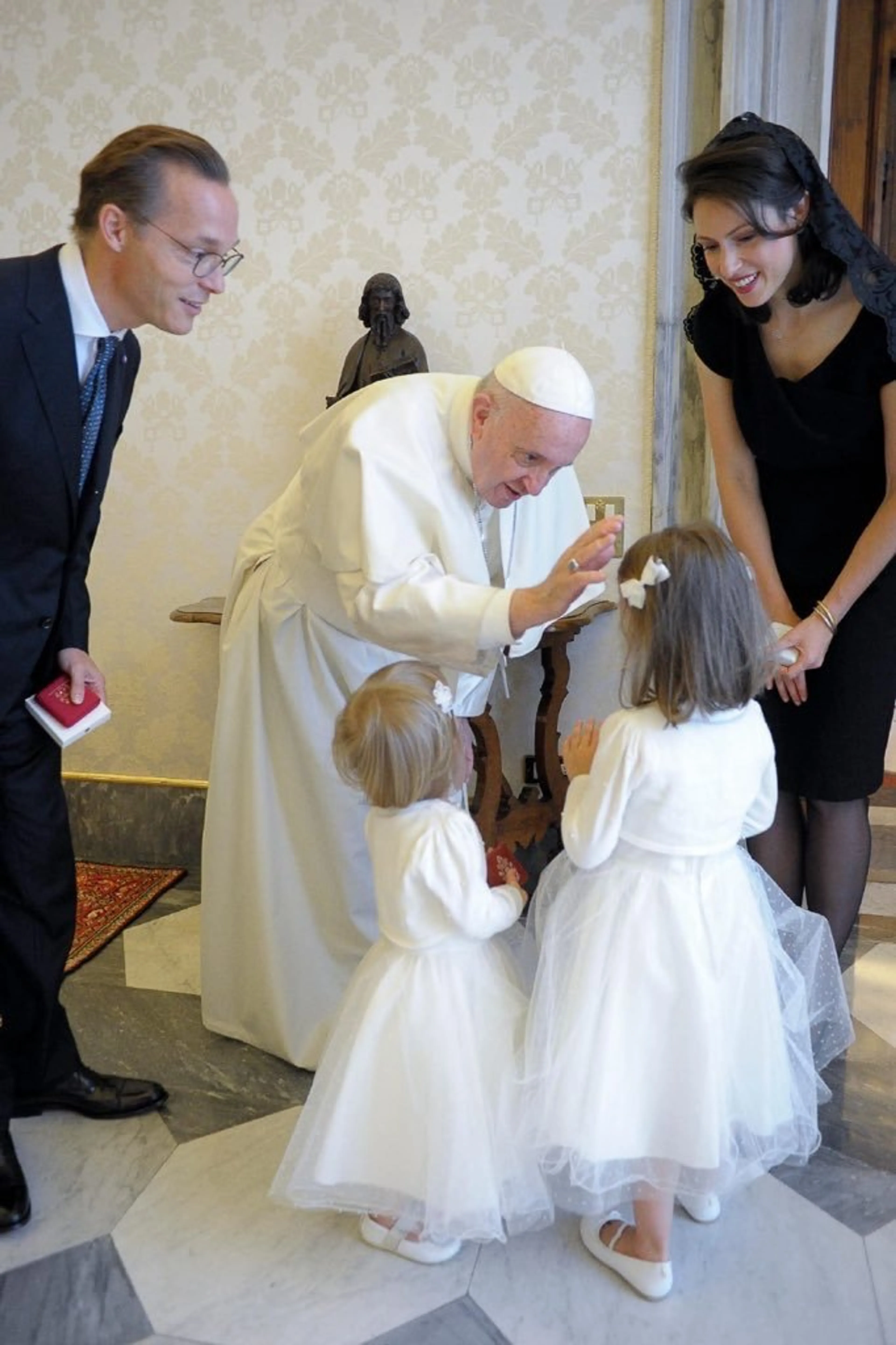 Prins Jaime vertrekt als Nederlands ambassadeur bij paus Franciscus. Hij heeft samen met prinses Viktória en dochters Zita (4) en Gloria (2) afscheid genomen van de kerkvorst.
