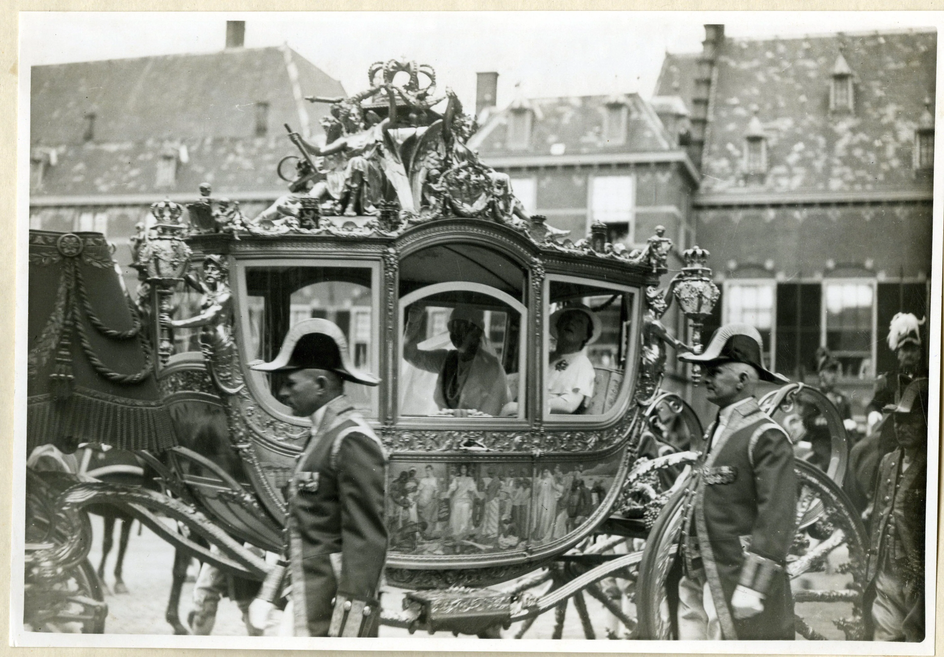 De reden: op de volle linkerkant van de koets is door de schilder Nicolaas van der Waay een huldeblijk van de toenmalige koloniën afgebeeld. Met onder meer een knielende zwarte man namens de 'West' en een onderdanige inwoner van toenmalig Nederlands-Indië.