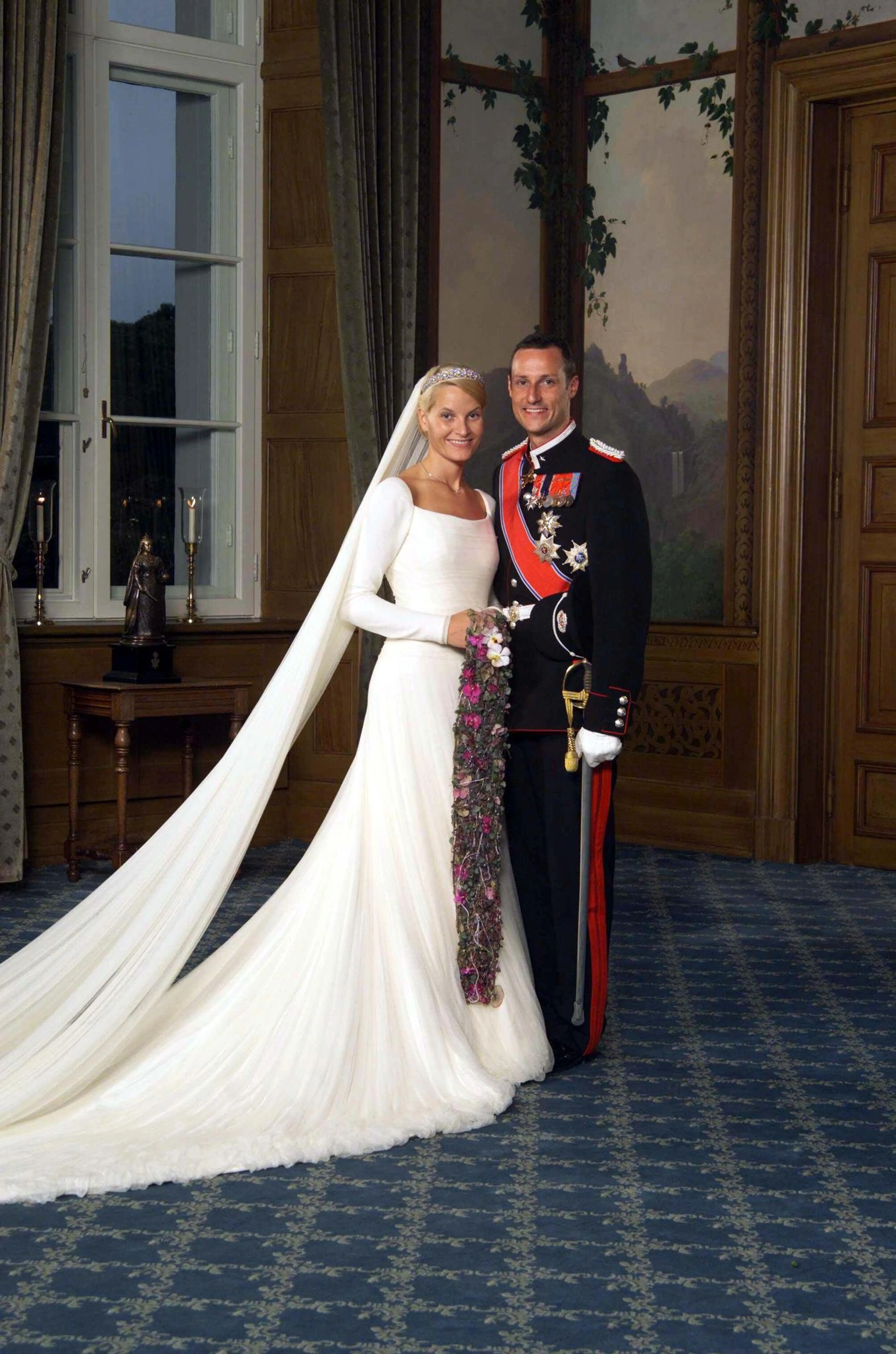 De Noorse kroonprins trouwde op 25 augustus 2001 met Mette-Marit in de Domkirke in Oslo. Het was destijds even slikken voor de Noren dat Haakon zijn hart verloren had aan een alleenstaande moeder met een jong zoontje. De zoon van koning Harald en koningin Sonja dreigde zelfs af te zien van de troon voor zijn geliefde. Maar al snel na het huwelijk sloten de Noren Mette-Marit in hun harten.