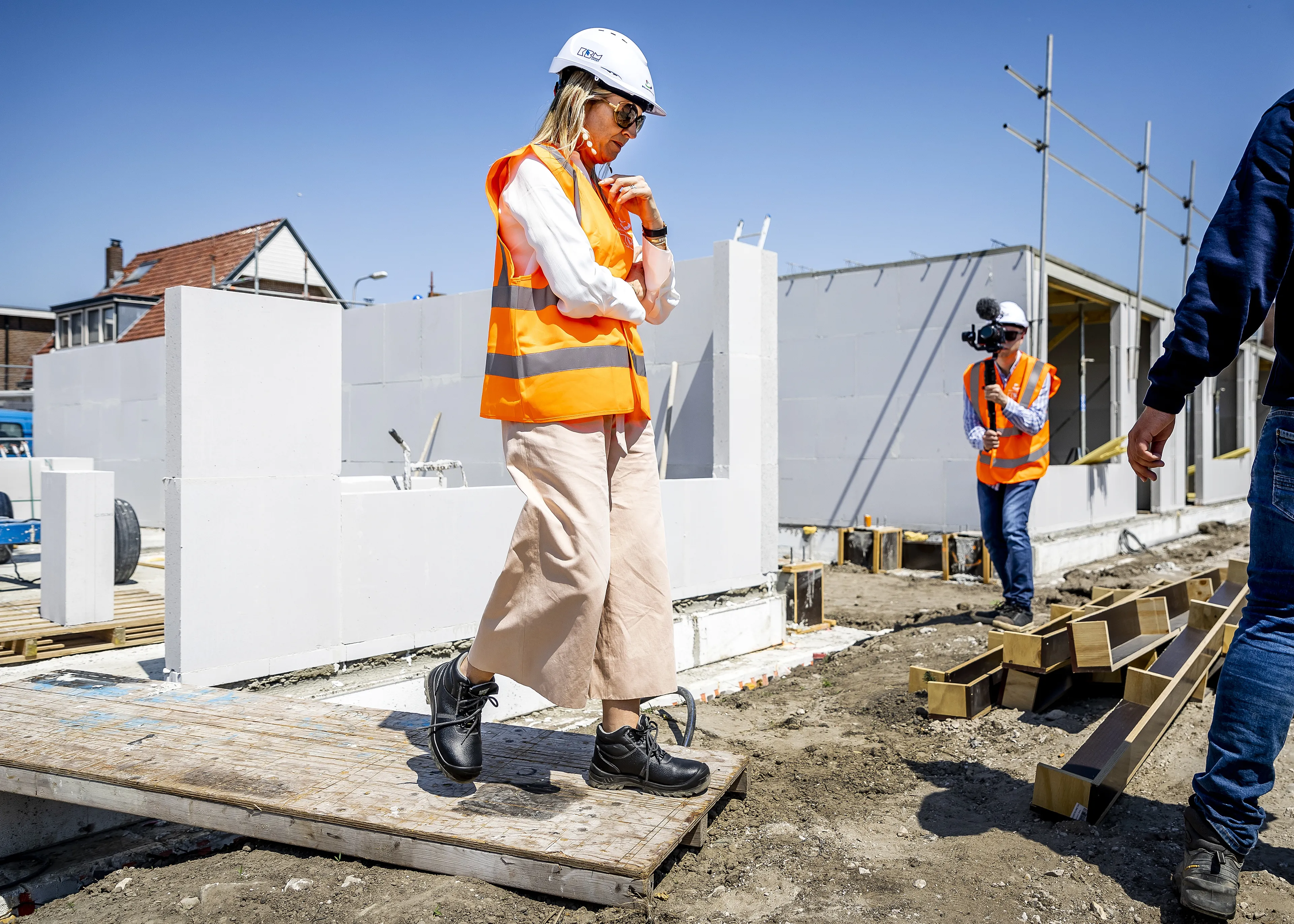 Koningin Máxima heeft dinsdag een werkbezoek gebracht aan een woningbouwproject voor sociale huurwoningen in Rijnsburg in Zuid-Holland. Het bezoek vond plaats in aanloop naar de Dag van de Bouw, waarbij publiek een kijkje achter de bouwhekken kan nemen bij ruim 150 bouwplaatsen in heel Nederland.