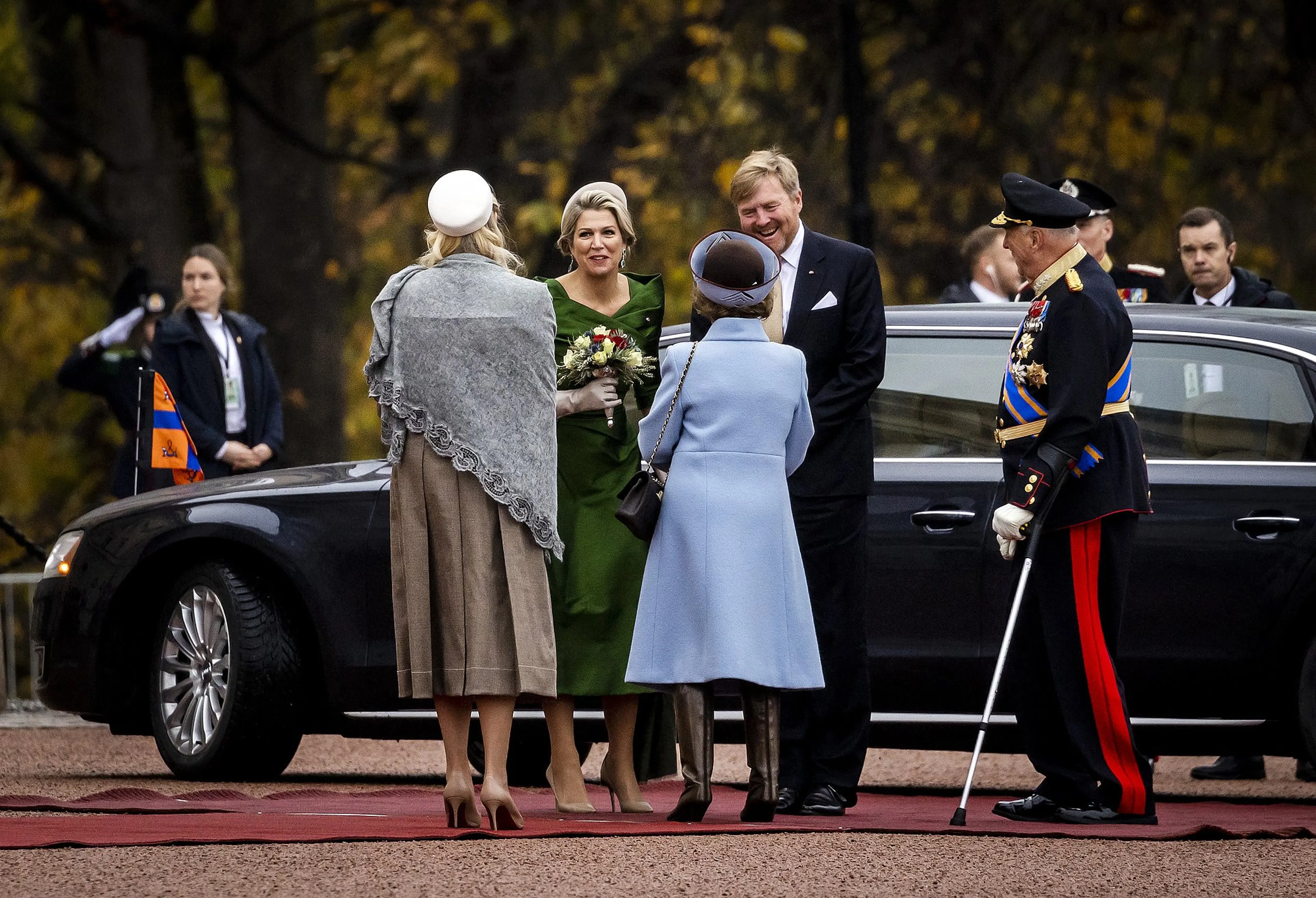 Koning Willem-Alexander en koningin Máxima kwamen dinsdagmorgen vlak voor tien uur aan op het militaire deel van het vliegveld Gardermoen bij Oslo. Daar werden ze begroet door onder anderen de Nederlandse ambassadeur John Groffen. Koning Willem-Alexander zat zelf in de cockpit als co-piloot van het regeringsvliegtuig.