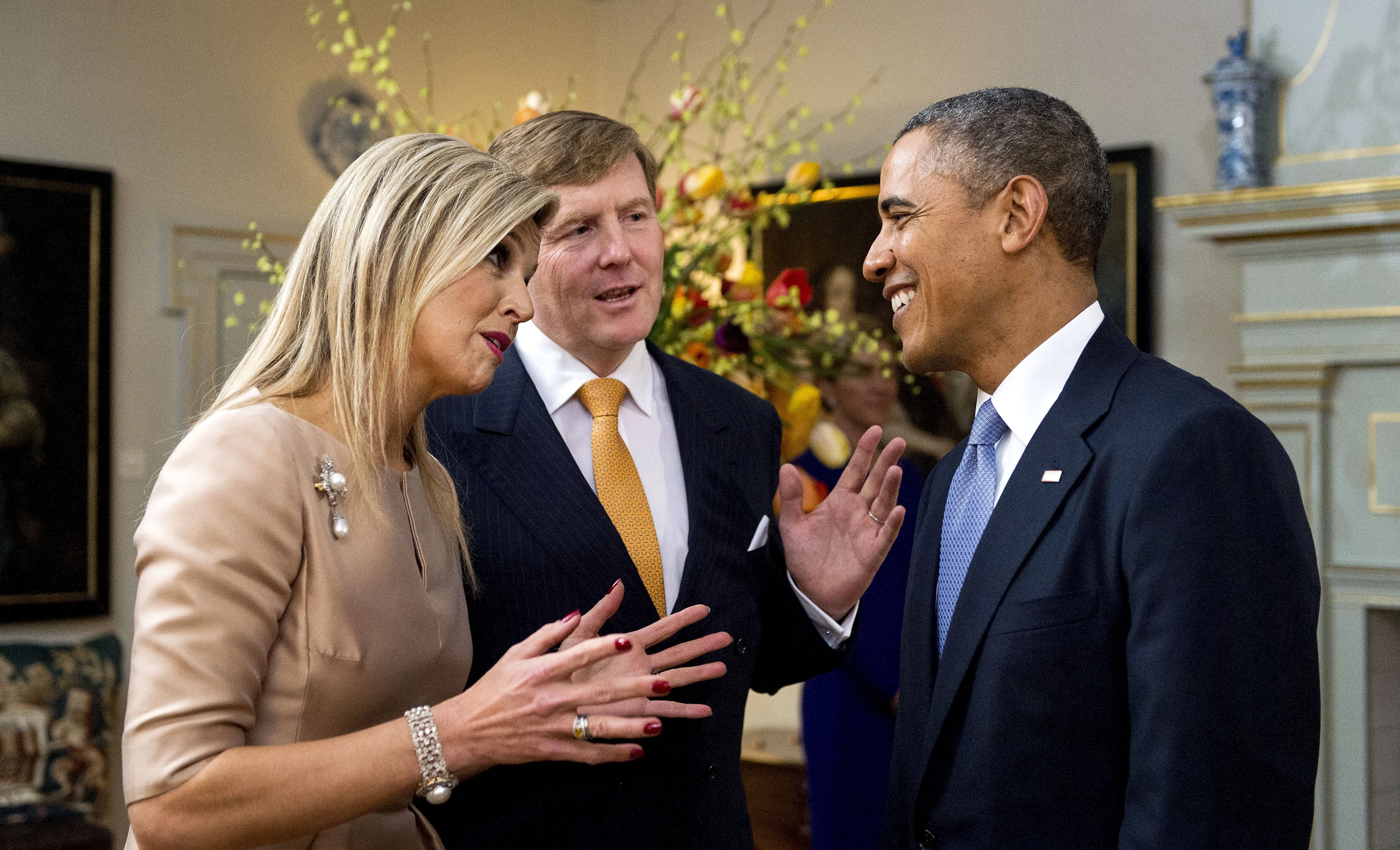 Vestibule, wat? Dat is een chic woord voor hal. En die is spectaculair. In de vestibule van het paleis hangt namelijk een prachtige kroonluchter die gemaakt is van echte paardenbloemen. Zaadje voor zaadje zijn ze op de lamp geplakt, vertelt koningin Máxima in het interview voor haar vijftigste verjaardag met Matthijs van Nieuwkerk.