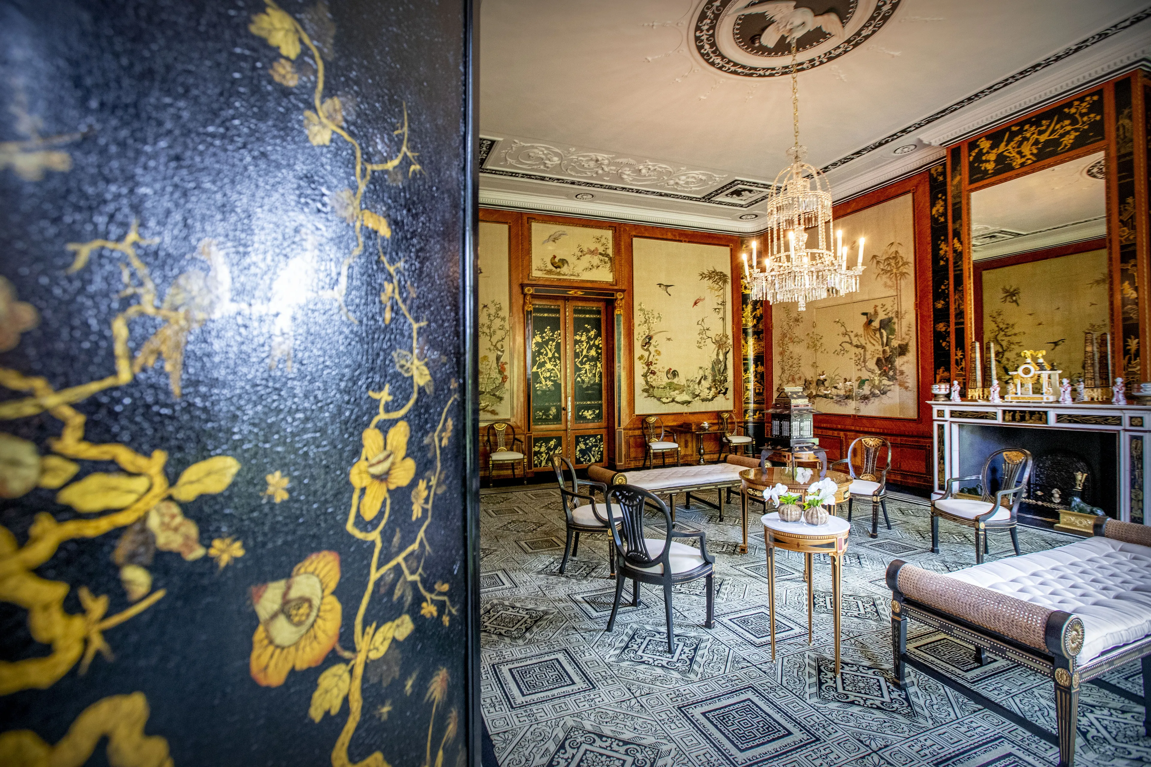 Als je vanaf de werkkamer van koning Willem-Alexander terugloopt naar de Oranjezaal, vind je daarachter de Japanse Zaal.