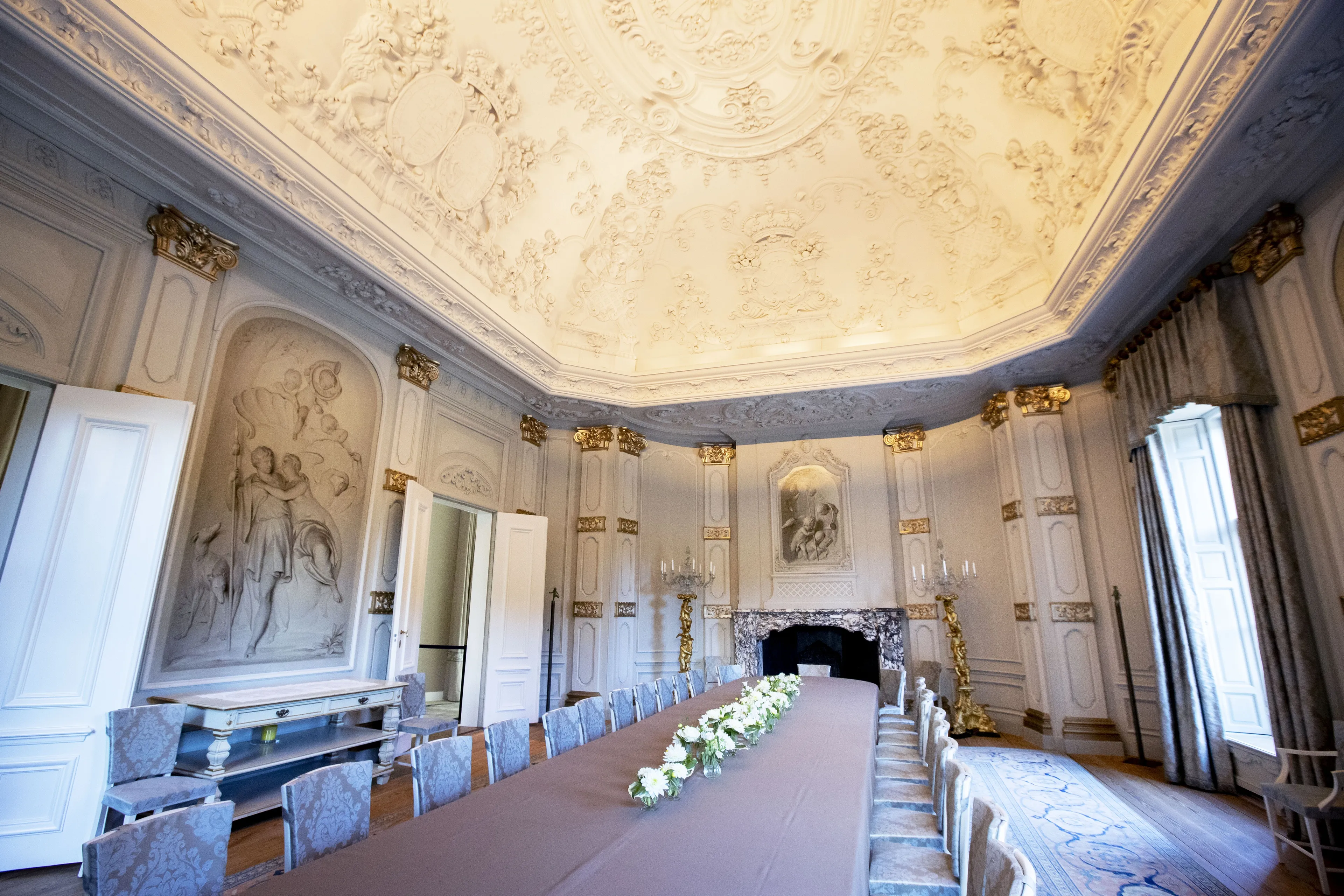 Aan de Chinese Zaal grenst de Witte Eetzaal. Zouden koning Willem-Alexander en koningin Máxima hier elke avond met elkaar dineren?