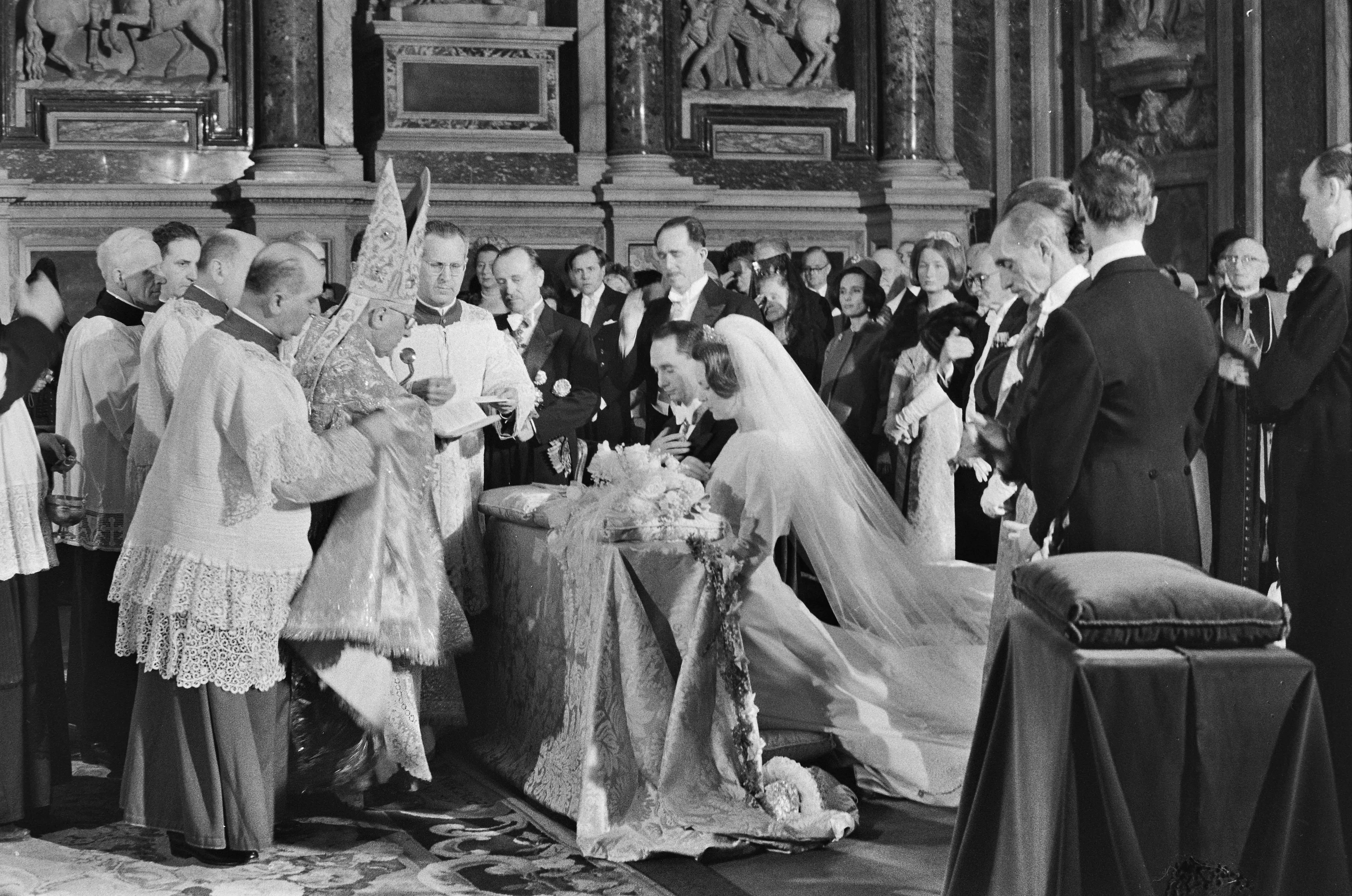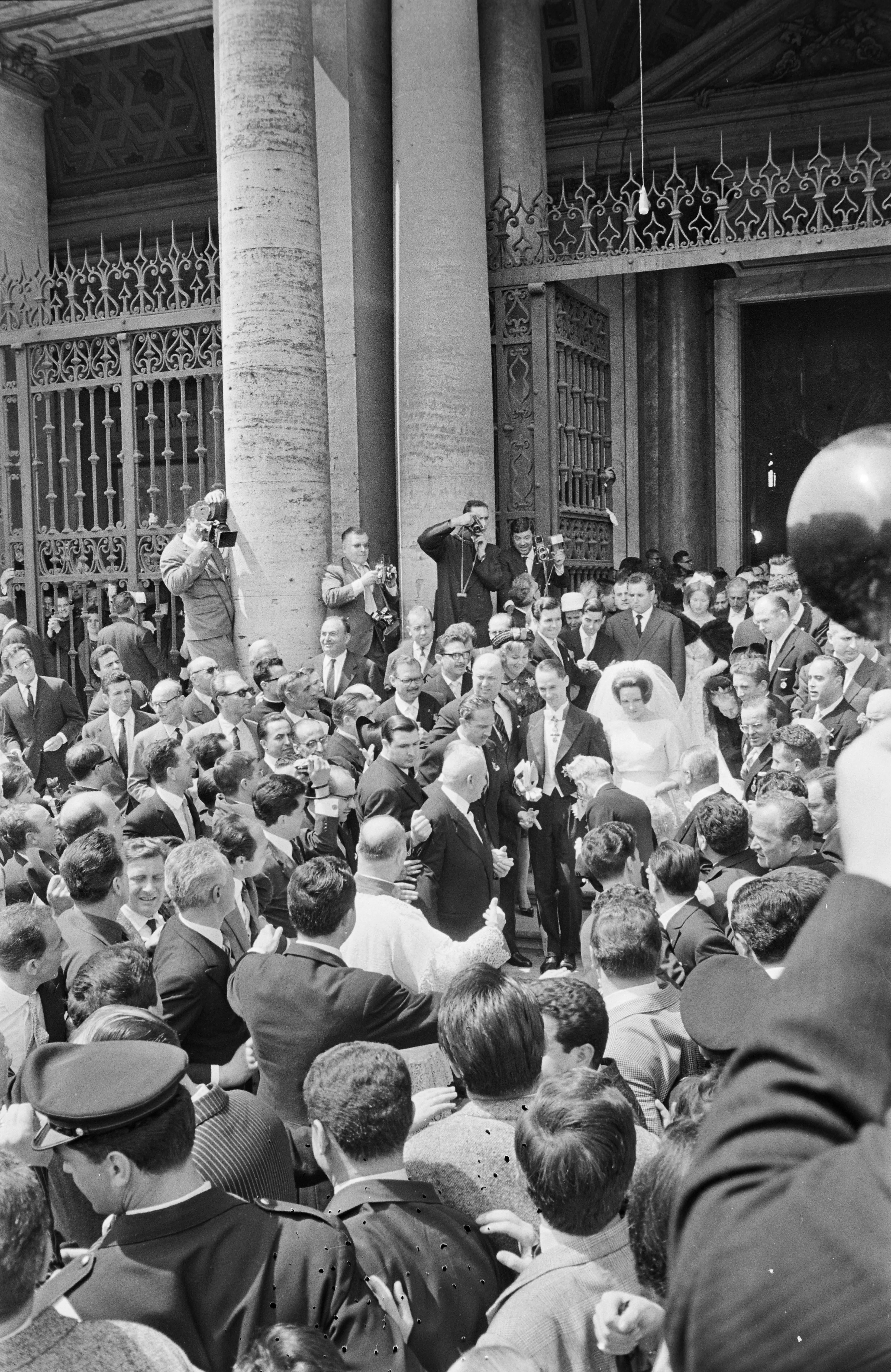 De basiliek in Rome heeft veel weg van een grootse royal wedding. Tóch waren koninklijke gasten zoals koningin Juliana, prins Bernhard en andere leden van het Koninklijk Huis niet aanwezig. Kardinaal Giobbe voltrok het kerkelijk huwelijk van Irene en Carlos Hugo. Het bruidspaar mocht wel op audiëntie komen bij paus Paulus VI.