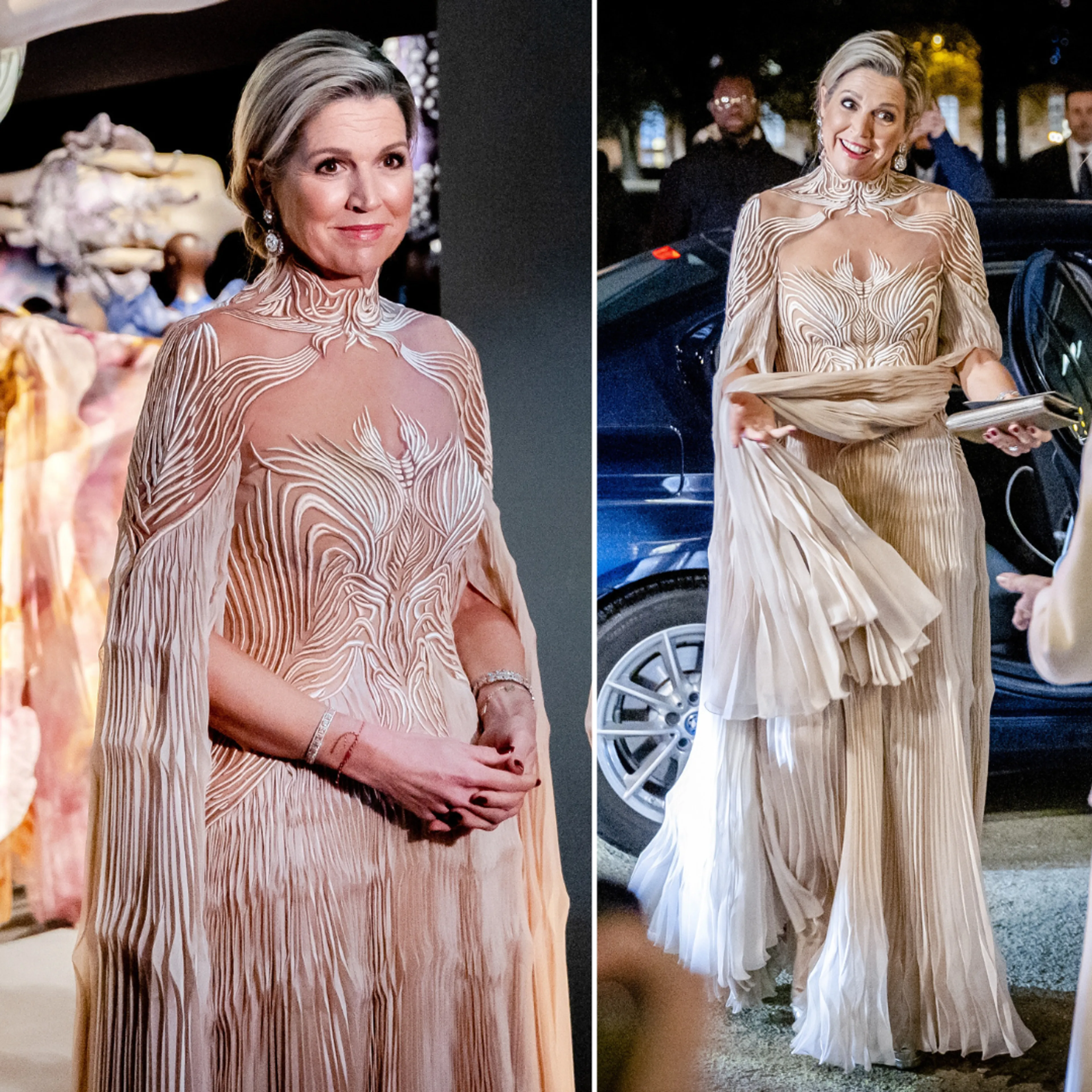 De koningin verscheen bij de tentoonstelling in, hoe kan het ook anders, een creatie van Iris van Herpen. "Het was heel bijzonder om dit voor haar te maken", vertelt de modeontwerper over de jurk.