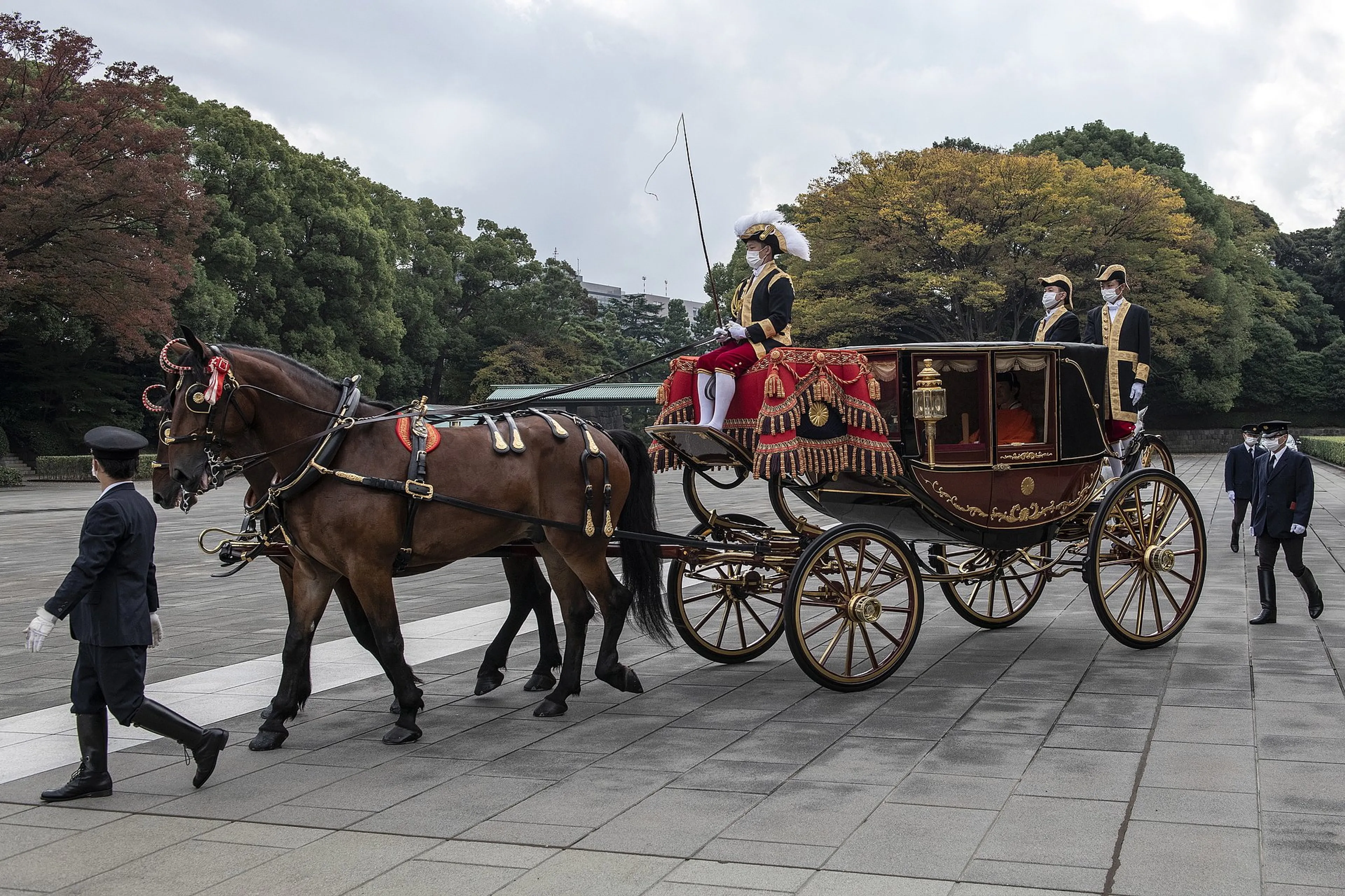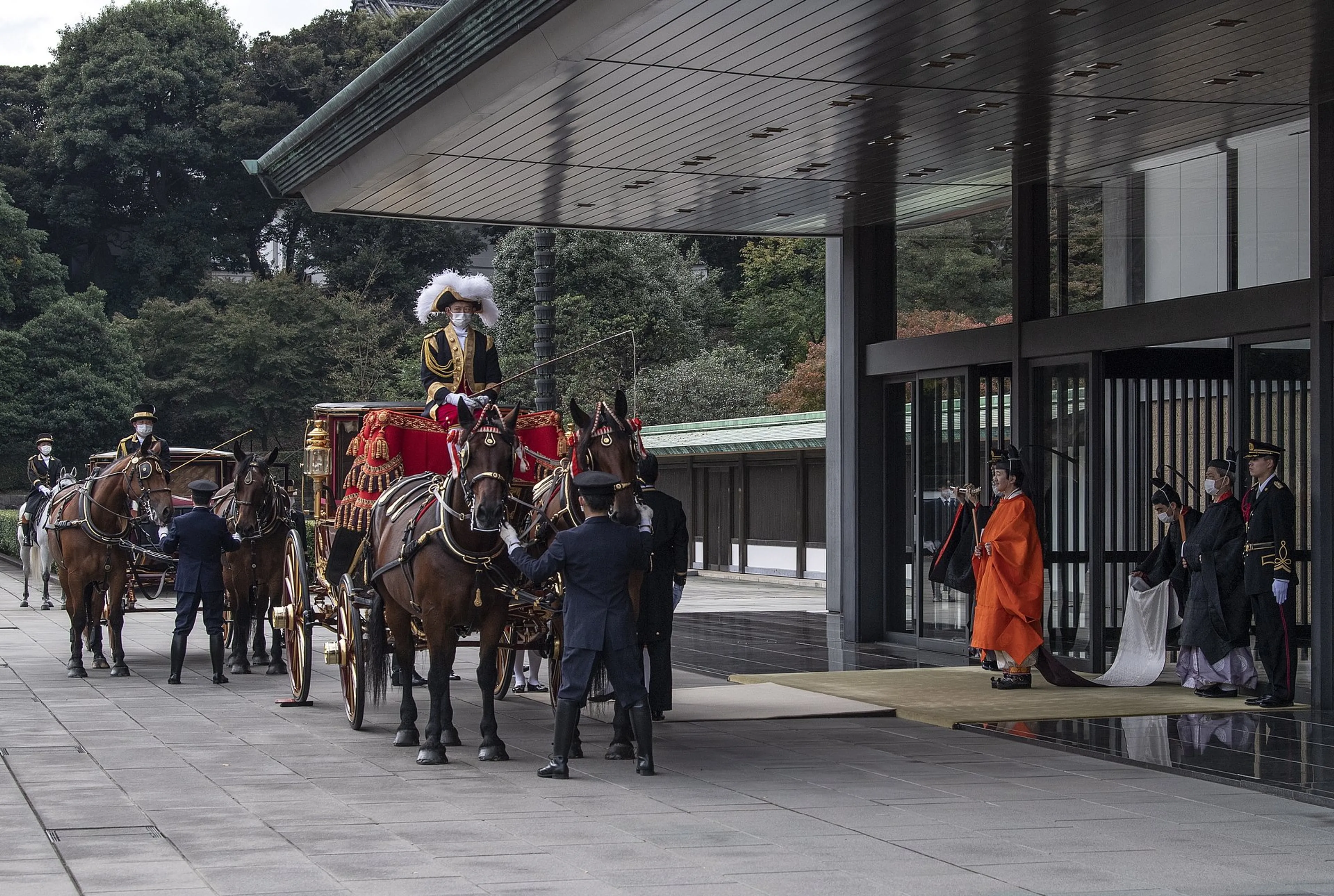 De ontvangst vormde de afsluiting van de uit twee onderdelen bestaande 'Rikkoshi-no-Rei-ceremonie', de lang verwachte installatie of inhuldiging van de kroonprins. Die had oorspronkelijk al in april moeten plaatsvinden, maar vanwege de coronacrisis is toen besloten tot uitstel. De plechtigheden waren ook uitgekleed: zo was er zondag geen banket en was het aantal genodigden in het Keizerlijk Paleis beperkt. De troonopvolger droeg een oranje mantel tijdens de ceremonie in het keizerlijk paleis.