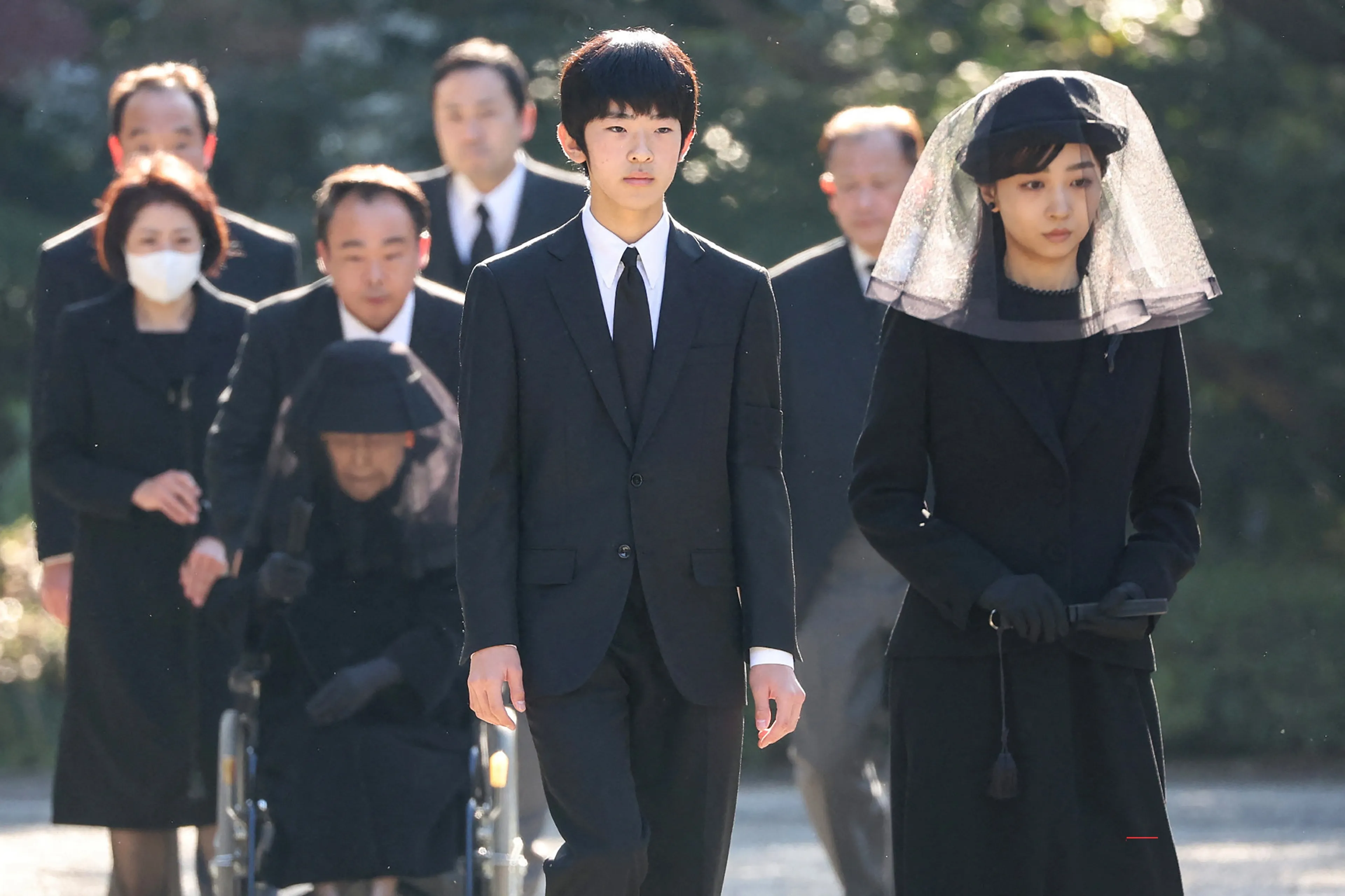 Japanse keizerlijke familie bij uitvaart prinses Yuriko