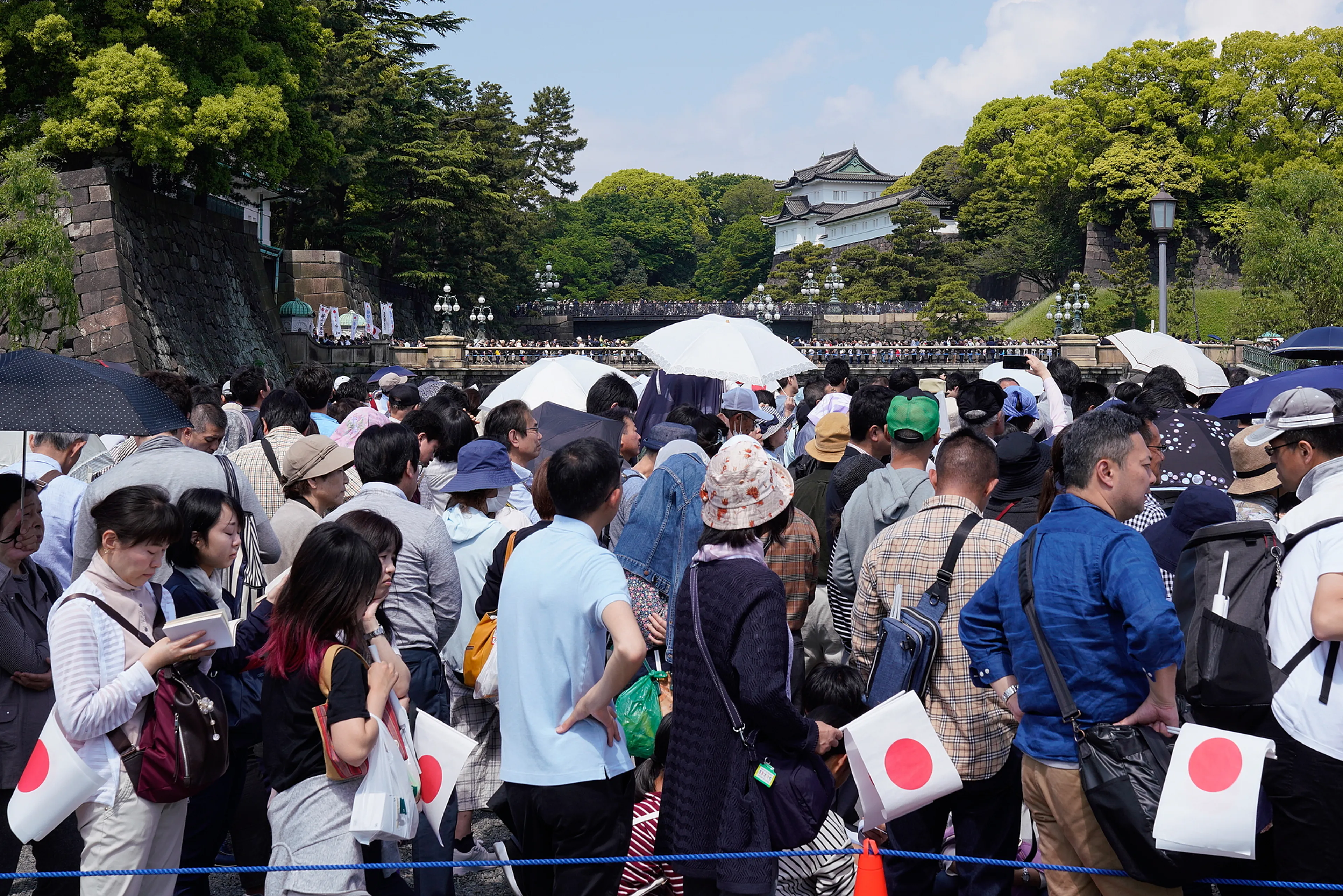 Japanse volk loopt uit voor balkonscène Naruhito en Masako