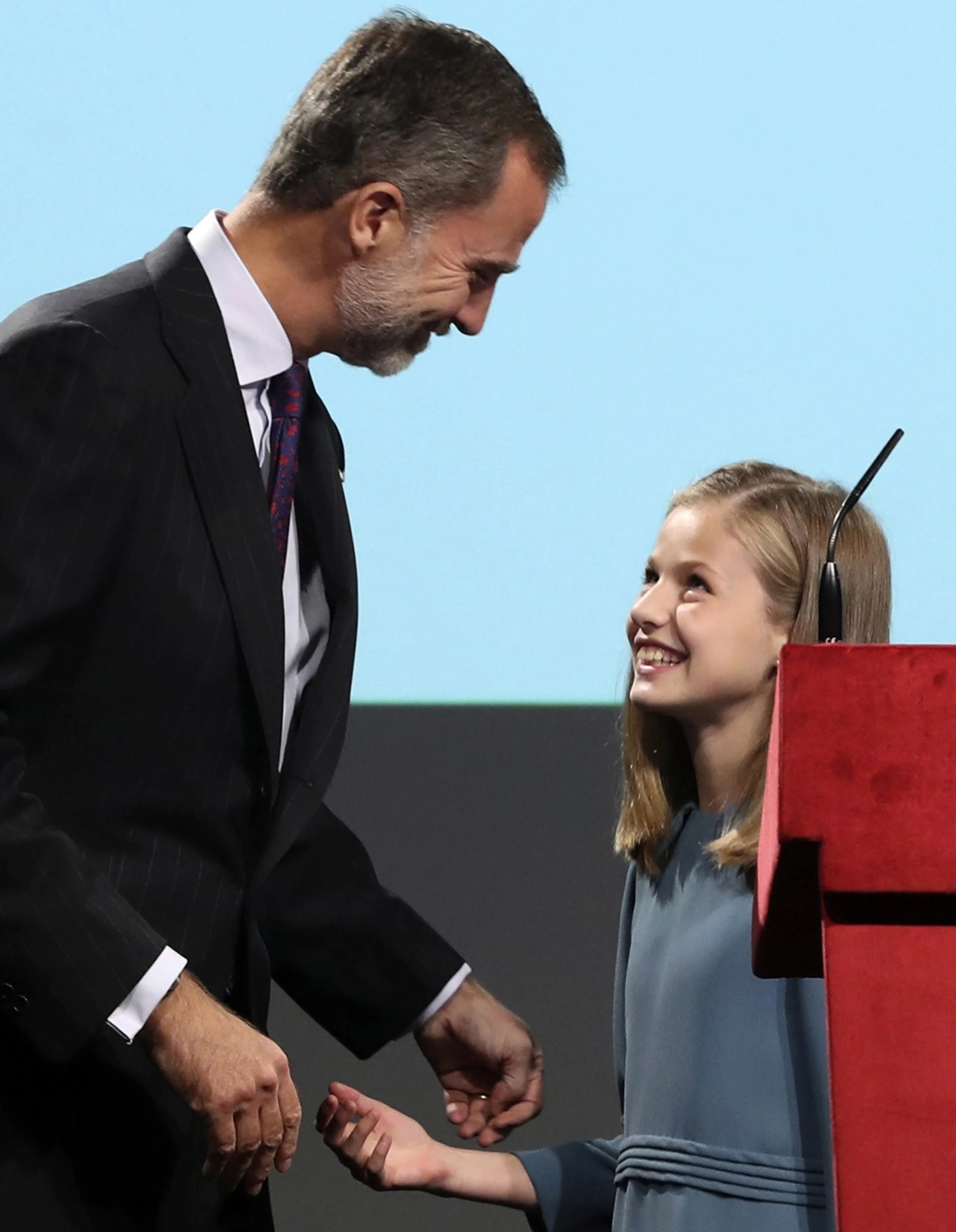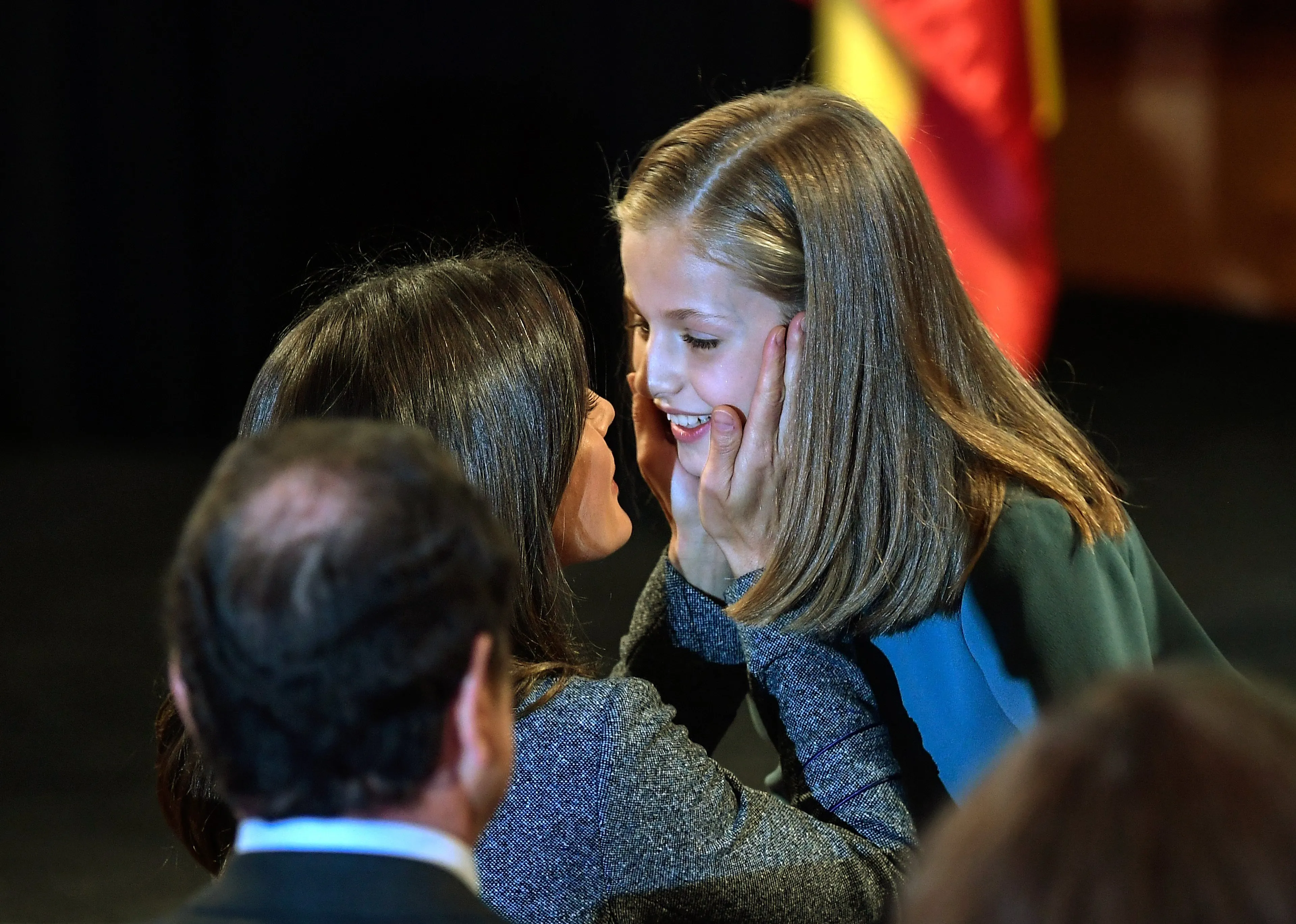 Koning Felipe bleef tijdens het moment dichtbij en Leonor kon ook steun putten uit de aanwezigheid van haar moeder koningin Letizia - die glunderend toekeek - en haar zusje Sofia. Beiden zaten op de eerste rij in het publiek. De toespraak ging geheel vlekkeloos. Met een glimlach en een krachtige stem herinnerde ze de aanwezigen eraan dat "de politieke vorm van de Spaanse staat de parlementaire monarchie is."