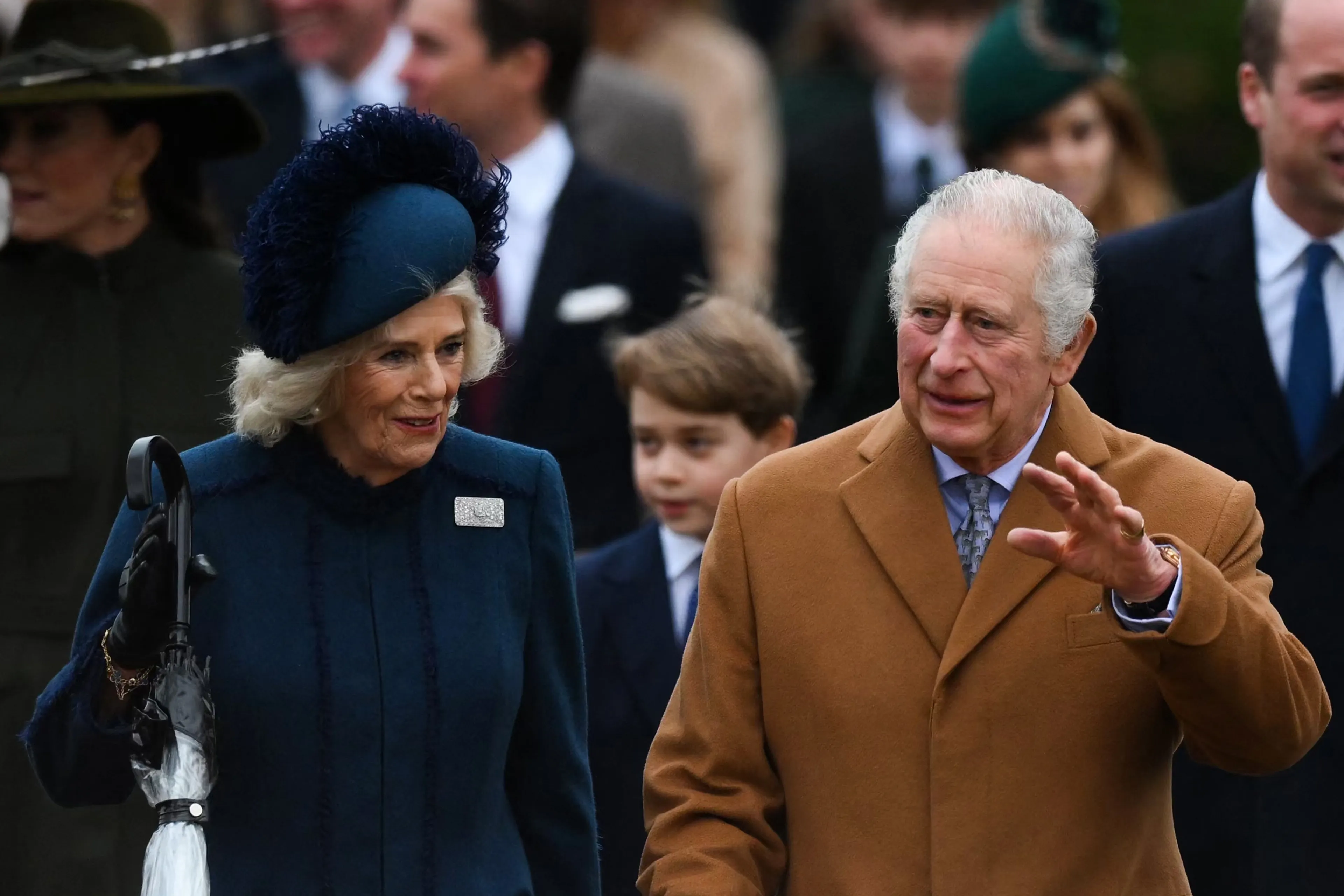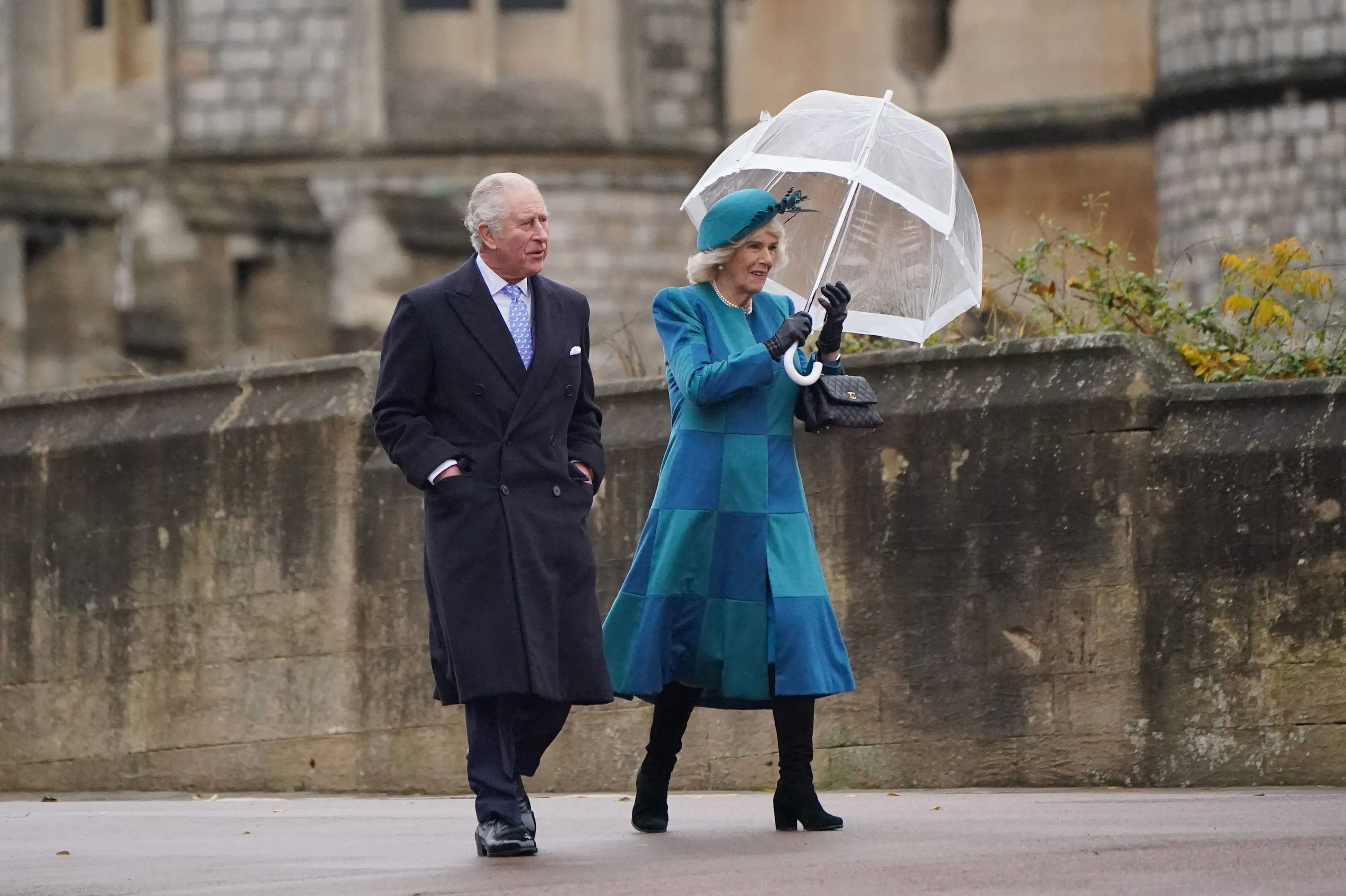 Voor het tweede jaar op een rij besloot de koninklijke familie om de kerstdagen te vieren op Windsor Castle in plaats van Sandringham House. Ze deden dit vanwege de veiligheid en de maatregelen tijdens de coronapandemie. Vandaar dat er dus geen foto's in Sandringham zijn gemaakt. Hieronder zie je de toenmalige prins Charles en hertogin Camilla na de kerstdienst in de St. George's Chapel, in Windsor Castle, Berkshire. Dit was de laatste kerst die de familie samen met de koningin heeft kunnen vieren.