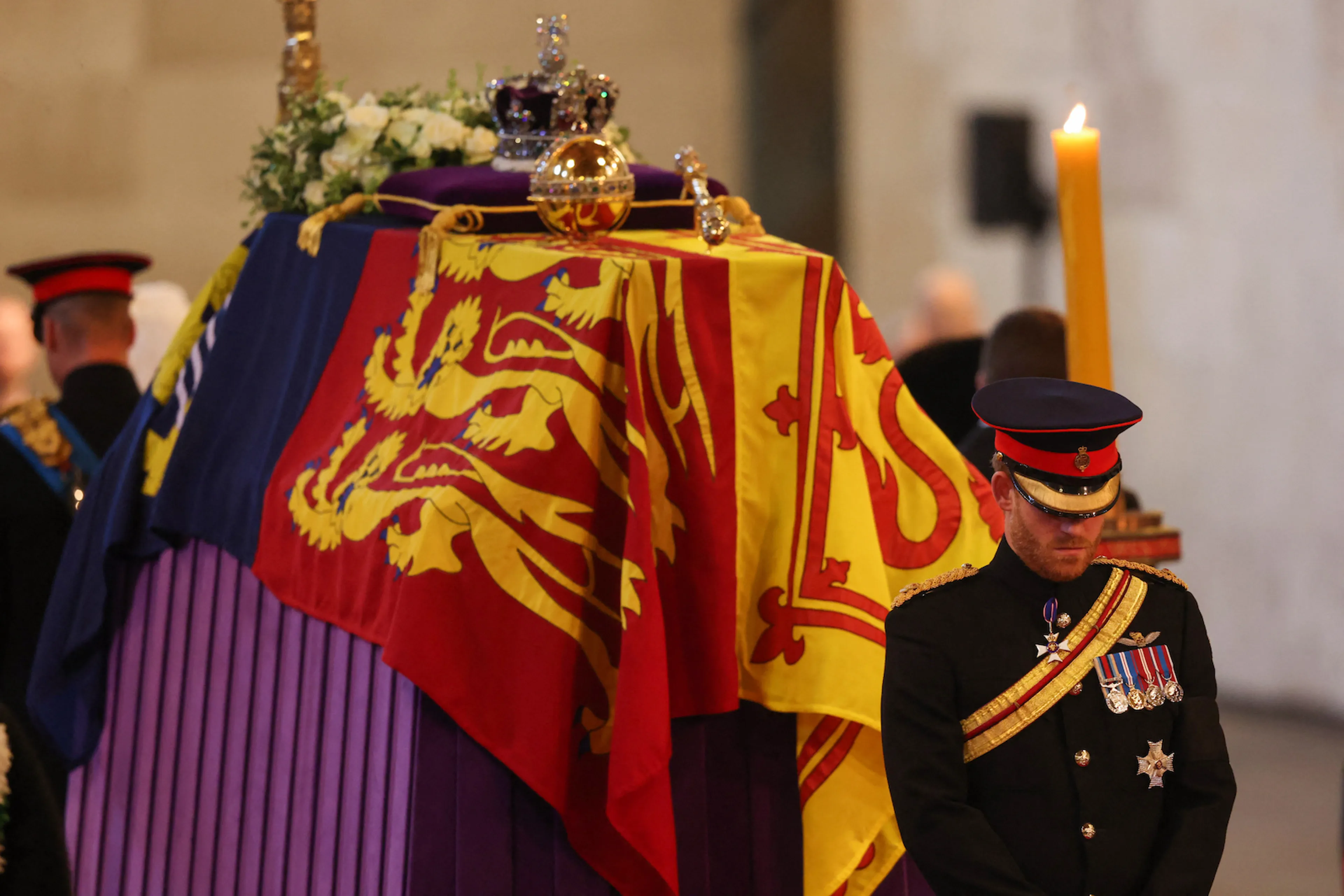 Voor prins Harry was het een bijzonder moment. Omdat hij geen actief lid meer is van het Britse koningshuis is hij zijn eretitels kwijt en mag hij normaal gesproken zijn militaire uniform niet meer dragen. Koning Charles maakte voor de wake een uitzondering. Hij deed eerder hetzelfde voor zijn broer prins Andrew.