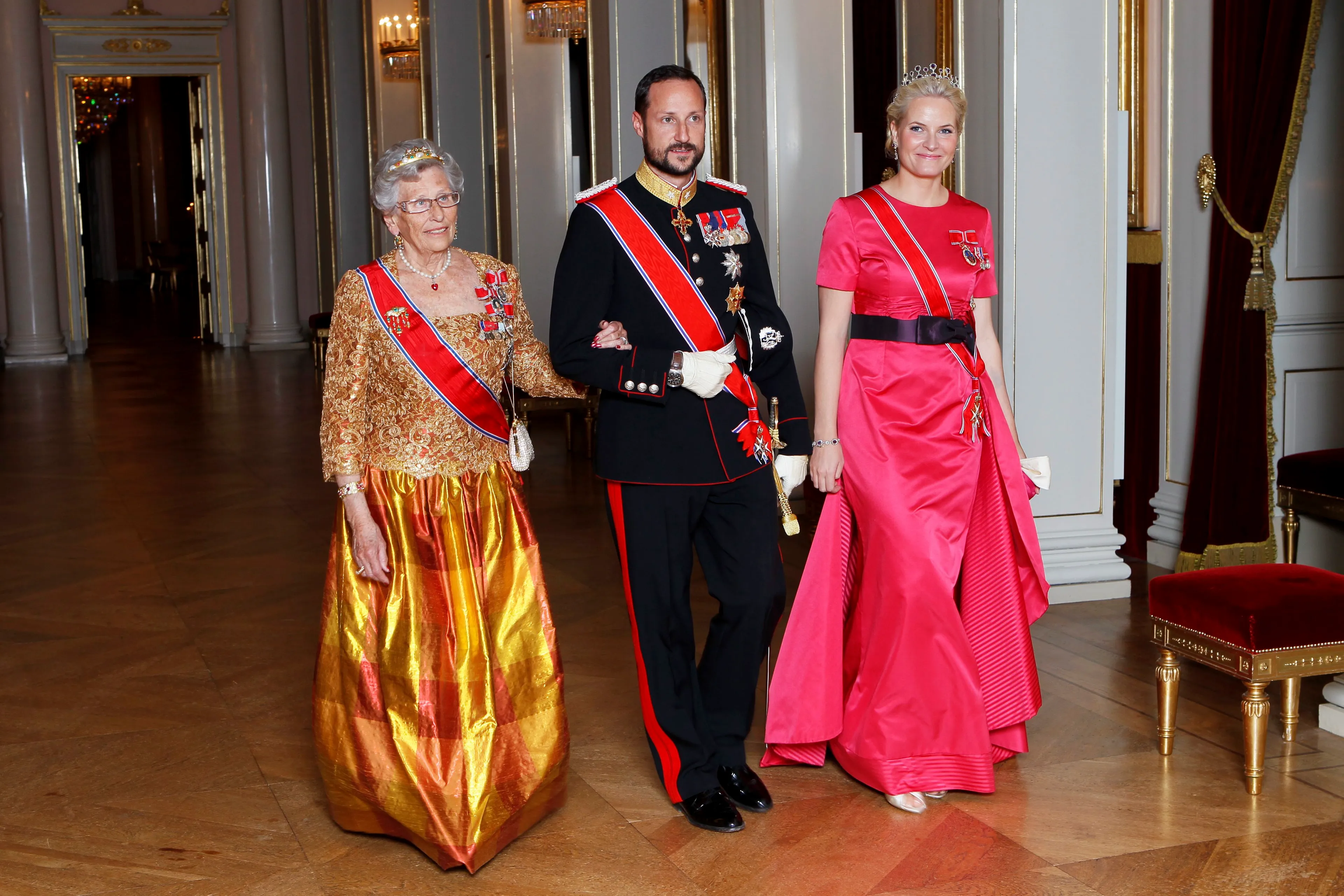 In 2010 kwam de president van Zwitserland naar Noorwegen voor een officieel bezoek. Tijdens het staatsbanket droeg de kroonprinses - in het gezelschap van haar echtgenoot en zijn tante prinses Astrid - een donkerroze japon met een brede zwarte riem.