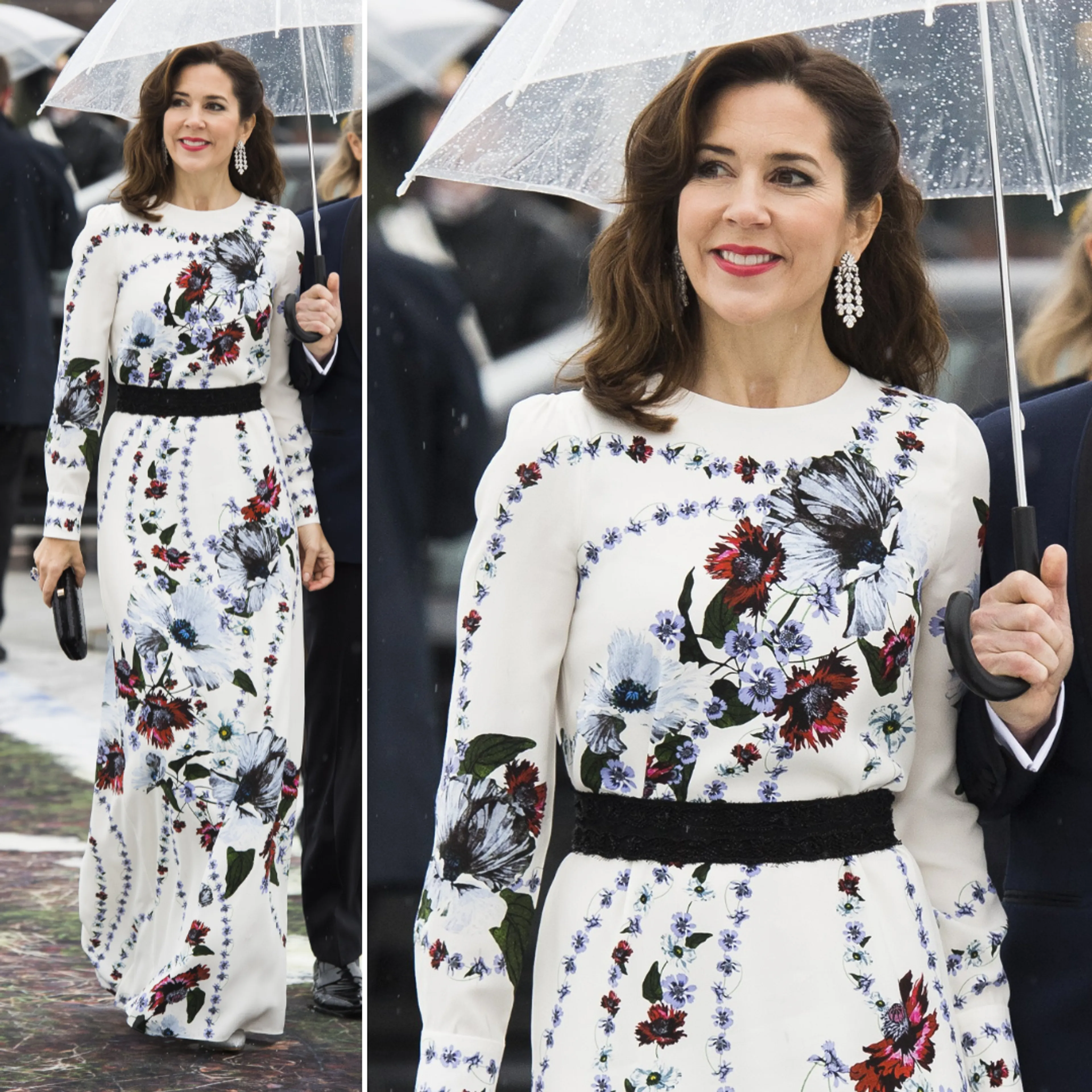 Niet alleen tijdens huwelijken, maar ook bij verjaardagen straalt de Deense koningin in mooie ontwerpen. Zo droeg ze voor de tachtigste verjaardag van de Noorse koning en koningin een ontwerp van modehuis Erdem.