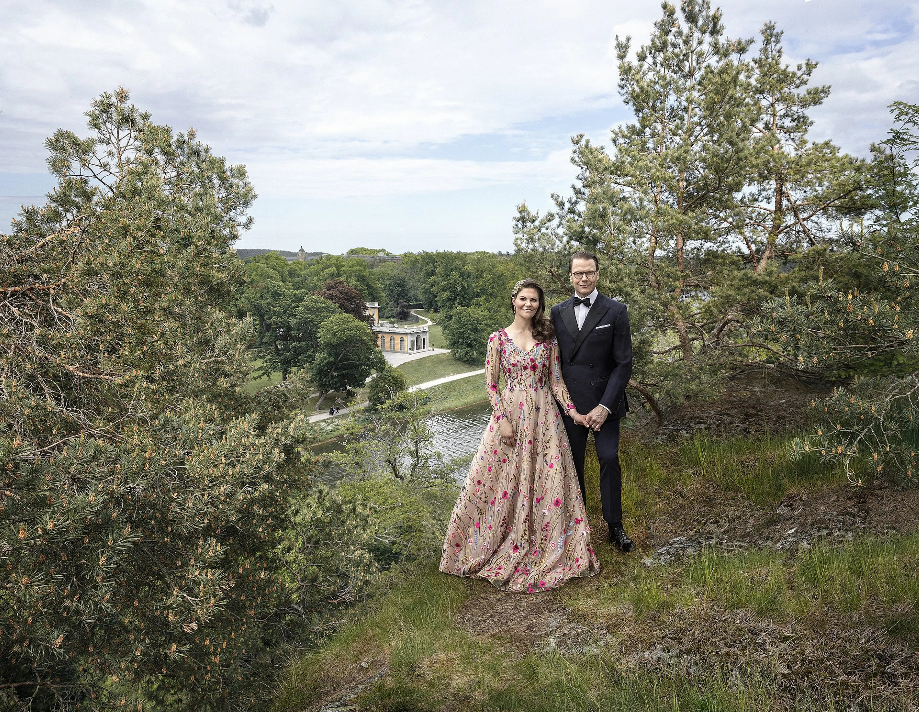 Tien jaar later worden er verschillende portretfoto's vrijgegeven om het tinnen jubileum van Victoria en Daniel te vieren. Op een van de foto's zien we Victoria opnieuw in de lichtroze jurk van Elie Saab.