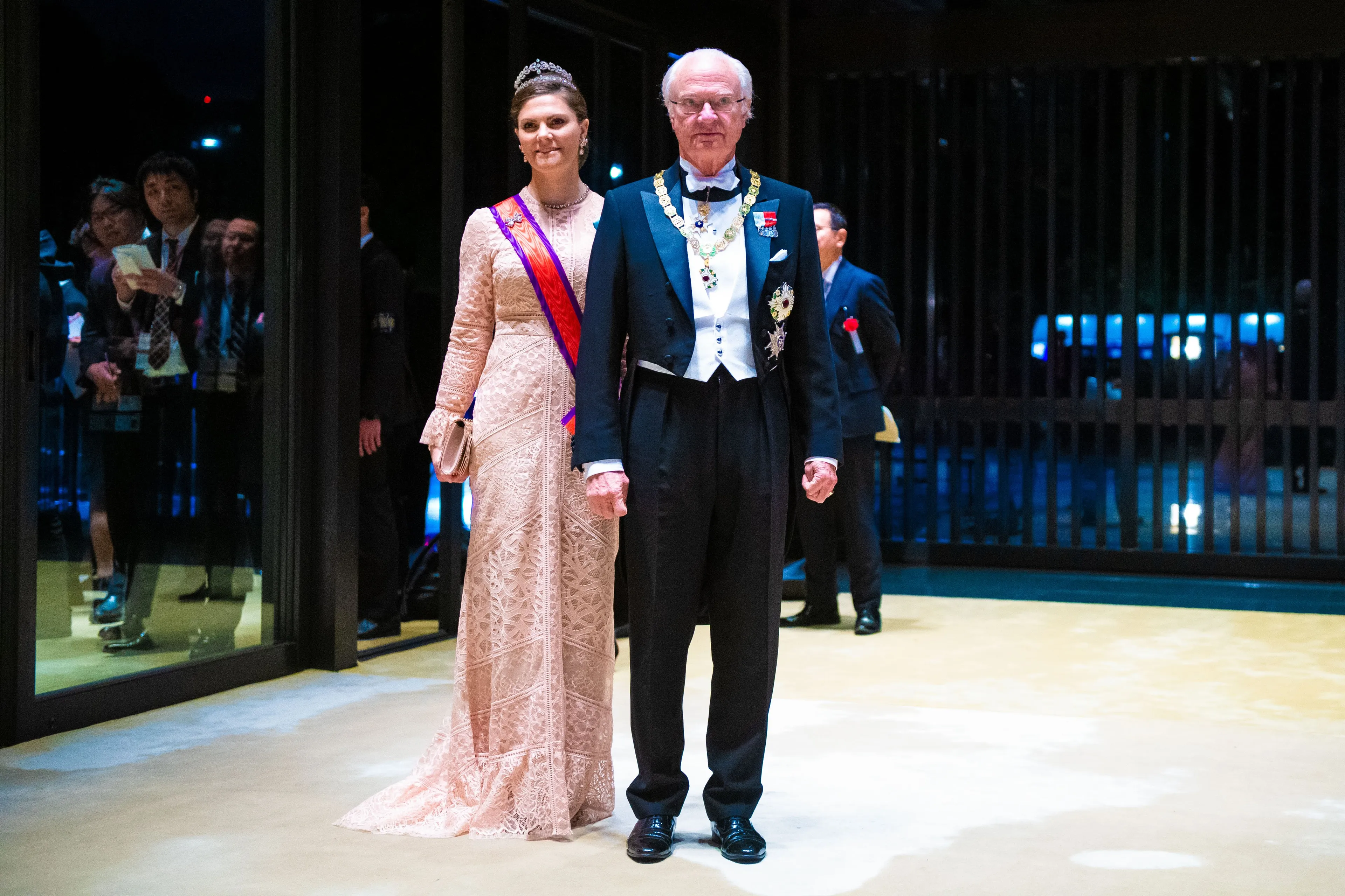 In 2019 reist kroonprinses Victoria met haar vader koning Carl Gustaf af naar Japan, vanwege de inhuldiging van keizer Nahurito. De twee zijn daar aanwezig bij verschillende plechtigheden in Tokio. Voor het galadiner kiest de Zweedse kroonprinses wederom voor een lichtroze japon.