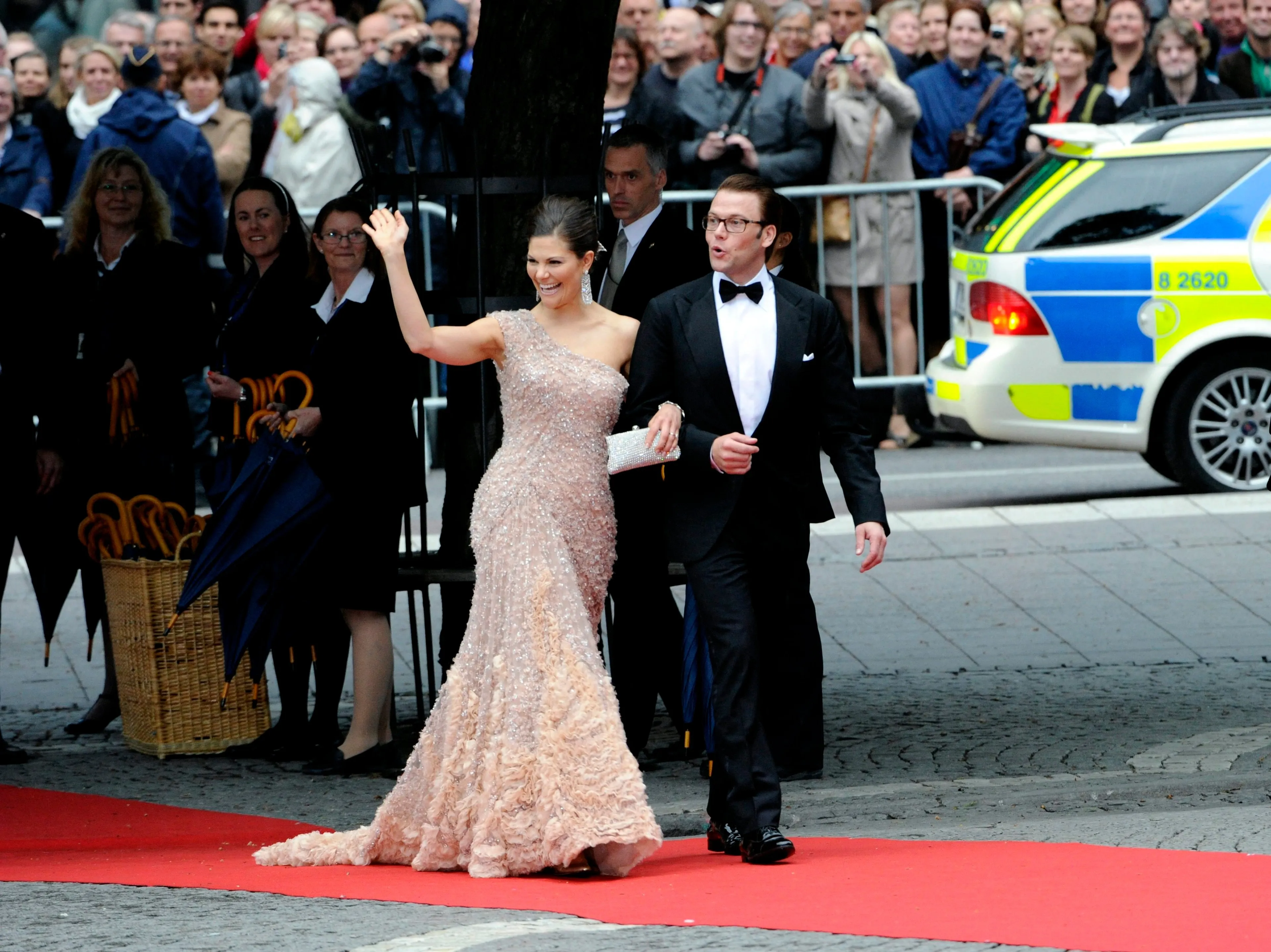 Roze lijkt een favoriete kleur te zijn van de Zweedse prinses. Regelmatig verschijnt ze in de mooiste roze japons. Zo zien we haar de dag voor haar huwelijk in een zachtroze galajurk van Elie Saab. Ze draagt de japon bij het diner dat wordt gegeven ter gelegenheid van hun bruiloft op 19 juni 2010.
