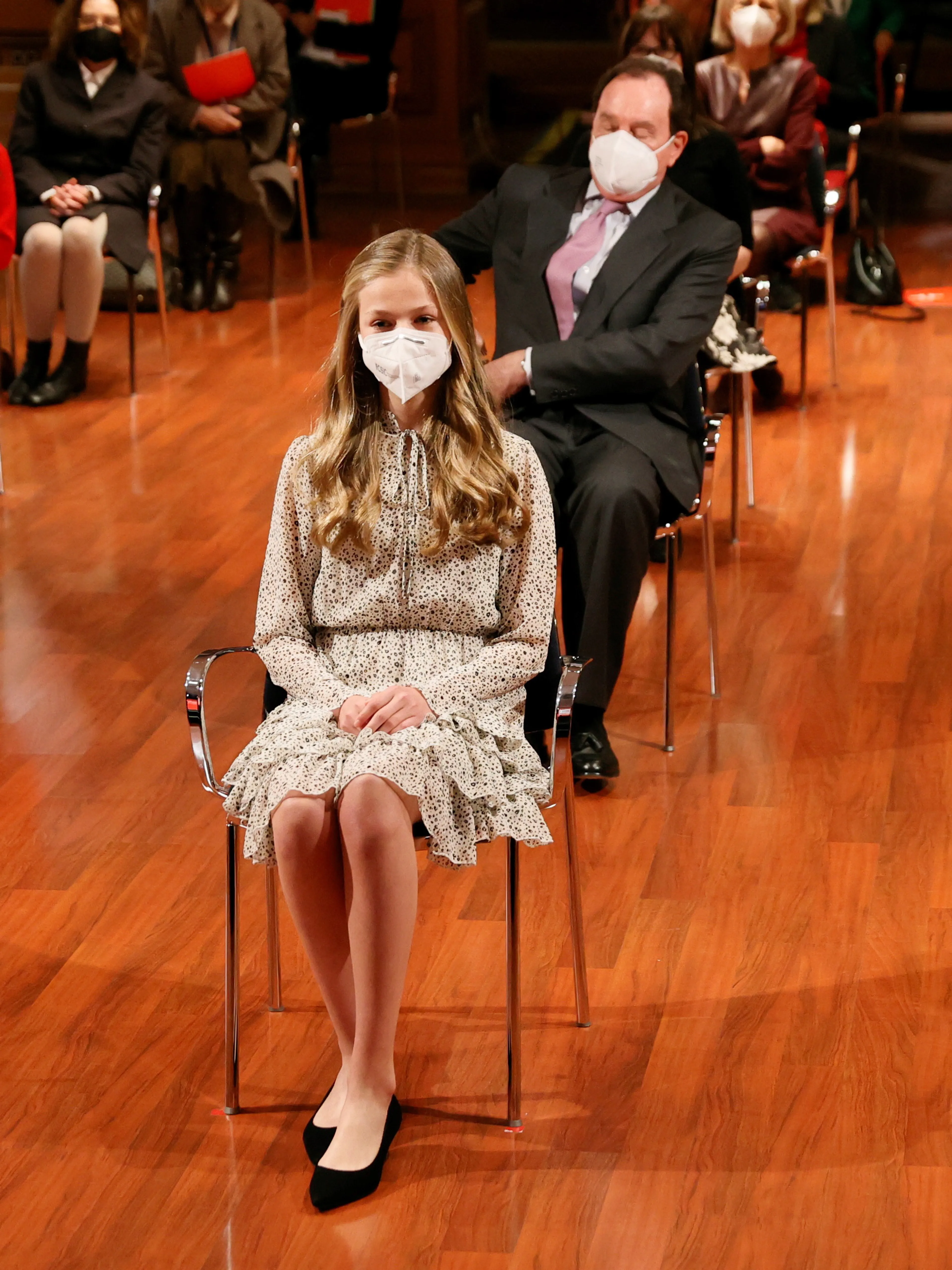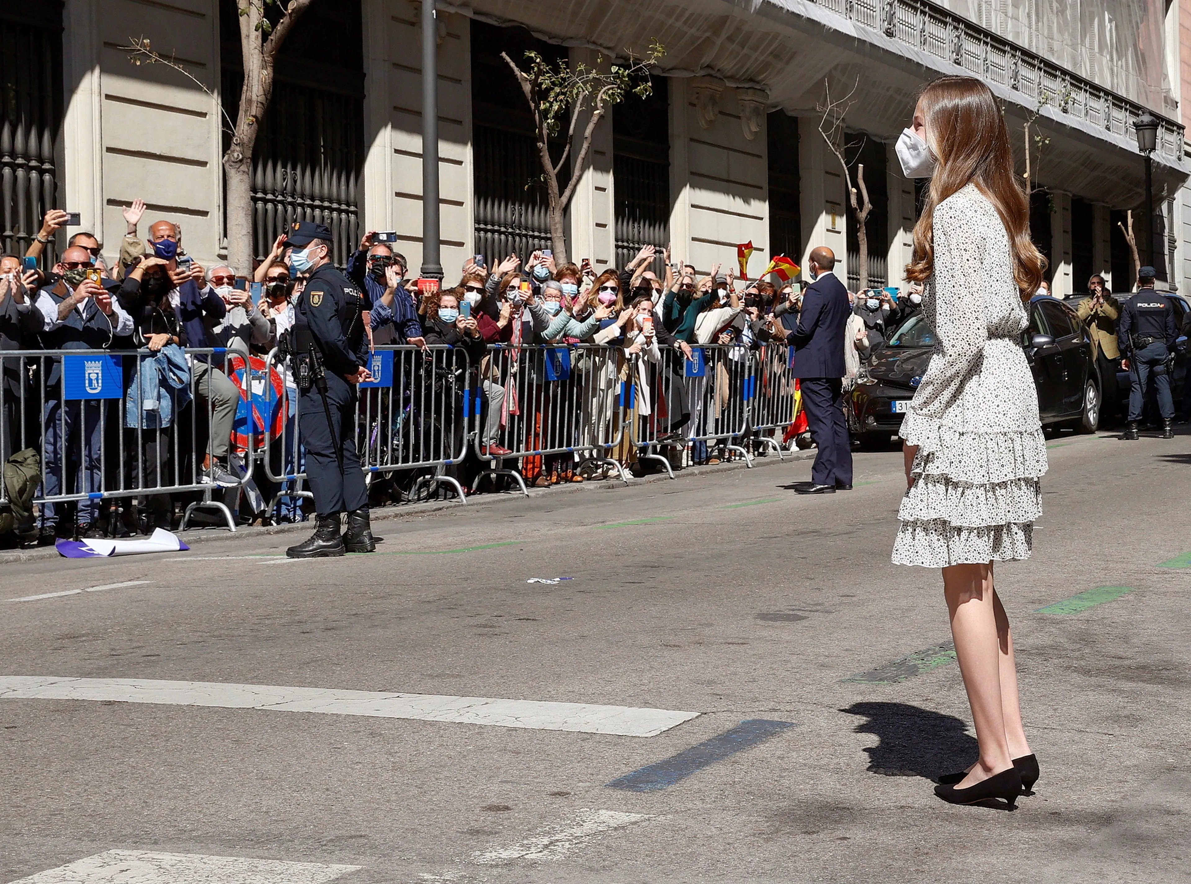 Bij aankomst stond er een groep mensen op Leonor te wachten, en werd er ook 'Leonor! Leonor!' gescandeerd. Leonor deed al vaker koninklijke taken, maar het is vandaag voor het eerst dat zij zonder haar ouders op pad gaat.