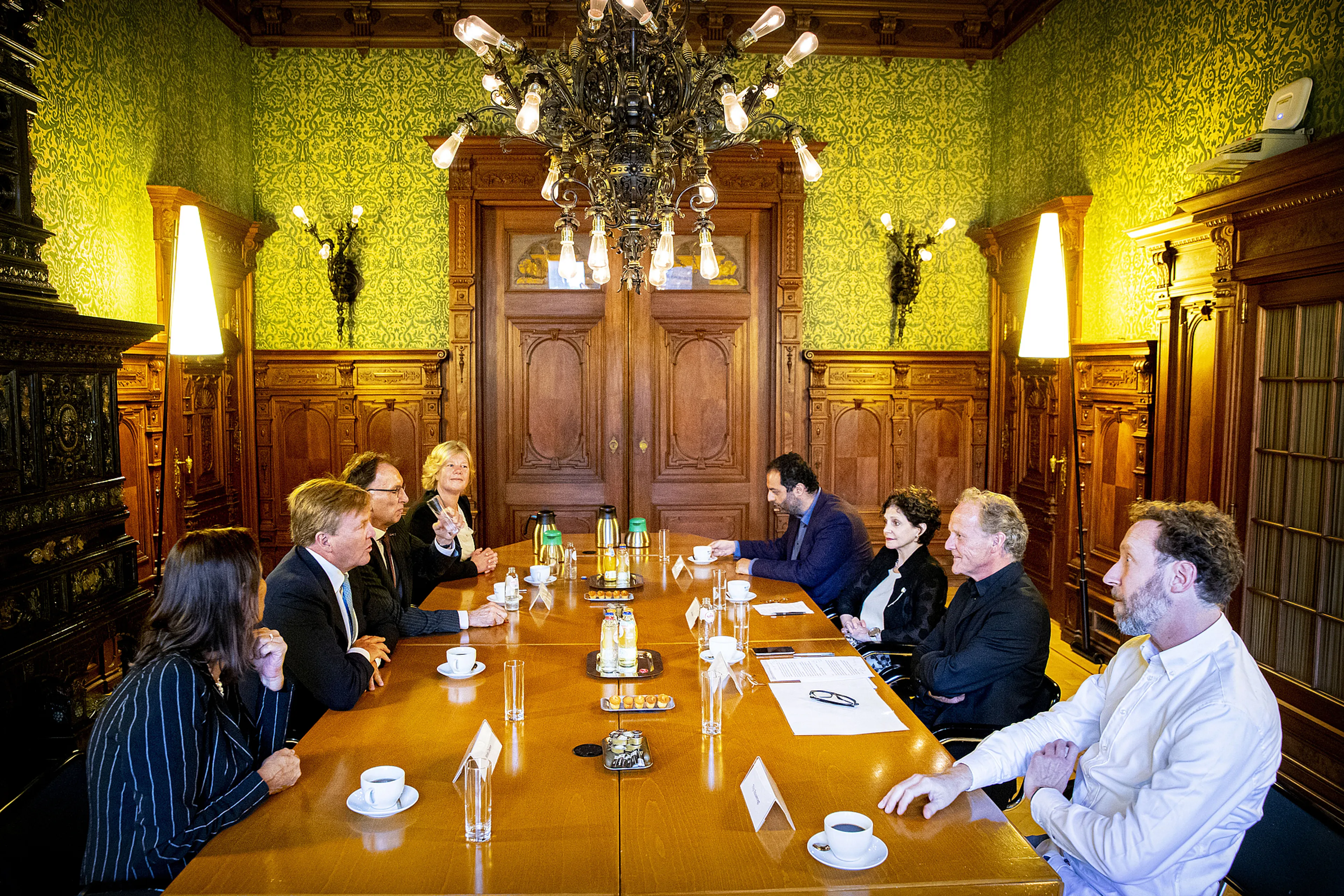 Het NIOD is onderdeel van de Koninklijke Nederlandse Academie van Wetenschappen, waar de koning beschermheer van is. Koning Willem-Alexander, zelf historicus, had een gesprek met wetenschappers over de actuele onderzoeken.