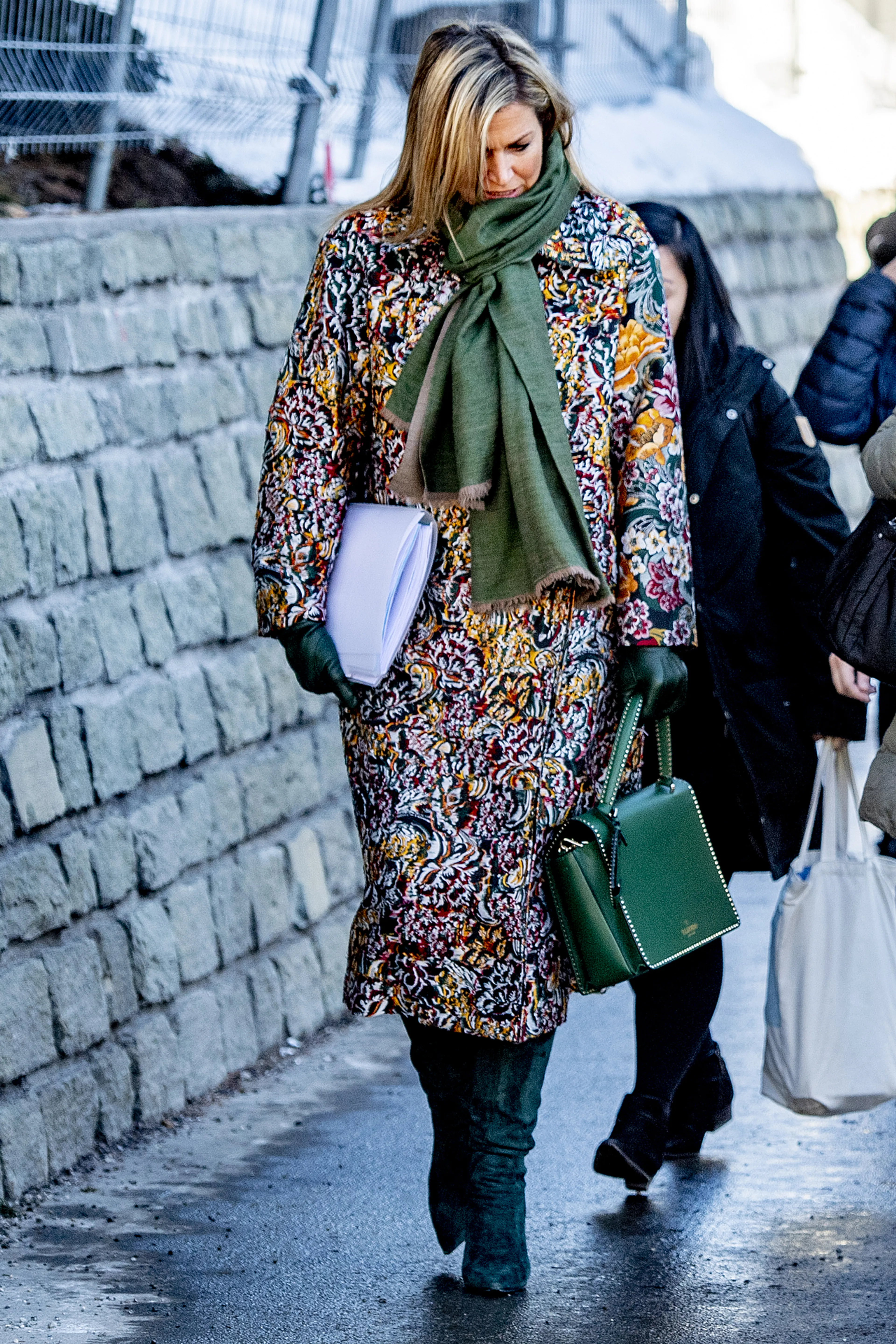 Naast deze nieuwe look van Oscar de la Renta shopte Máxima meer bij het Amerikaanse modehuis. Zo zagen we haar in het Zwitserse Davos in twee bloemenmantels van dit label.