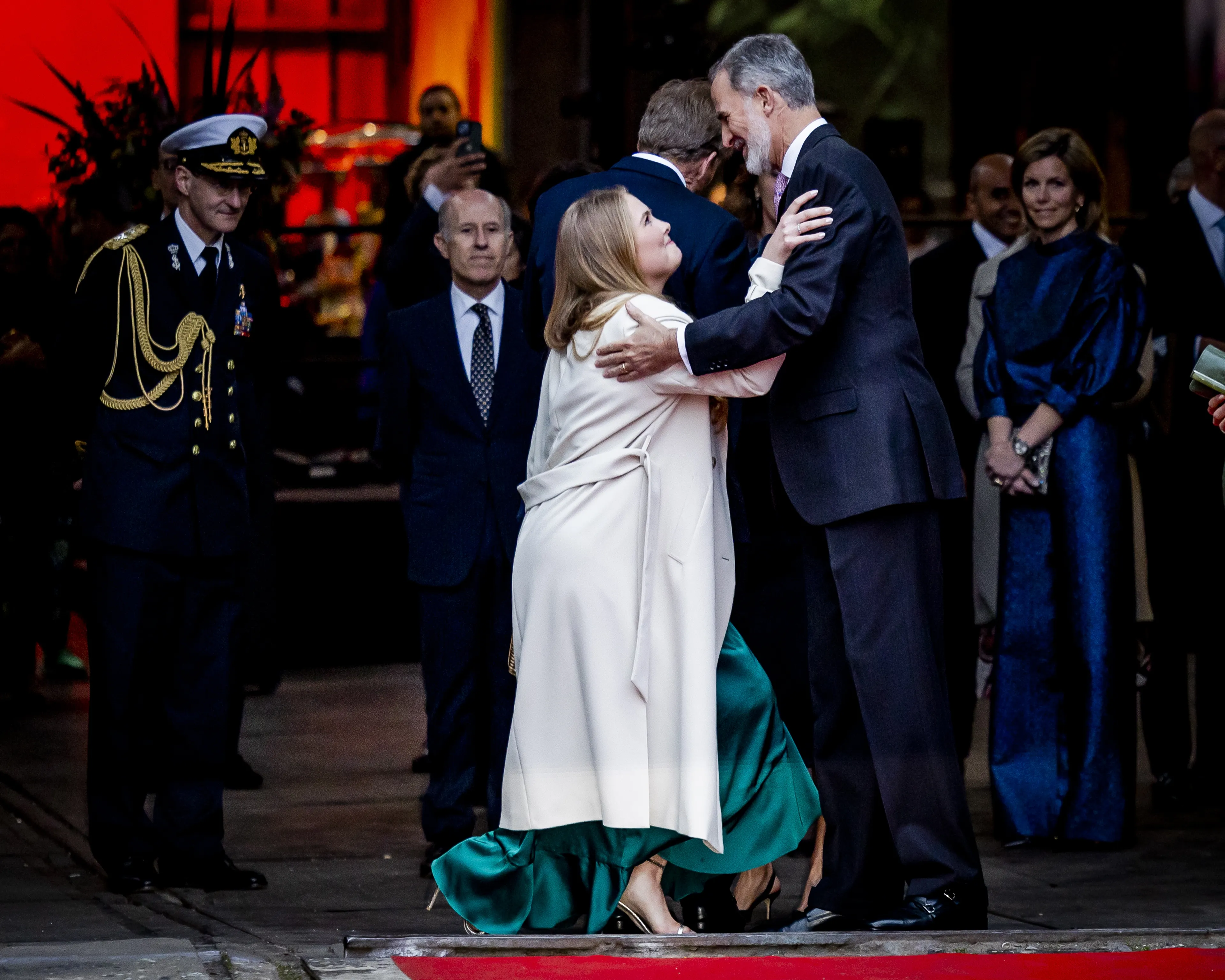 Koning Frederik en koning Mary worden door kroonprinses Victoria begroet met een kniksje, zoals in onderstaande video te zien is. De stellen kennen elkaar goed en zijn leeftijdsgenoten. Maar omdat Frederik en Mary nu hoger in rang staan dan Victoria en haar man, maakt Victoria de kniebuiging voor haar collega's. Van Leggelo legde al eerder aan Blauw Bloed uit dat het een vorm van respect en vriendschap is als degene waarvoor de kniebuiging wordt gemaakt, de ander lichtelijk omhoog helpt. En zoals je ziet is dat precies wat koningin Mary bij kroonprinses Victoria doet.