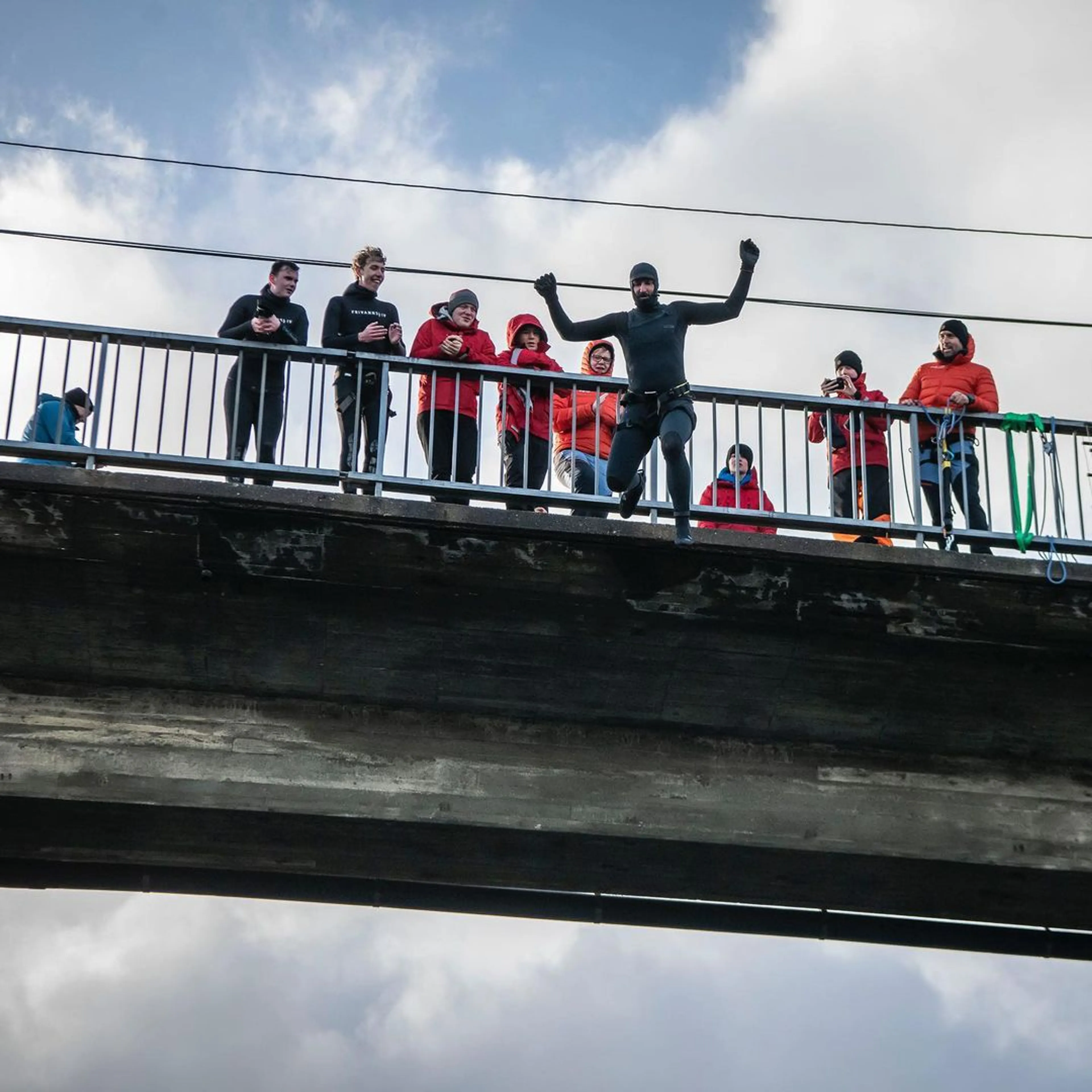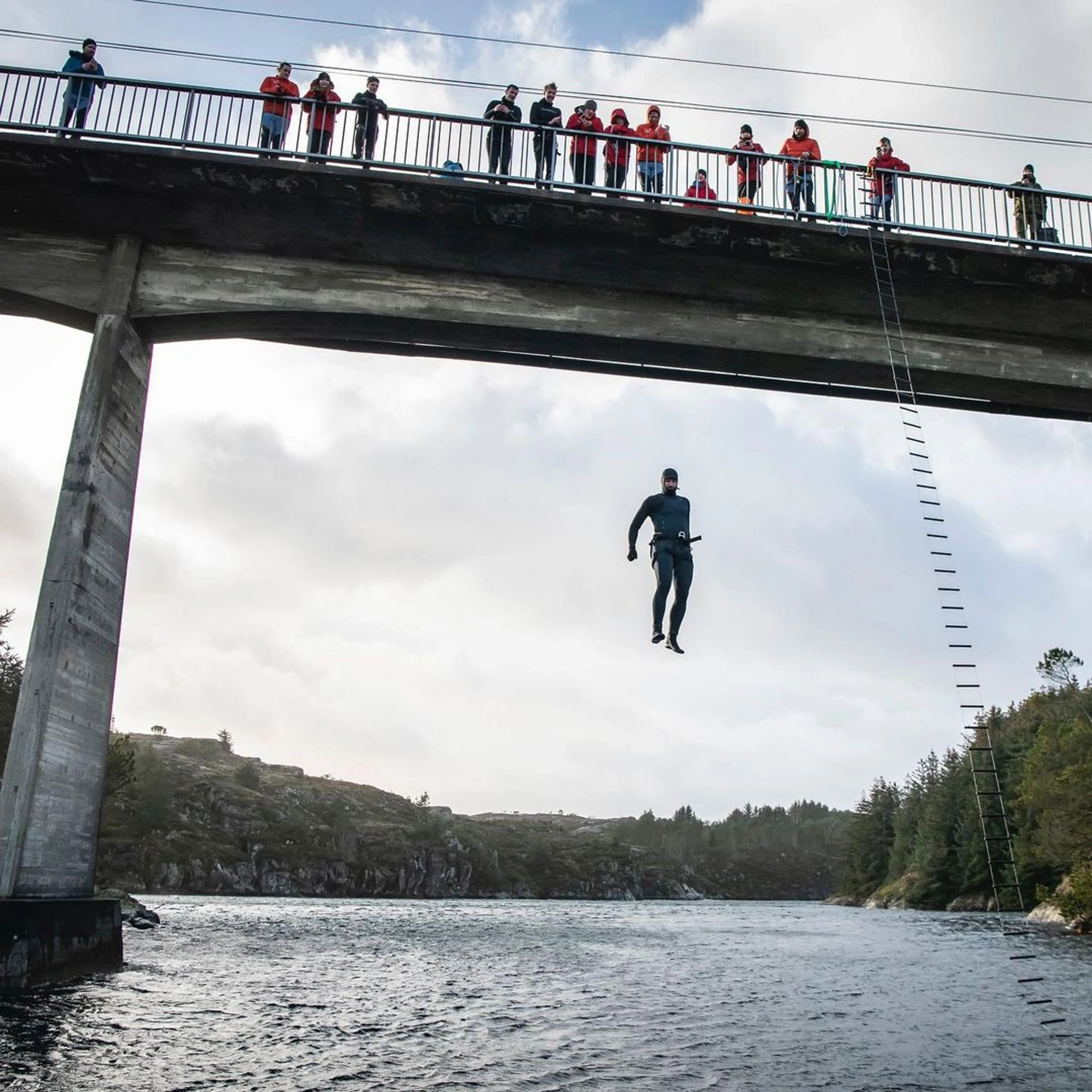 De sprong is een vast onderdeel van het Dale Oen Centre. In dit centrum worden jongeren in de natuur mentaal en fysiek uitgedaagd. Ze geven er geen cijfers, maar "bouwen karakter", aldus oprichter Robin Dale Oen. Na de sprong sprak Haakon met de jongeren over zijn ervaring.