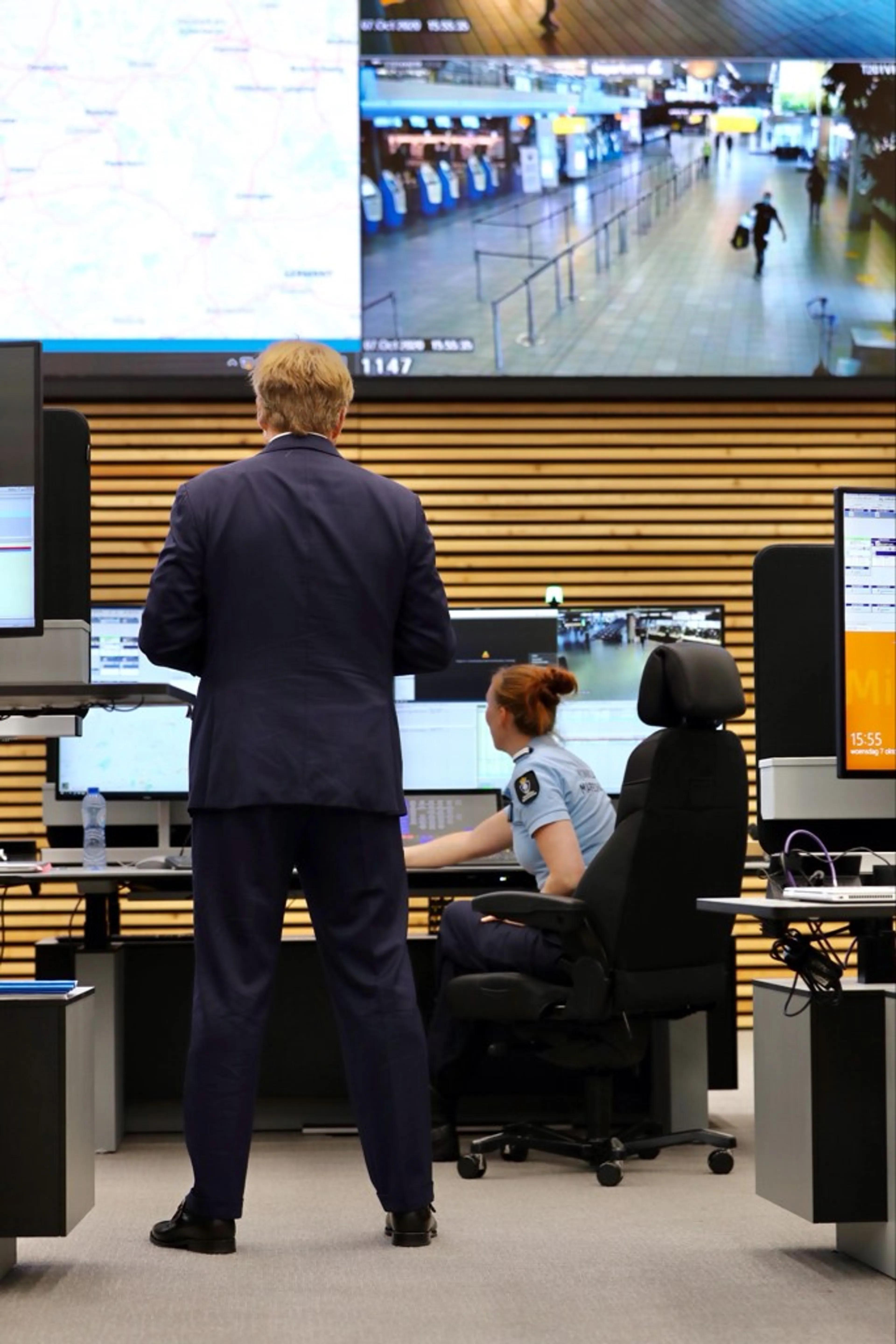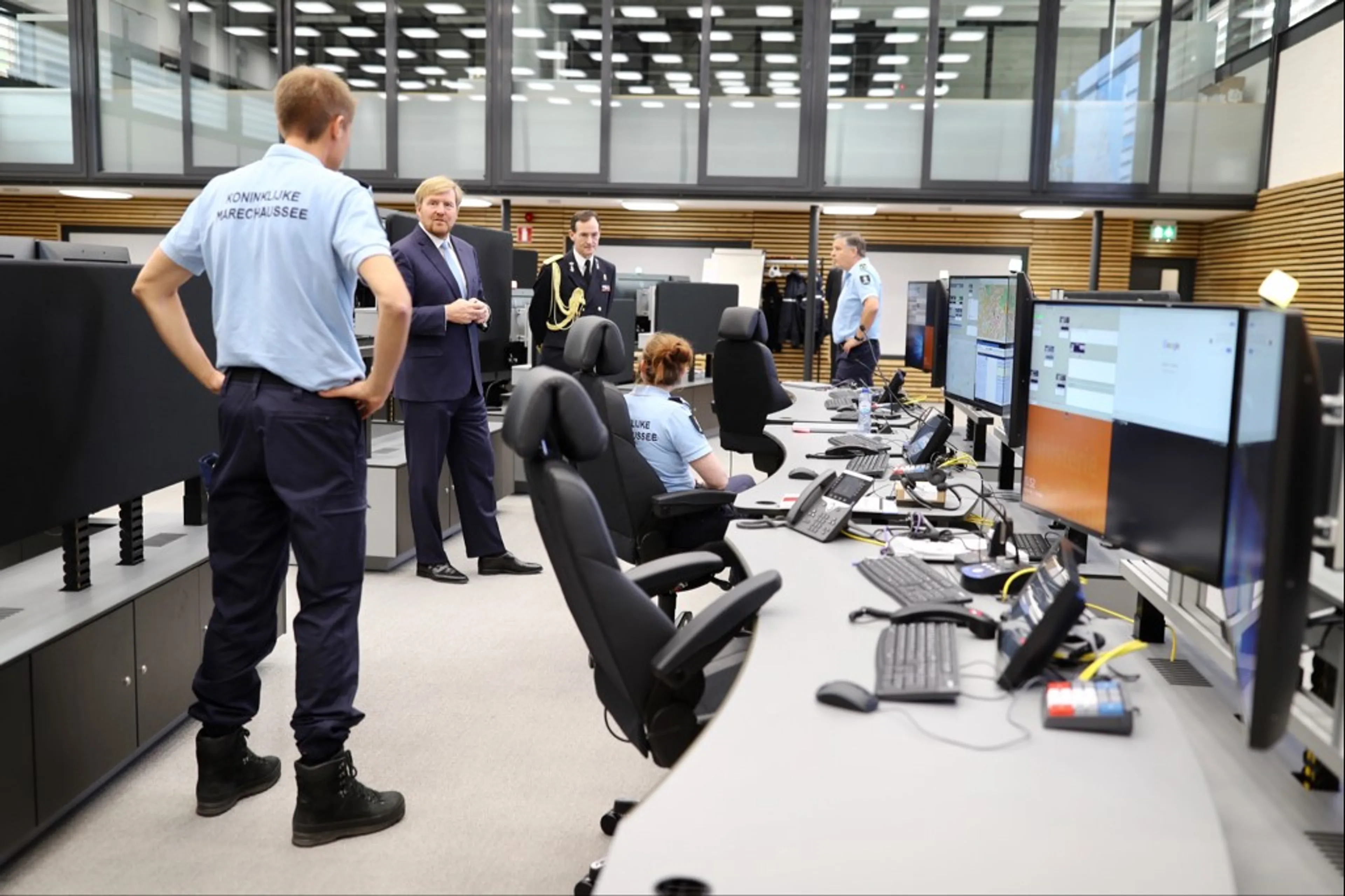 Vervolgens kreeg Willem-Alexander in de meldkamer te zien hoe de marechaussee handelt wanneer reguliere processen dreigen te worden verstoord. Afsluitend ging de koning in gesprek met medewerkers over hun ervaringen en werkzaamheden.