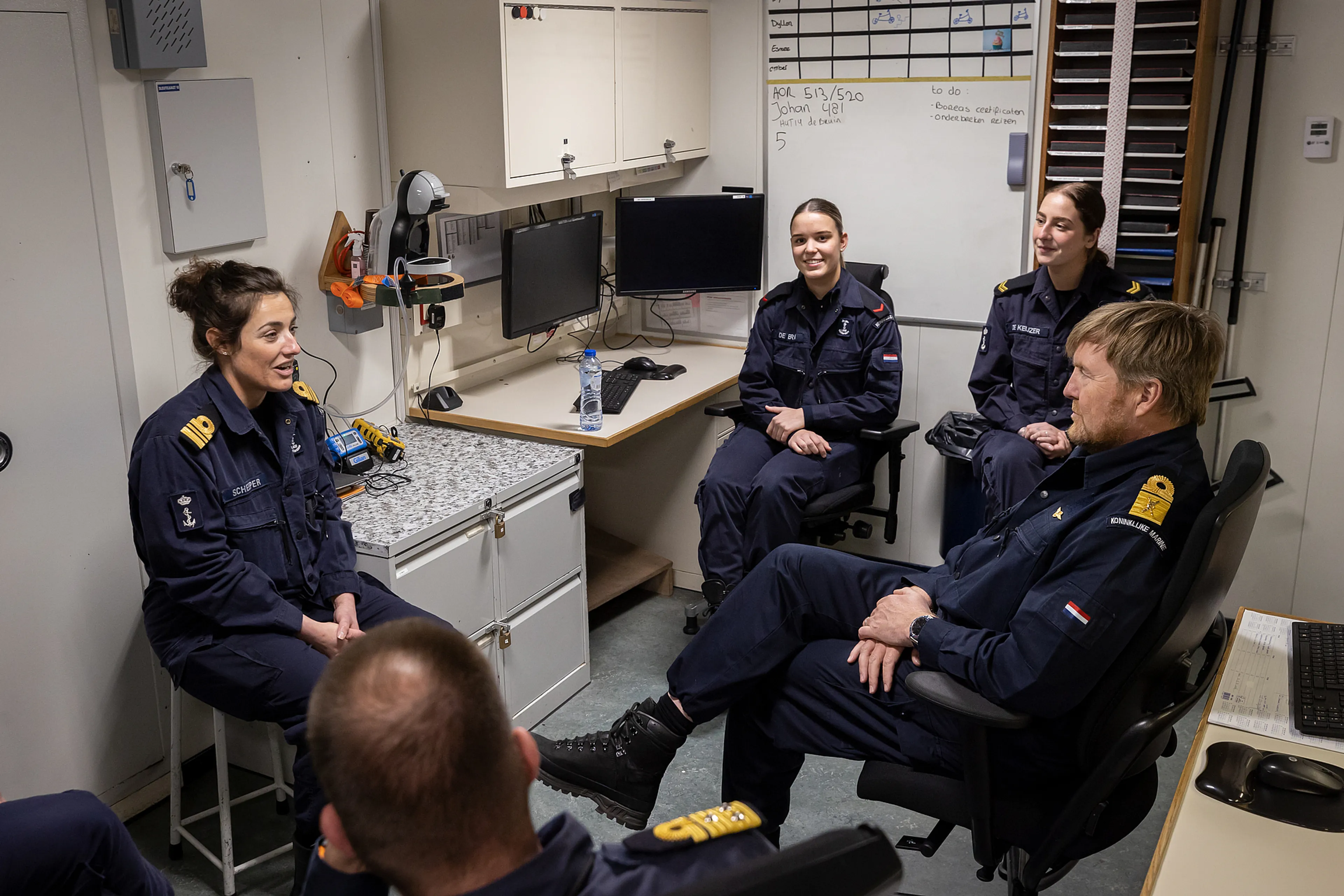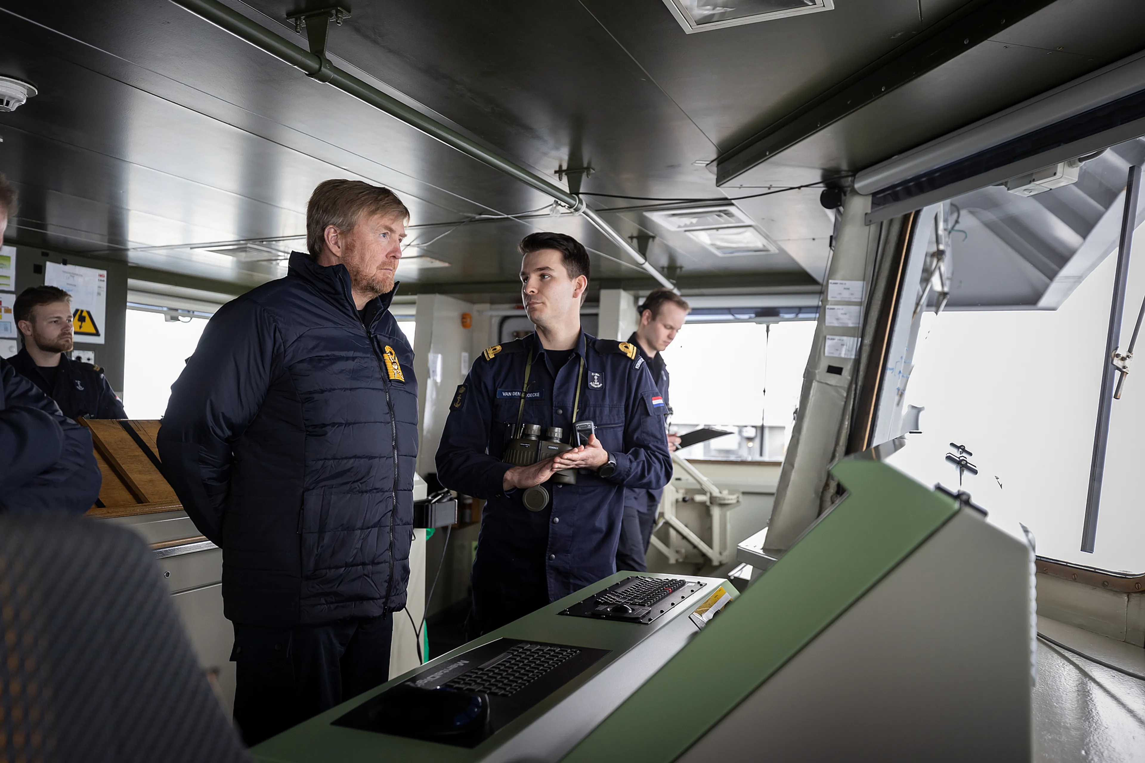 Willem-Alexander kreeg zaterdag aan boord van het schip Zr.Ms. Rotterdam een rondleiding en hoorde daar onder meer hoe maritieme diensten helpen bij amfibische landingen.