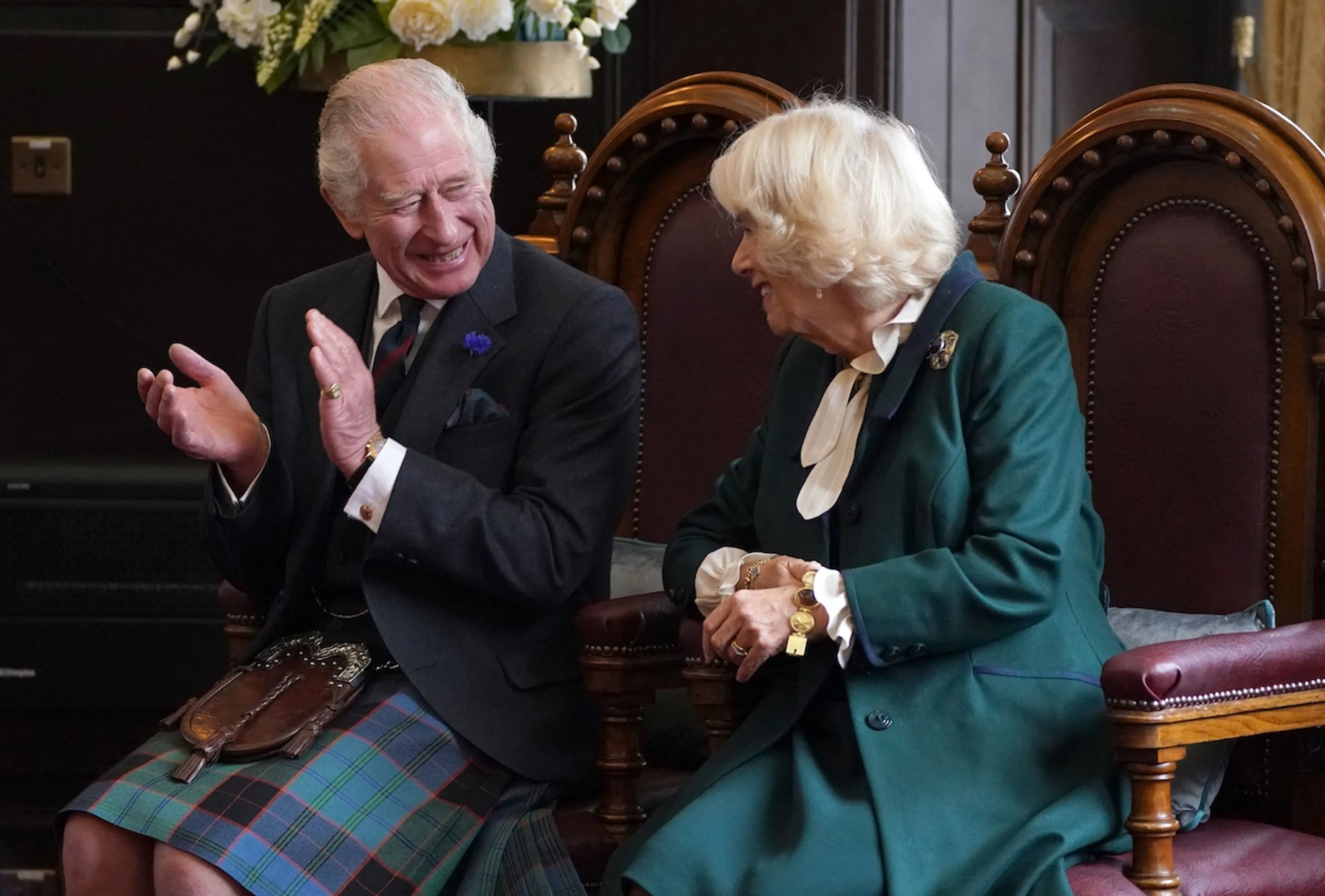 Het koningspaar bracht een bezoek aan het Schotse Dunfermline om te vieren dat de plaats zich sinds een paar maanden officieel een stad mag noemen. De inwoners liepen massaal uit voor hun nieuwe koning en zijn echtgenote.