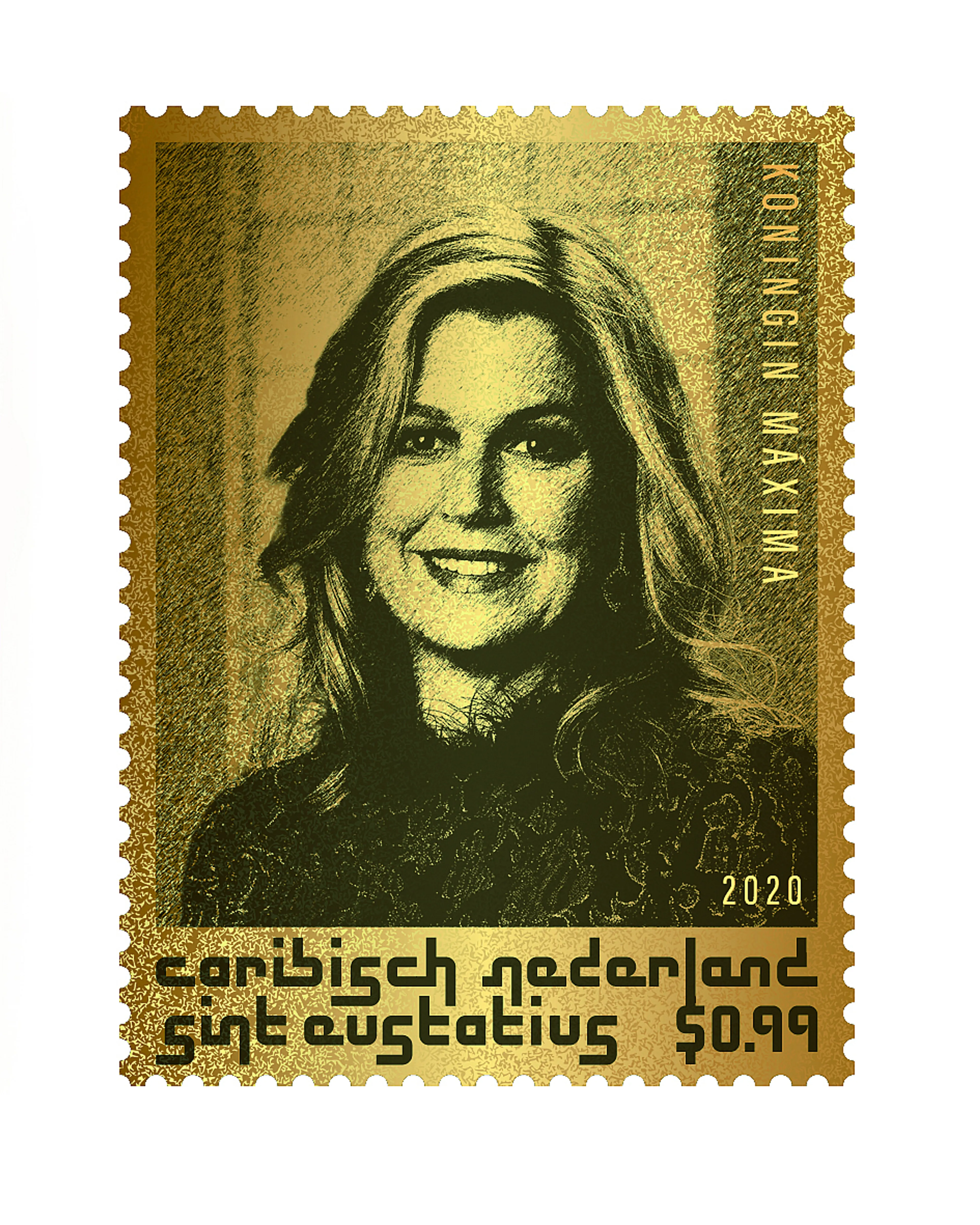 Ter ere van het tienjarig bestaan van Caribisch Nederland drukt FXDC-Post, de postdienst van de Cariben, gouden postzegels van koning Willem-Alexander en koningin Máxima.