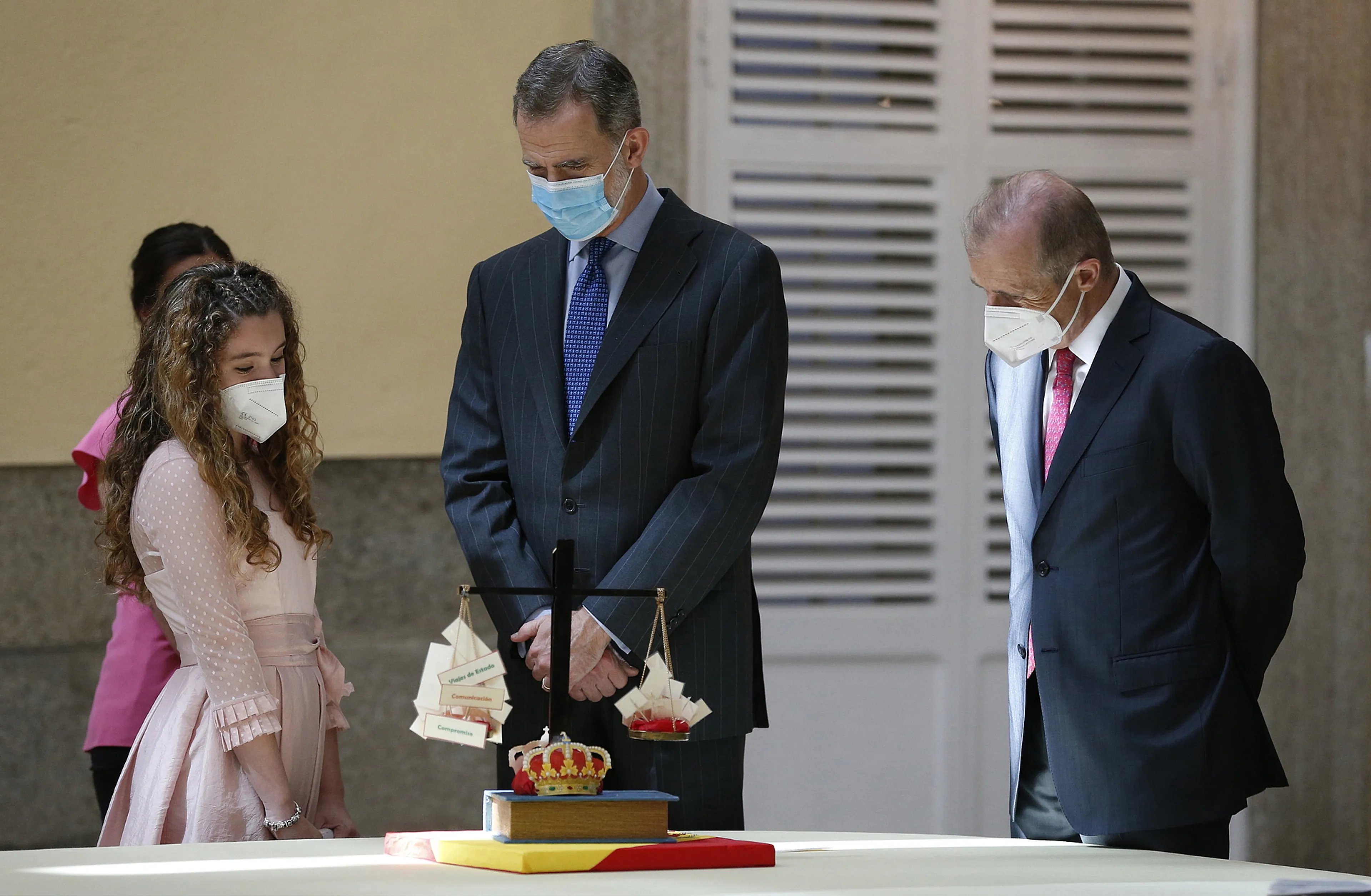 Koning Felipe bekijkt winnende knutsels schoolwedstrijd