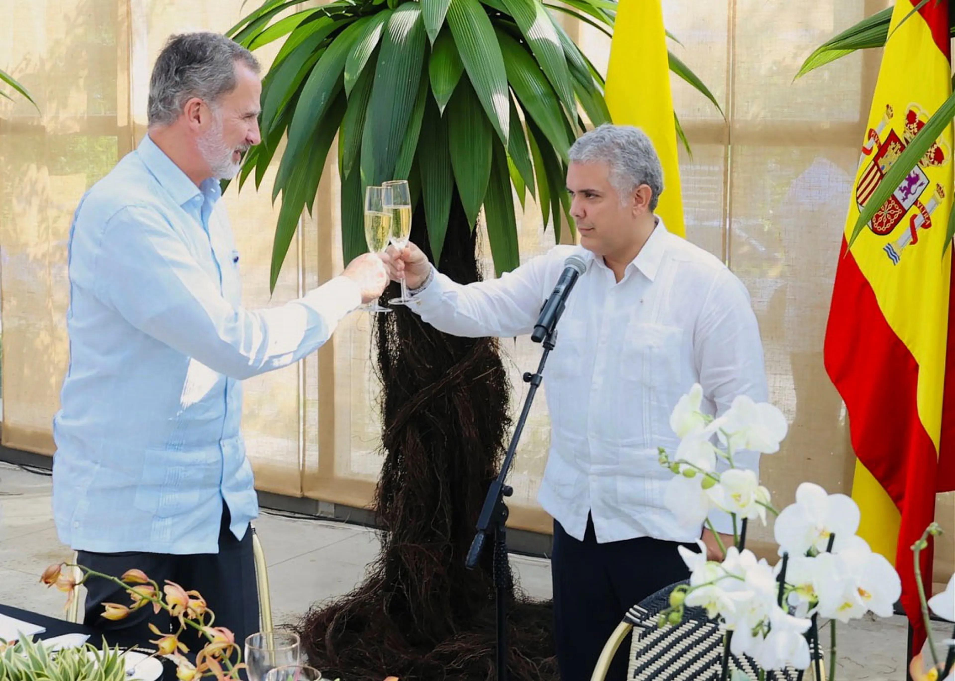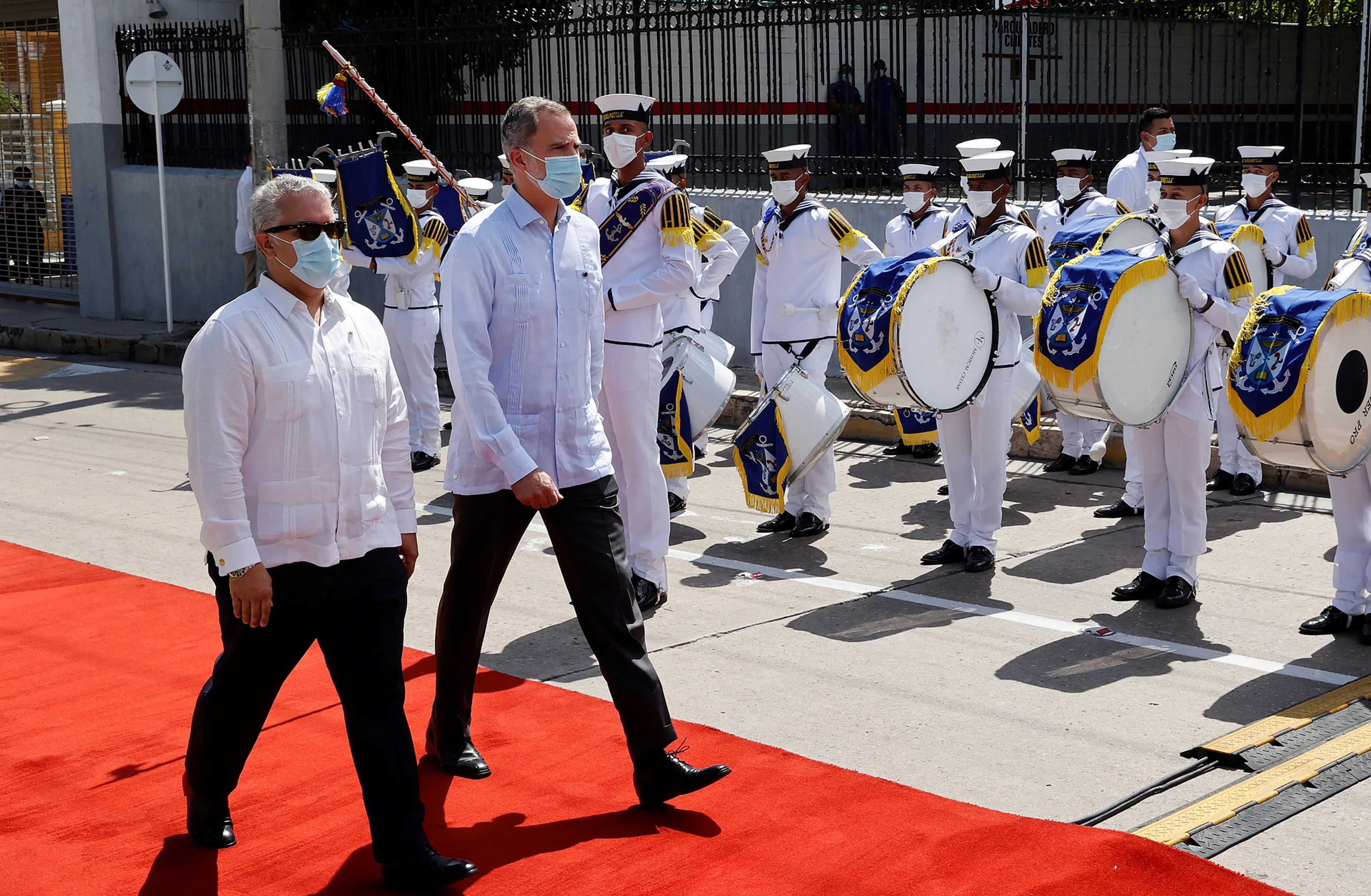 Koning Felipe van Spanje is donderdag officieel welkom geheten in Colombia. President Iván Duque wachtte hem op in de stad Barranquilla in het noorden van het land.