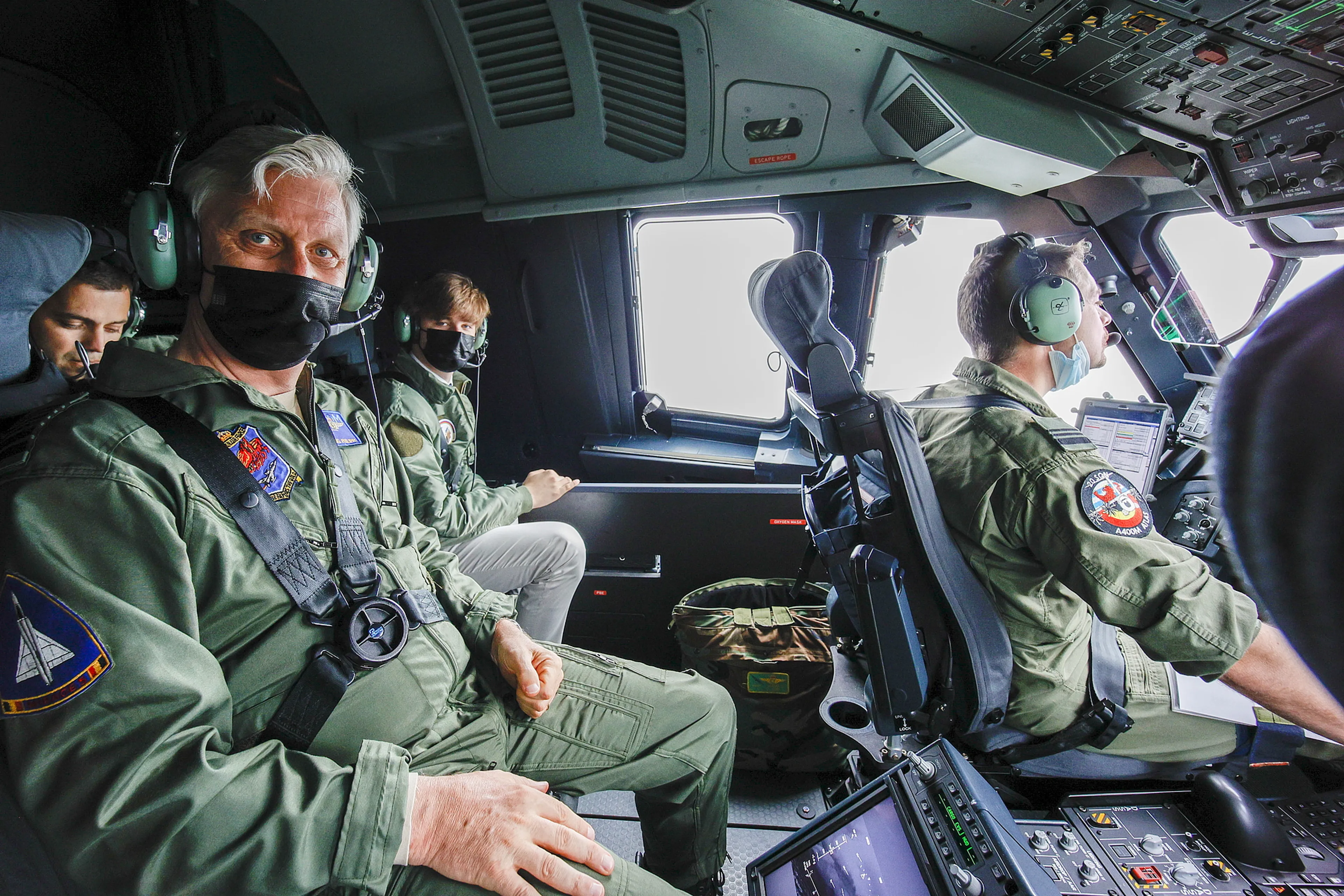 De koning - zelf piloot - en de prins vlogen mee in de ruime cockpit van de A400. Het staatshoofd genoot volgens persbureau Belga zichtbaar van de vlucht en was vol lof over de demonstratie.