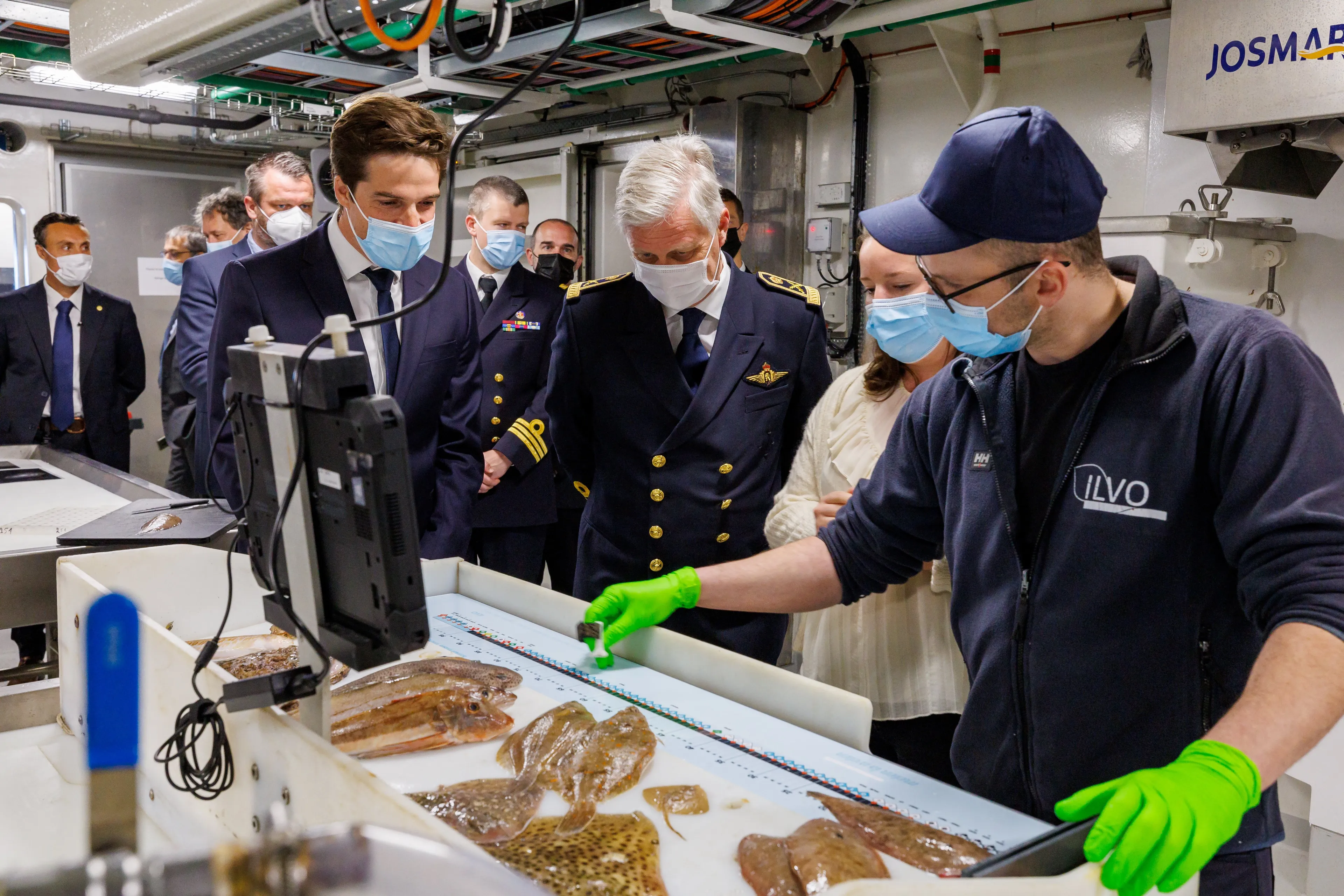 Voorafgaand aan de korte vaartocht nam de koning ook nog een kijkje in twee laboratoria. In een daarvan doen wetenschappers onderzoek met vissen om adviezen op te kunnen stellen over visquota.