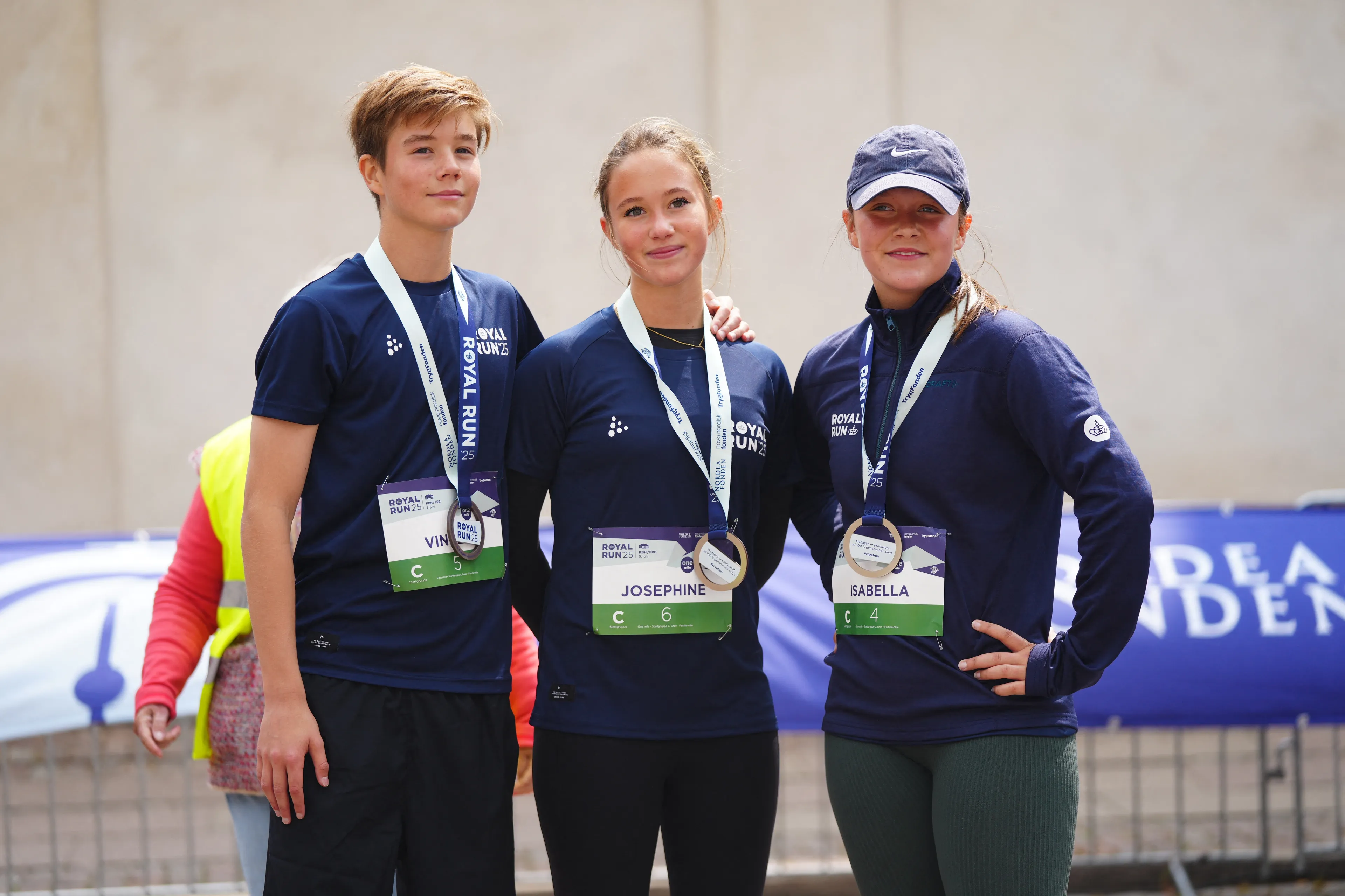 In Kopenhagen liepen prinses Isabella, prinses Josephine en prins Vincent samen met duizenden kinderen, jongeren en families de zogeheten familiemijl. Na afloop ging het drietal met hun medailles op de foto. Kroonprins Christian ging in zijn eentje op pad. Hij koos voor de 5 kilometer die hij in de Deense stad Viborg voltooide.