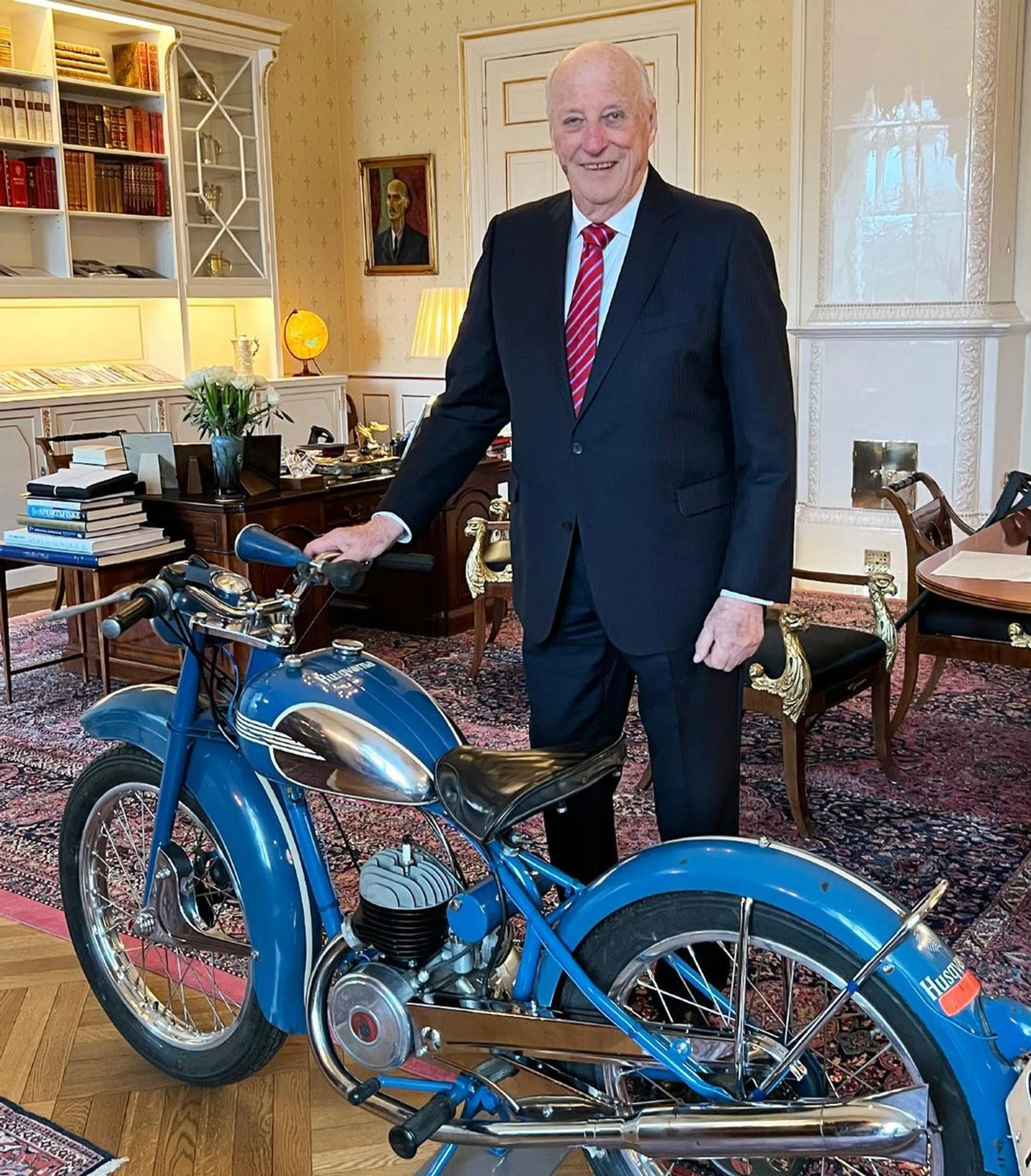 Tijdens een rondleiding langs een tentoonstelling met koninklijke voertuigen in maart vorig jaar, vroeg Harald zich af waar zijn eerste motorfiets was die hij voor zijn zestiende verjaardag had gekregen. Het ging om een blauwe motorfiets van het merk Husqvarna, de 30 Sport-uitvoering. Harald kreeg het destijds cadeau van zijn vader, toenmalig kroonprins Olav.