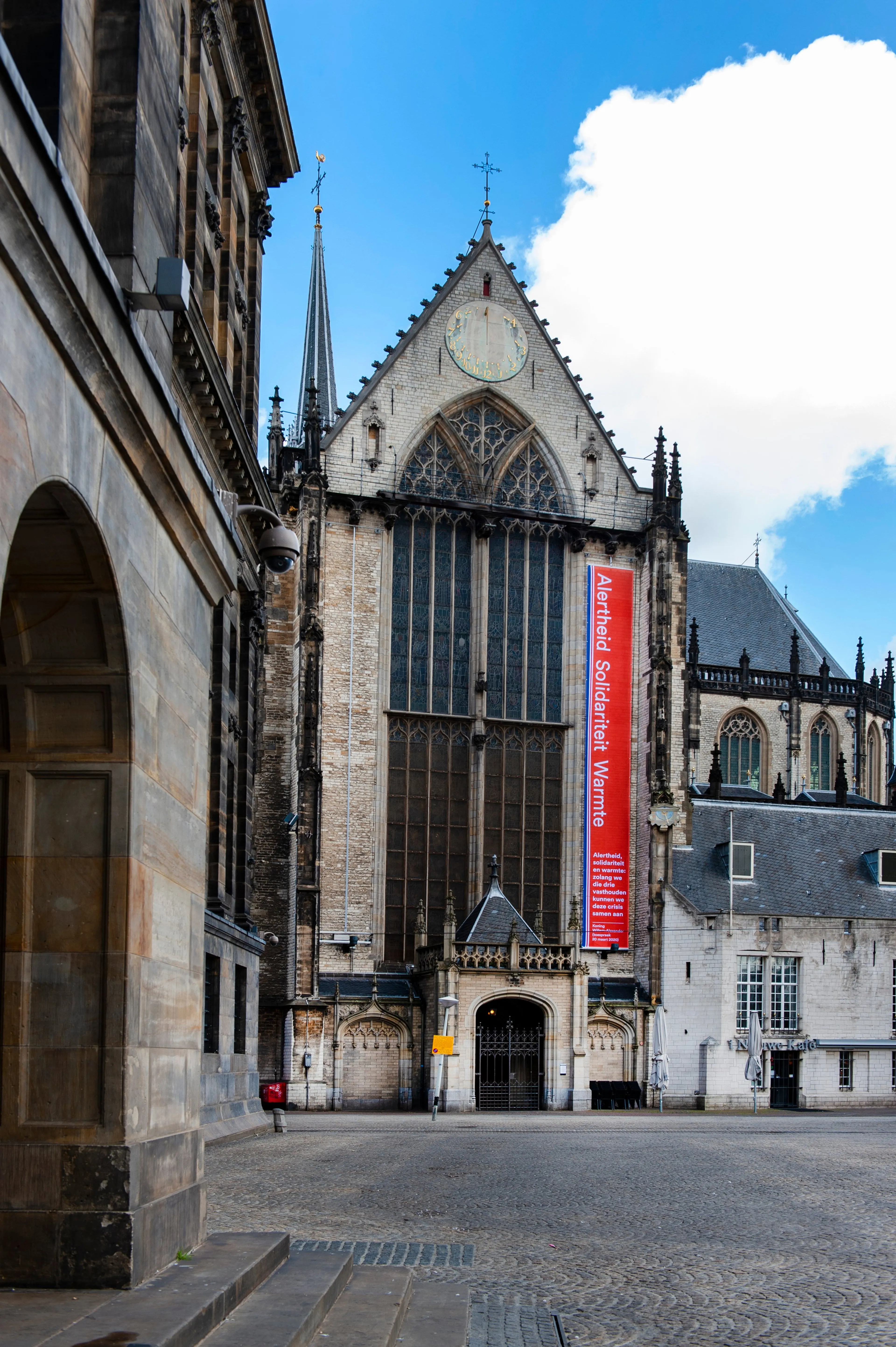Op de Nieuwe Kerk in Amsterdam, waar op 4 mei de Herdenkingsbijeenkomst plaatsvond, hangt een spandoek met daarop een citaat uit de toespraak van koning Willem-Alexander op 20 maart over het coronavirus. "Alertheid, solidariteit en warmte. Zolang we die drie vast houden kunnen we deze crisis samen aan."