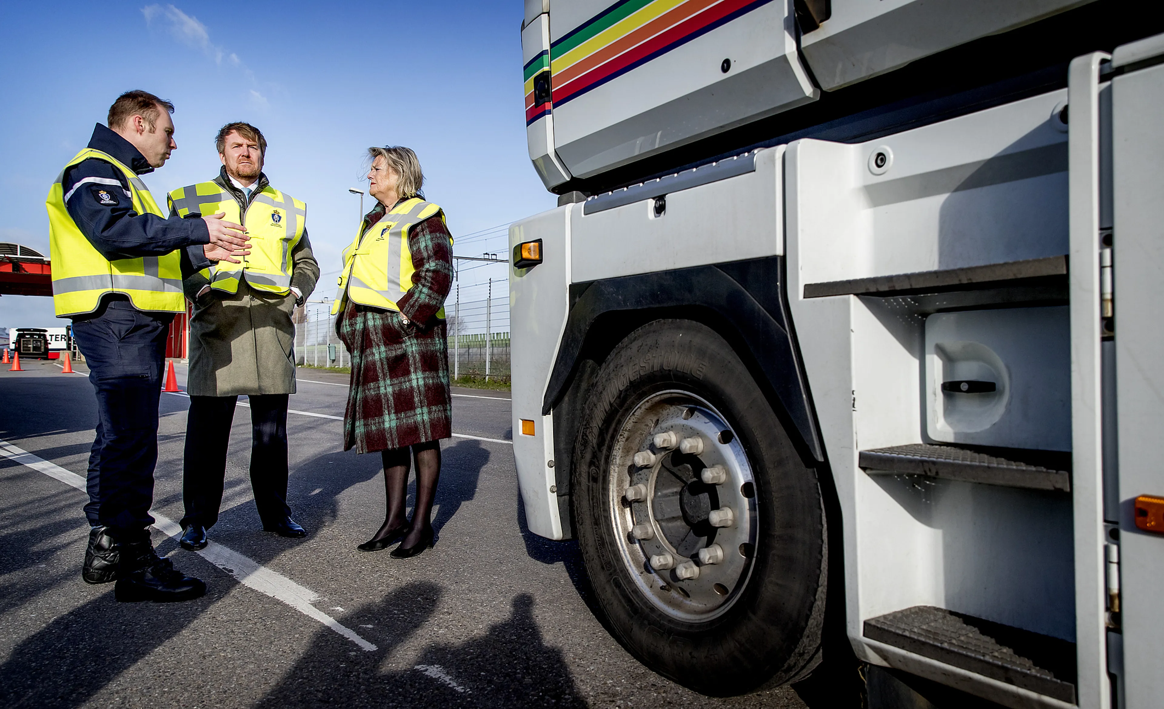 In de haven spraken de koning en de staatssecretaris met medewerkers van de marechaussee die de grensbewaking uitvoeren en ontmoetten ze vertegenwoordigers van onder meer de Immigratie- en Naturalisatiedienst (IND) en de Dienst Terugkeer & Vertrek. Ze hoorden van hen wat het werk inhoudt en wat het met medewerkers doet. Ook kregen de twee uitleg over de verschillende facetten van de grensbewaking in Hoek van Holland, van paspoortcontroles tot schade voor vervoerders en informatie-uitwisseling met andere landen.