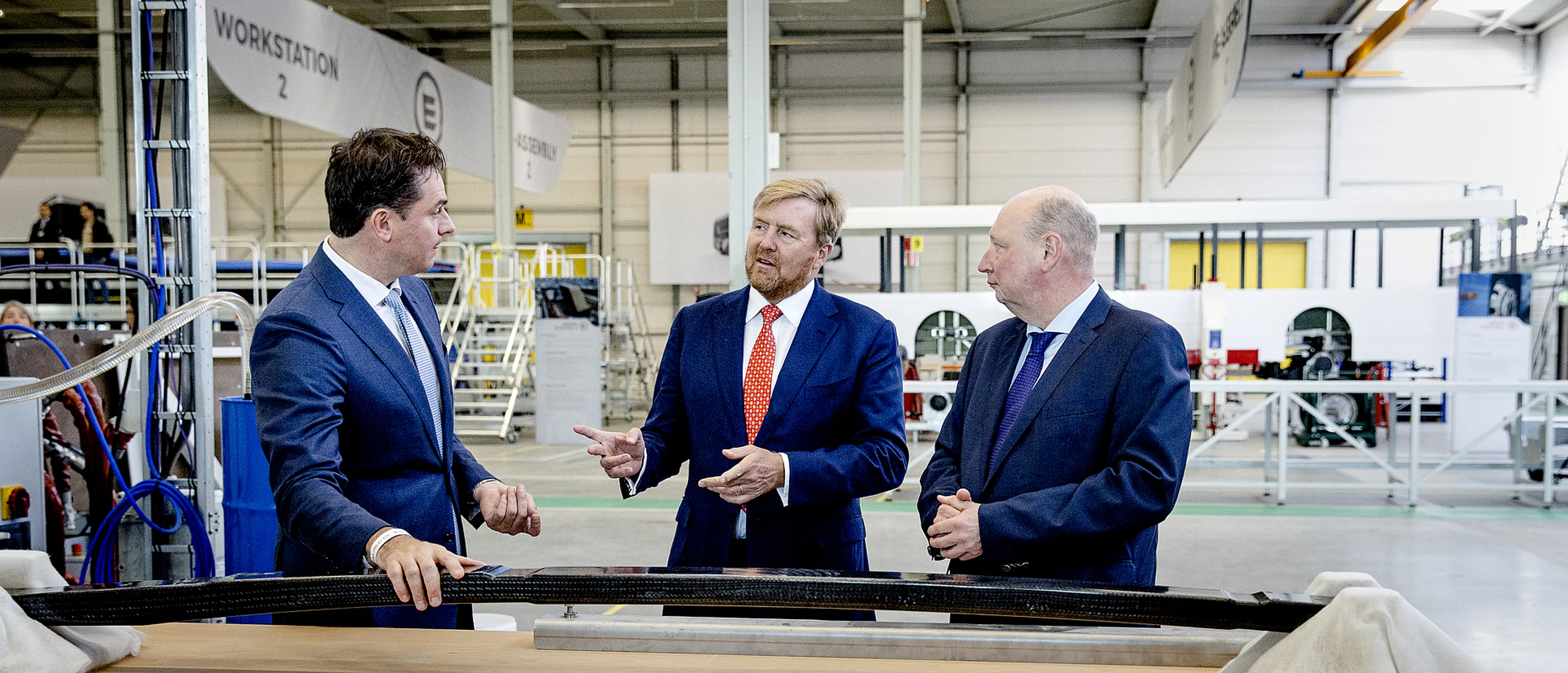 De koning werd samen met Henrik Hololei, directeur-generaal mobiliteit en transport van de Europese Commissie, door Ebusco-oprichter en directeur Peter Bijvelds door de fabriekshal gegidst. Bijvelds' toelichtingen werden geregeld onderbroken door soms ook technische vragen van Willem-Alexander en de Europese vertegenwoordiger. "Dit is waar we al lang naar uitkijken. We hebben zo'n fabriek in Europa nodig", zei Hololei.