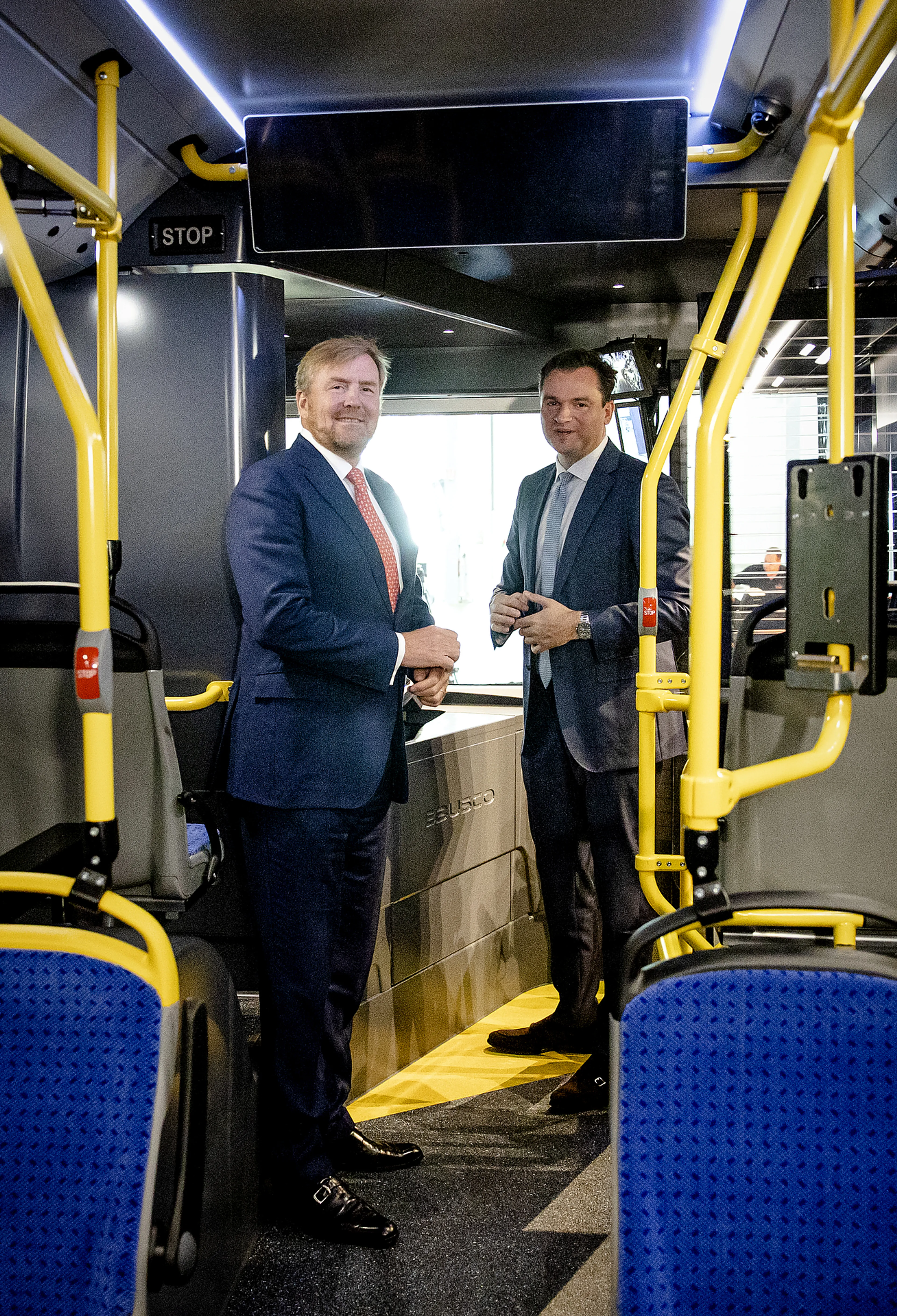 Dat in de nieuwe bussen ook aan de kleinste details wordt gedacht, hoorde Willem-Alexander, die zelf ook een kijkje nam in een opgestelde bus ook. Vandalisme in de bus kan worden tegengegaan door te zorgen dat er oplaadpunten zijn voor telefoons. Wie zijn telefoon kan opladen, kan deze meteen ook gebruiken en verveelt zich niet en laat de bus heel, zo vertelde Bijvelds.