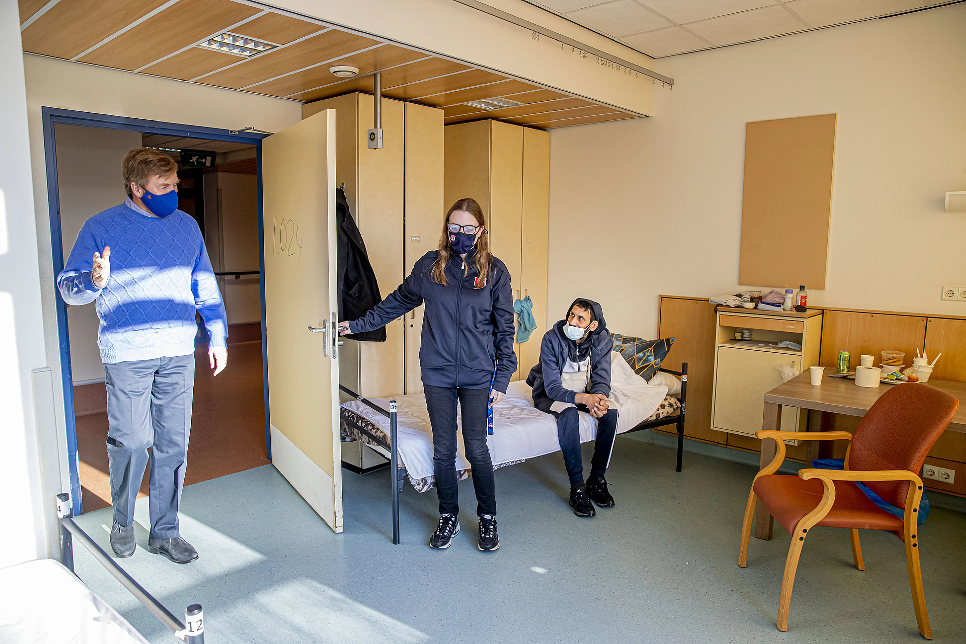 Willem-Alexander nam ruim de tijd om te vragen naar de ins en outs van de winteropvang, waar nu 109 mensen verblijven. De deelnemers krijgen een slaapplaats en daarnaast ook de mogelijkheid te douchen en kleding te wassen. Er is een broodpakket in de ochtend en een warme maaltijd in de avond. In verband met de lockdown en avondklok is de opvang nu dag en nacht geopend en krijgen de gebruikers - het Leger des Heils spreekt liever van deelnemers - een eigen kamer of tweepersoonskamer waar ze kunnen verblijven.