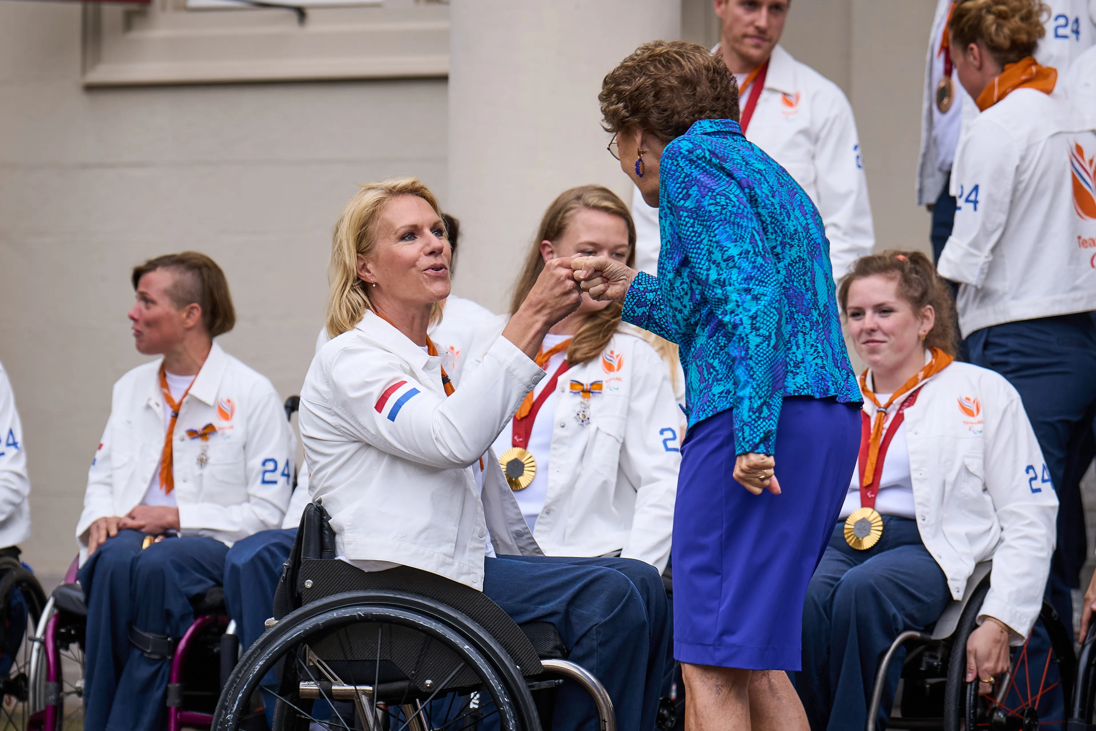 Koning Willem-Alexander en prinses Margriet ontvangen dinsdagmiddag de Paralympische medaillewinnaars op Paleis Noordeinde. De koning en zijn tante zetten de atleten op traditionele wijze in het zonnetje.