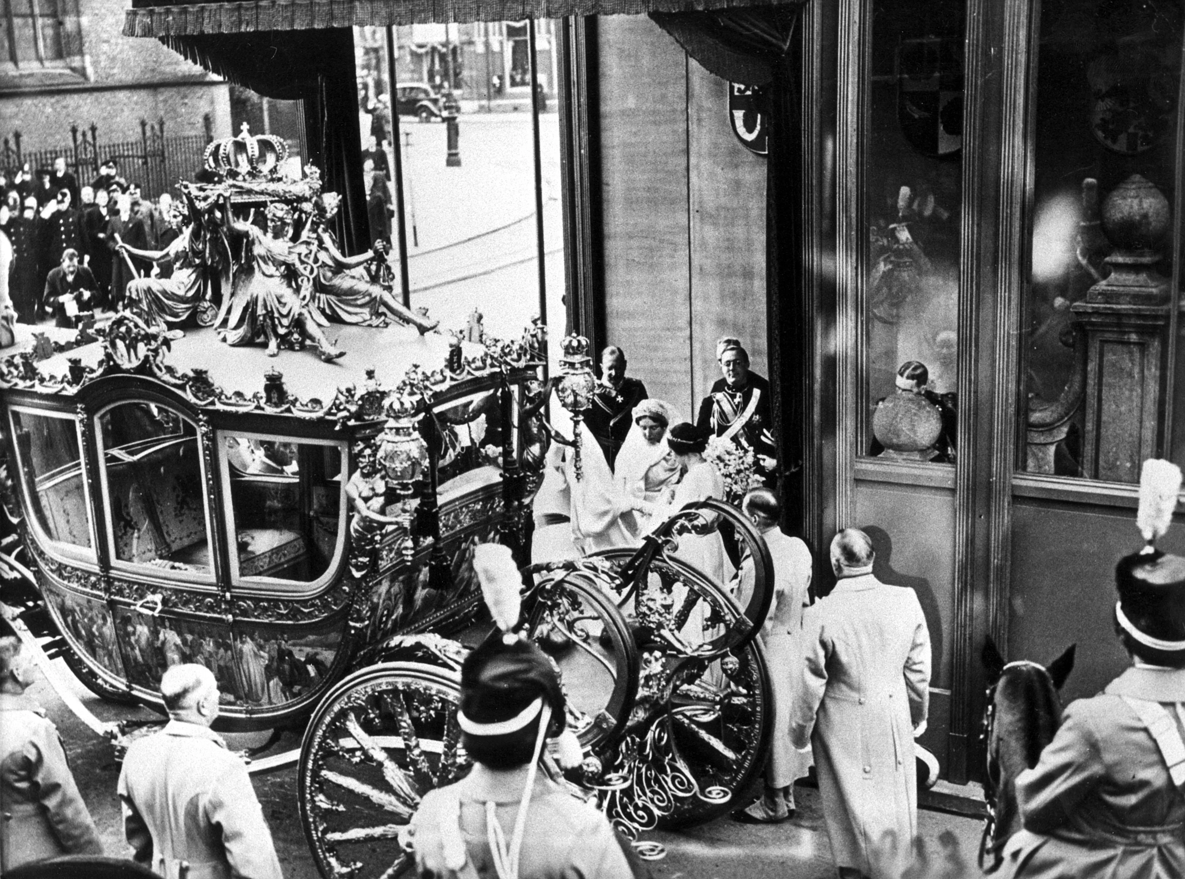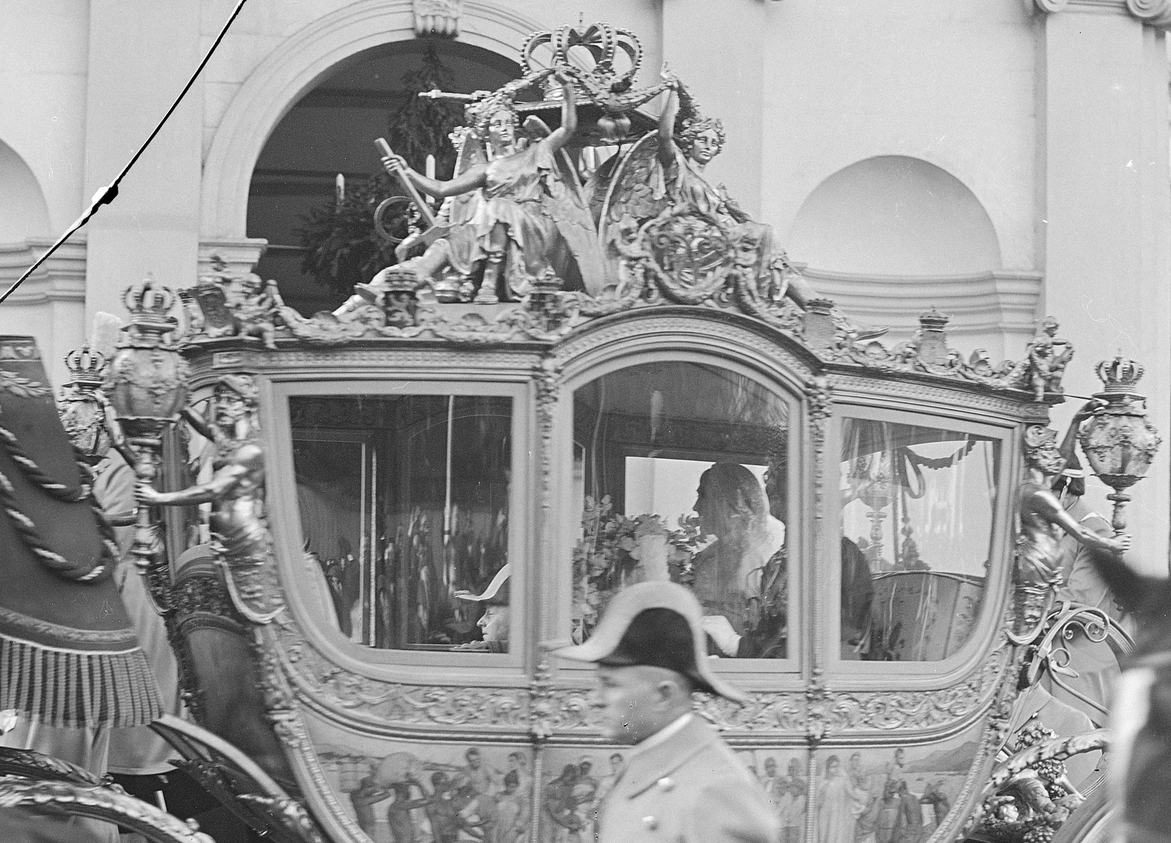 De koets volgde vanuit het idee om namens de stad een cadeau te geven voor de inhuldiging van de nieuwe koningin. Met een huis-aan-huiscampagne werd gevraagd een kwartje te doneren. Hoeveel die actie uiteindelijk heeft opgebracht, is niet bekend. Het rijtuig kostte vermoedelijk 70.000 gulden. Uiteindelijk nam Wilhelmina hem in 1901 pas in gebruik bij haar huwelijk, vermoedelijk omdat haar moeder voor de inhuldiging al een andere koets had besteld. Sindsdien deed hij dienst bij een inhuldiging, huwelijken en doopfeesten van de Oranjes en sinds 1903 op Prinsjesdag.