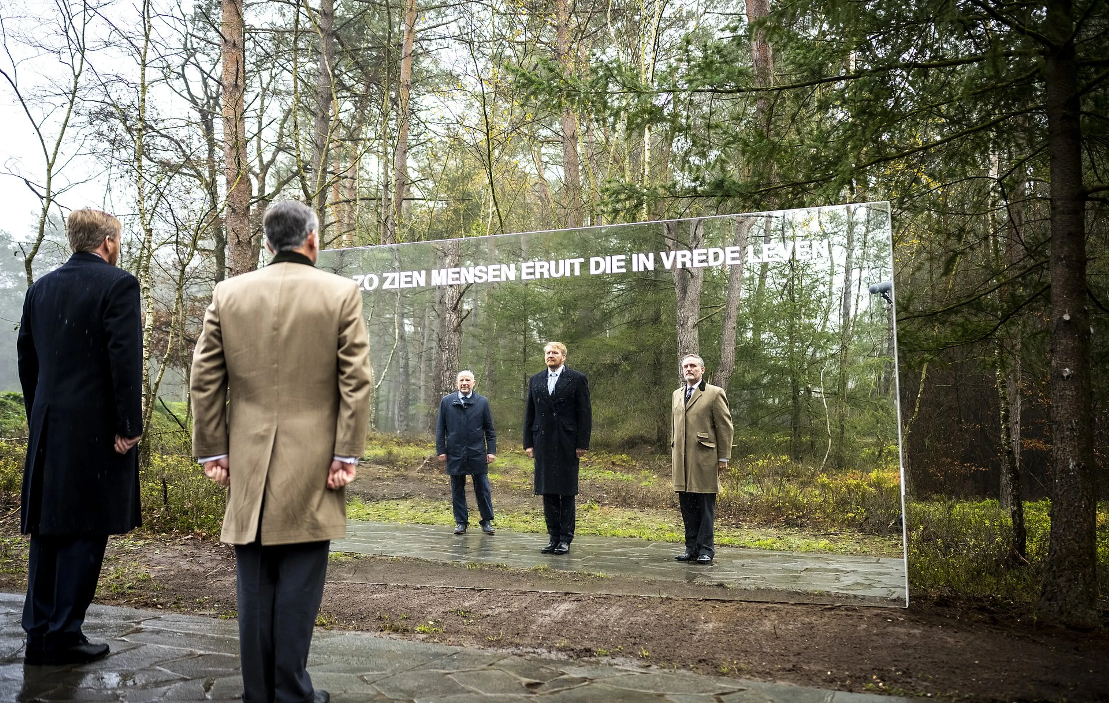 De koning opende de begraafplaats door voor een door kunstenares Renee van Bavel ontworpen gigantische spiegel te gaan staan. Op de spiegel is de tekst 'Zo zien mensen eruit die in vrede leven' aangebracht. Daarna maakte Willem-Alexander een wandeling over het terrein, waar in eerste instantie plek is voor 900 graven. Die zullen gemarkeerd worden met staande zerken, om ook een contrast aan te brengen met het Ereveld waar de grafstenen liggen.