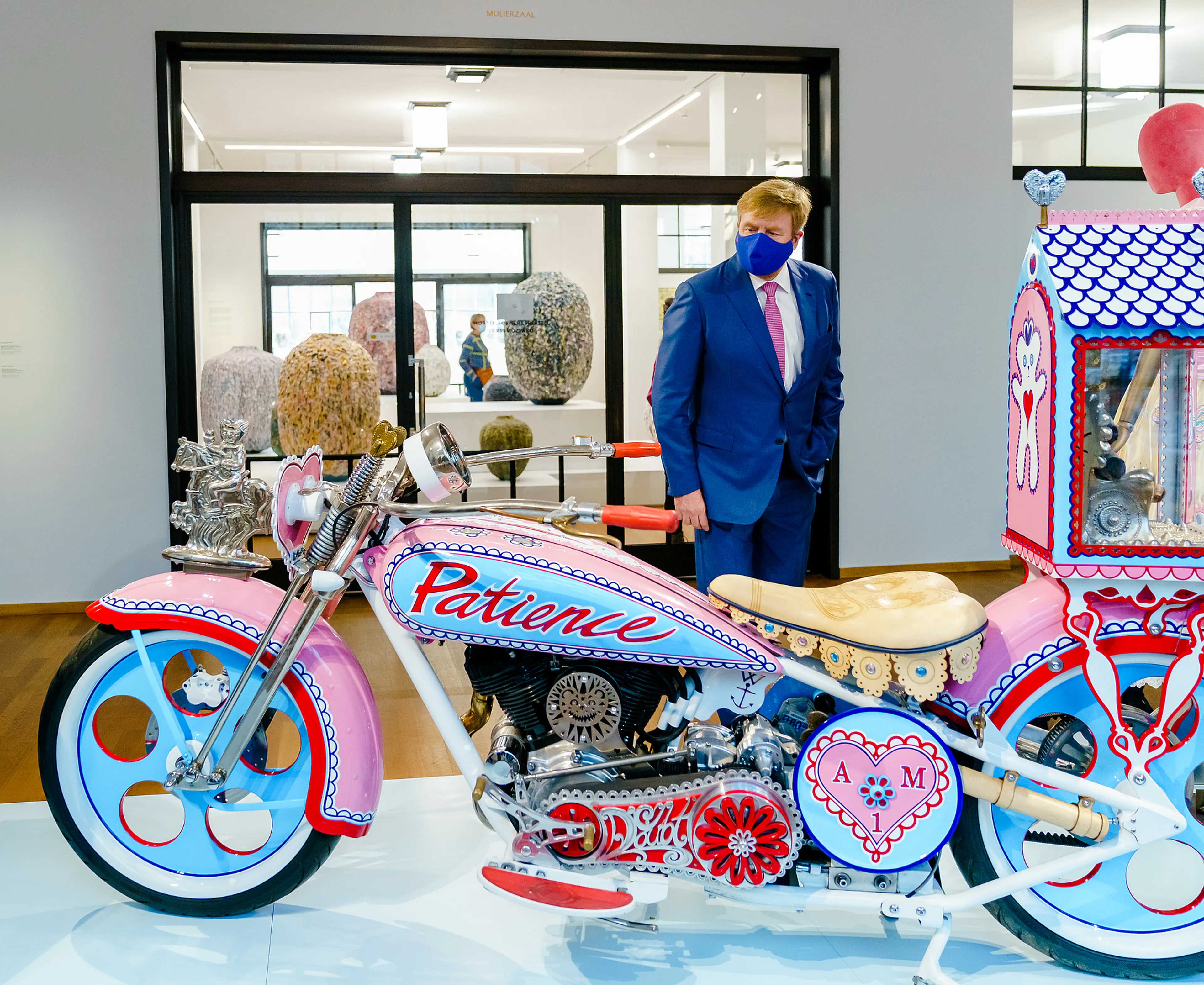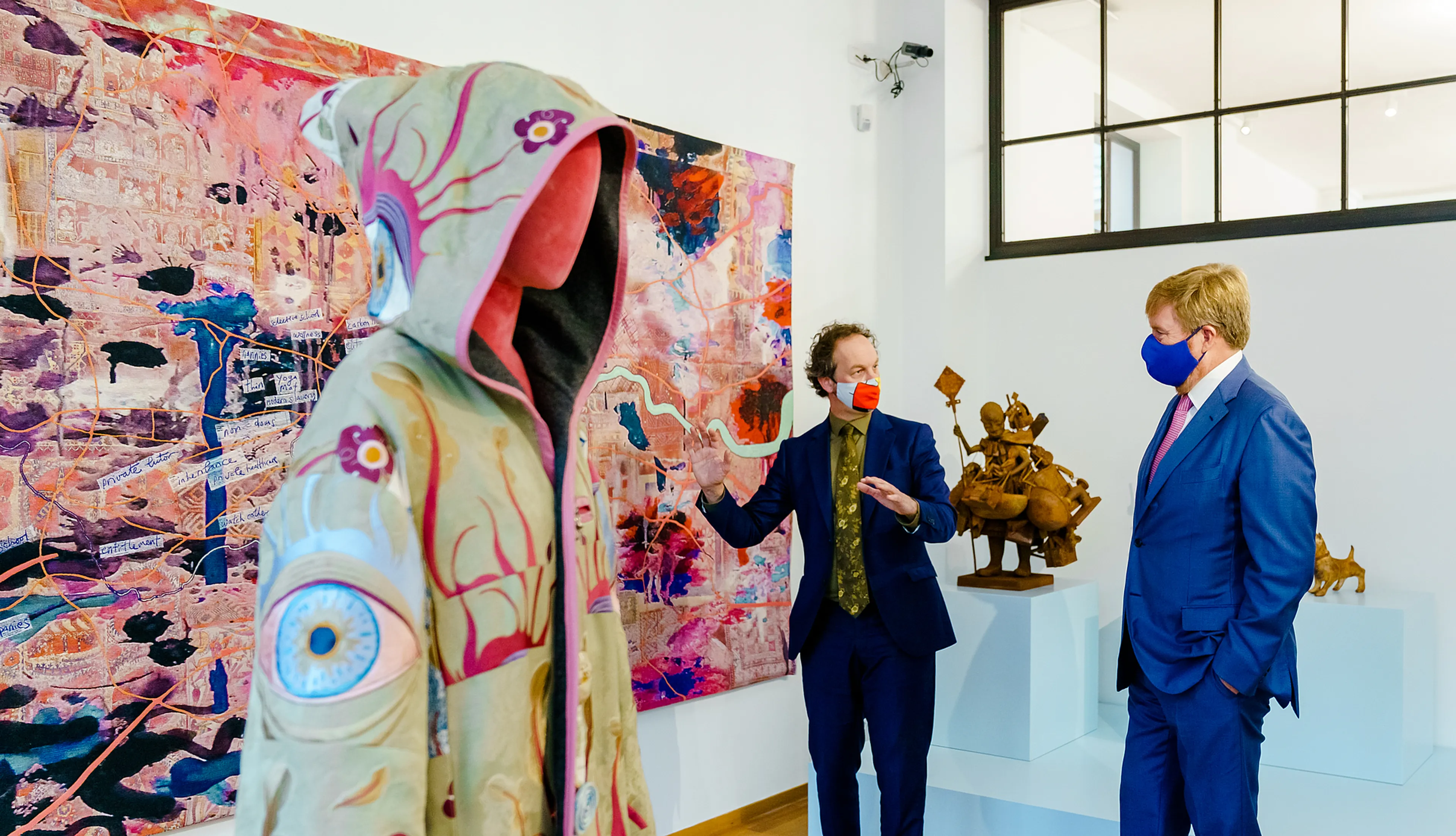 Perry (61), die net is hersteld van een coronabesmetting, had de Erasmusprijs eigenlijk vorig jaar al gewonnen, maar toen kon het festijn vanwege de coronapandemie niet doorgaan. De uitreiking, waarbij normaal gesproken ook koningin Máxima en prinses Beatrix aanwezig zijn, was nu aangepast, tot vreugde van de koning. Het zou jammer zijn geweest om twee jaar over te slaan, zo zei hij tegen Kunstmuseum-directeur Benno Tempel bij de bezichtiging van het spraakmakende werk van Perry.