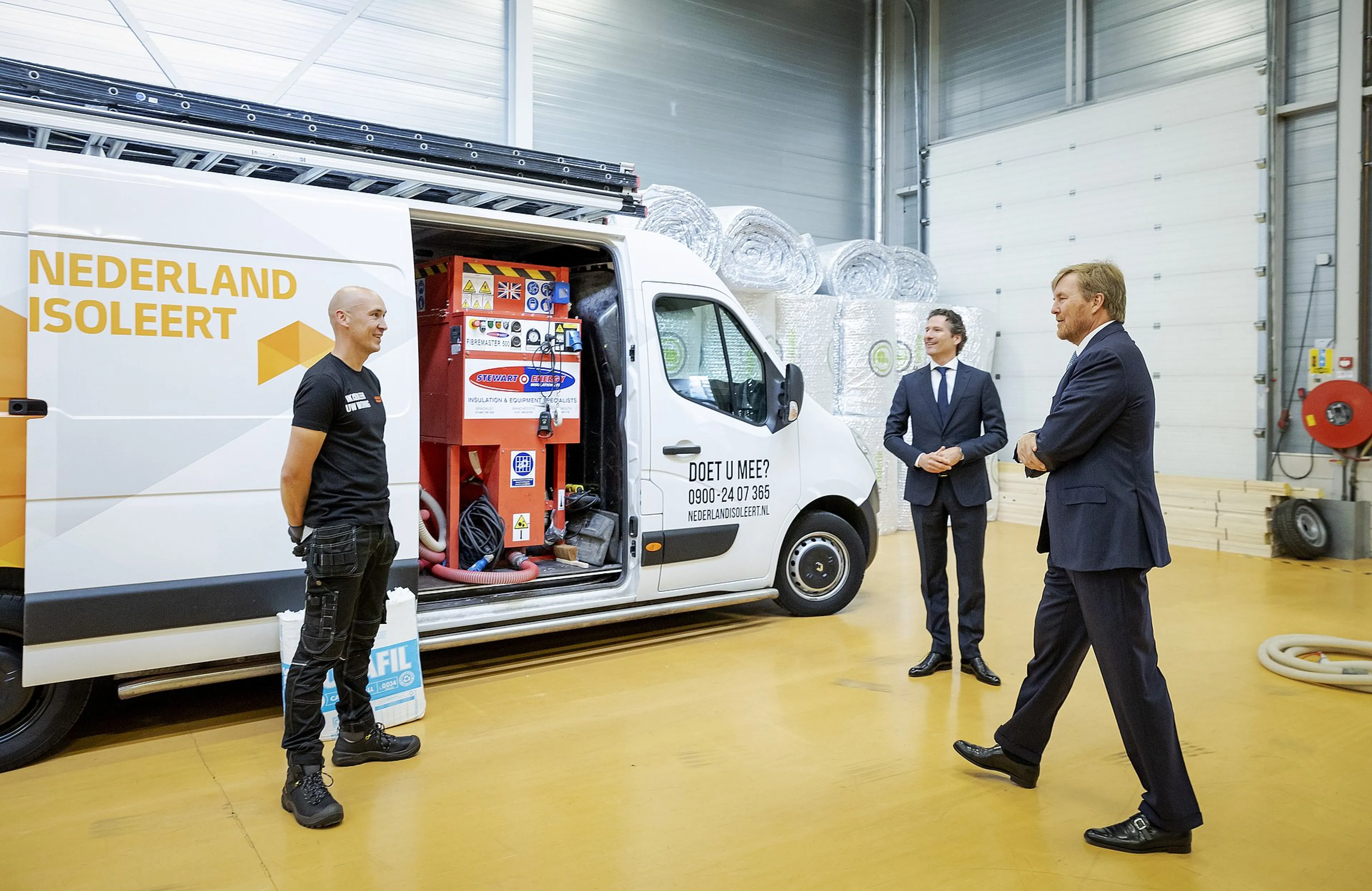 Koning Willem-Alexander heeft dinsdagmiddag een werkbezoek gebracht aan Nederland Isoleert in Amersfoort. Hier heeft hij zich te laten informeren over de effecten van de coronacrisis op de energietransitie en verduurzaming van met name woningen.